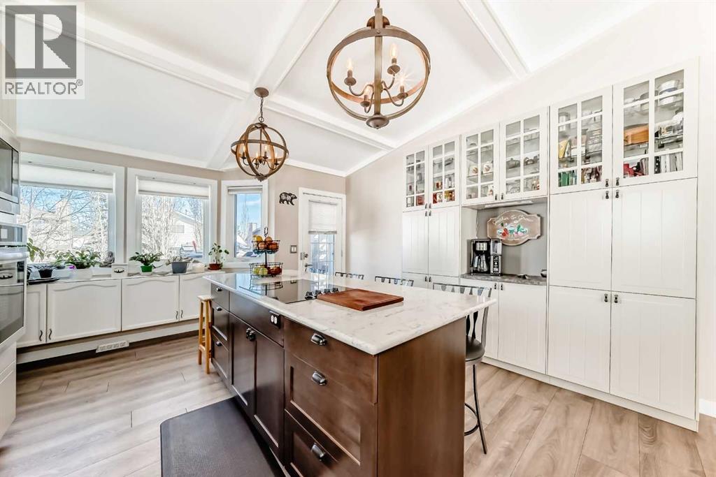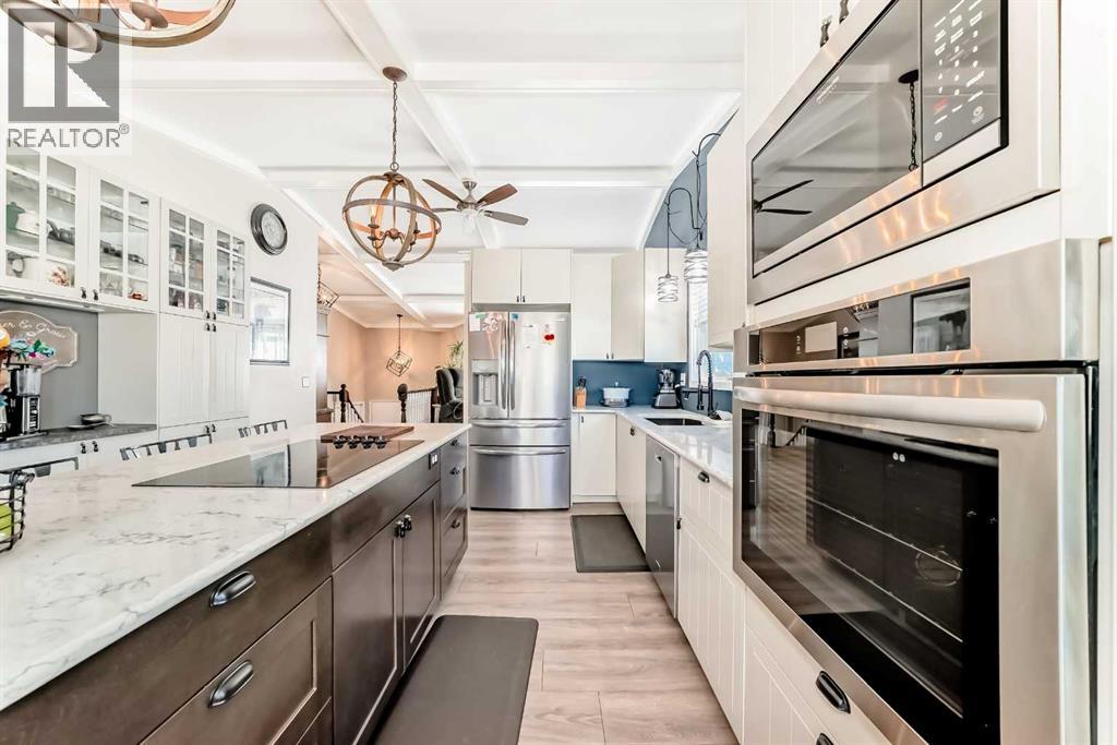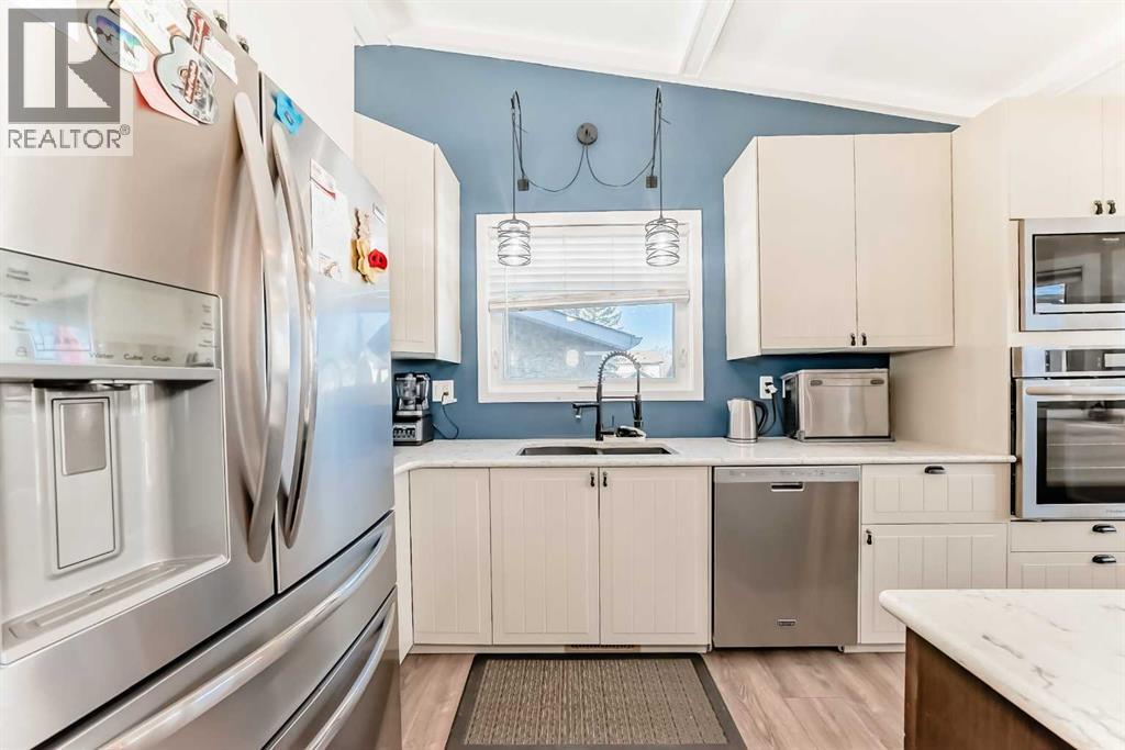 Welcome to this updated home offering a perfect blend of modern upgrades & timeless charm! Step inside to wonderful vaulted ceilings, living/dining room which is complemented by a cozy wood-burning fireplace with gas log lighter (cleaned in 2024). The main floor boasts luxury vinyl plank flooring, leading to a completely renovated kitchen featuring two-tone cabinets, quartz countertops, a massive 82” island, built-in coffee bar/pantry, upgraded appliances, & an under-mount sink with upgraded faucet. The spacious master bedroom includes a huge walk-in closet & 3 piece ensuite, while the good sized second bedroom, currently used as an office, offers versatility for your needs. The fully finished basement adds even more space with a large family room, 2 additional bedrooms with big windows & a 3rd full bathroom. Major upgrades include Poly B plumbing removal, a new furnace & 50 gallon hot water tank (2020), finished laundry & a garage door, opener/remotes (2024). The garage has upgraded wiring with extra plugs & lights. Enjoy outdoor living with a huge deck off the kitchen, a pergola, interlocking brick sidewalks, patio, & underground irrigation in the front yard. This move-in ready home is fully fenced & landscaped, providing both style & functionality. Don’t miss your chance to make this home your own. (id:51989)