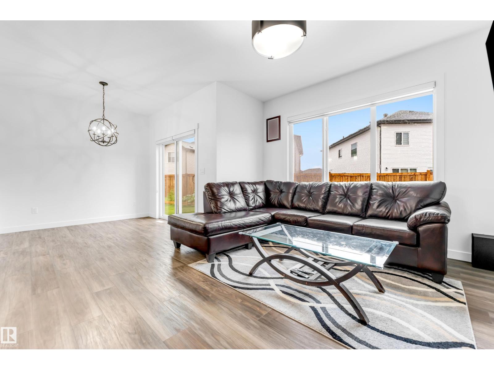 **ASTER COMMUNITY**SOUTH EDMONTON**SPICE KITCHEN**SIDE ENTRY**The main level offers an inviting open layout where the living, dining, and kitchen areas connect seamlessly, perfect for gatherings or quiet evenings at home. A well-placed bedroom and bath on this floor provide flexibility for guests or family members. Natural light flows throughout, highlighting the warm finishes and spacious feel. Upstairs, you’ll find the primary suite with a private ensuite and walk-in closet, offering a true retreat at the end of the day. Additional bedrooms and a family room create plenty of space for relaxation or entertaining. A conveniently located laundry room adds to the practicality of the design. With a balance of open areas and private rooms, this home suits a variety of lifestyles. The thoughtful floor plan maximizes every space, while the mudroom and closets provide excellent storage solutions. Located in a family-friendly community close to schools, parks, shopping, and essential amenities. (id:51989)
