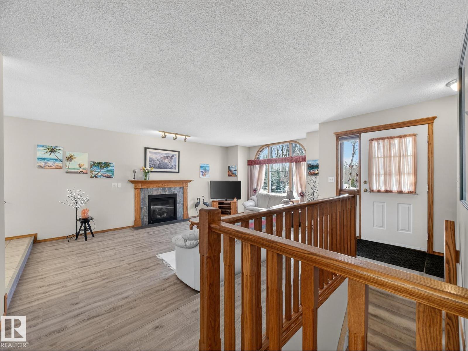 Welcome to a slice of PARADISE! Located on a massive 4.23 ACRES fully fenced lot, this pristine bungalow boasts over 2450 sq ft of finished living space. As you enter the front door, you're instantly reminded of the serene setting by many windows showcasing the beautiful outdoors and abundance of natural light. The open concept main floor, cozy gas fireplace, updated vinyl plank flooring and immaculate condition exemplify pride of ownership everywhere you look! 3 well appointed bedrooms, 2 full bathrooms and a double car attached garage round out the main floor. The fully developed downstairs continues to impress with 2nd gas fireplace, massive recreation room, 4th bedroom, 3rd bathroom, laundry and storage room. Outside your dreams come true with several buildings and animal shelters, fenced in pastures, and acres of untouched forest. With city amenties like city water and natural gas - this property is the perfect blend of city comforts with country dreams! (id:51989)
