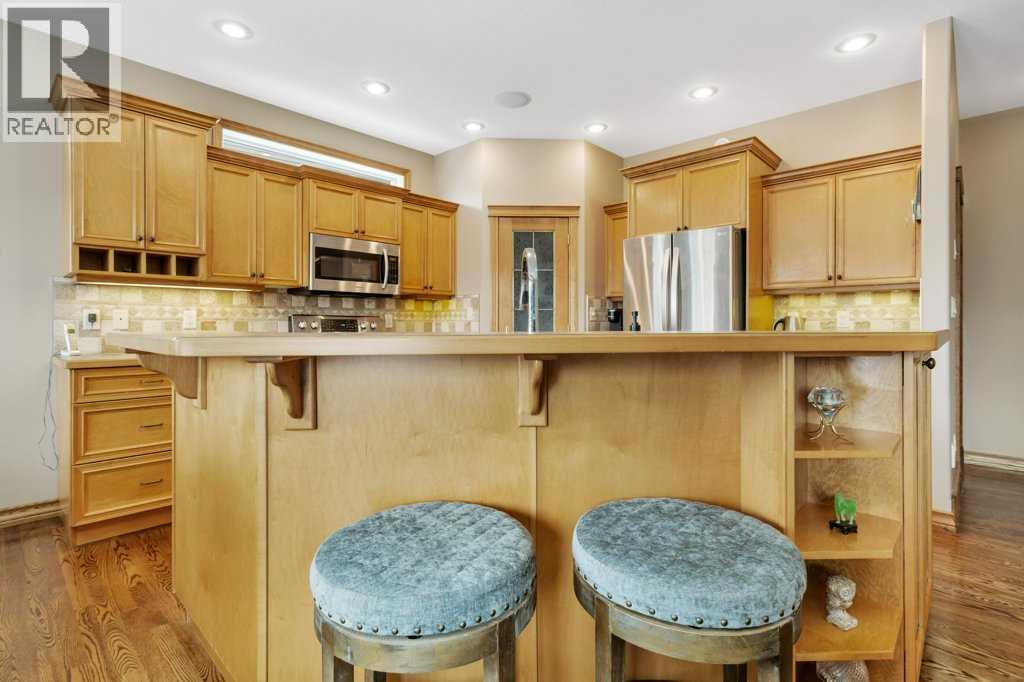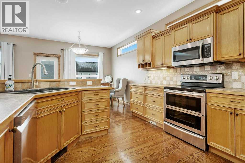 ORIGINAL OWNER!! 134 Lougheed Close offers a combination of many hard to find features, including 1600 square feet on the main level, a fully finished basement, a large pie shaped lot with RV parking and the privacy of a green space at the front!! Situated in a small key-hole within Lougheed Close, the location is a gem - quiet and peaceful yet within minutes to schools and shopping. Built with quality by Ted Olson construction, the open concept main level will welcome it's new owners with large rear windows allowing natural light to flood the room, site-finished hardwood flooring, and a trayed ceiling and gas fireplace in the living room. There is a large dining space is ideal for family gatherings, and a perfectly connected kitchen with large island and eating bar, maple cabinets, corner pantry and stainless appliances. This well designed home is a great fit for both couples and families, with a front office/bedroom, full bath, another main floor bedroom and the large main bedroom suite at the rear of the home with it's own 4pce ensuite and walk-in closet! The front attached garage is heated and laundry is on the main floor! The basement is fully finished and offers incredible flexibility with a huge rec room, full bath, in floor heat, 2 large bedrooms and a separate media/craft room that could easily be converted to a 6th bedroom if needed! A large rear deck with a duradeck surface is a great space to enjoy the pie shaped backyard, there is a parking pad for your RV, central A/C for those hot summer nights, shingles were replaced in 2018 and the neighbourhood is fantastic! (id:51989)