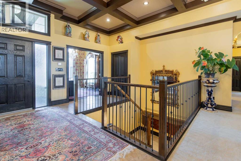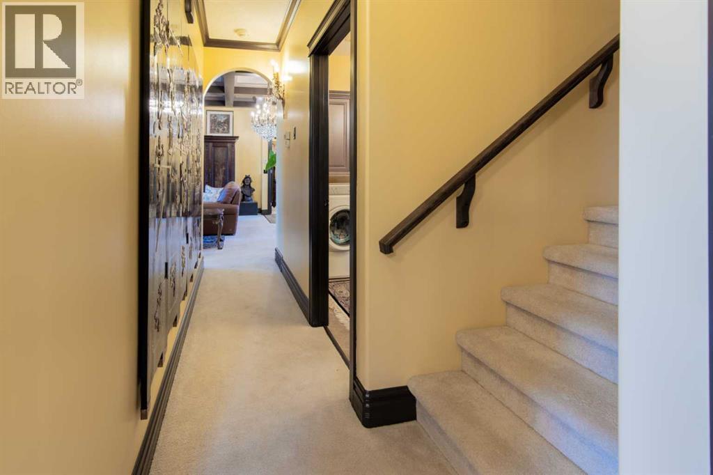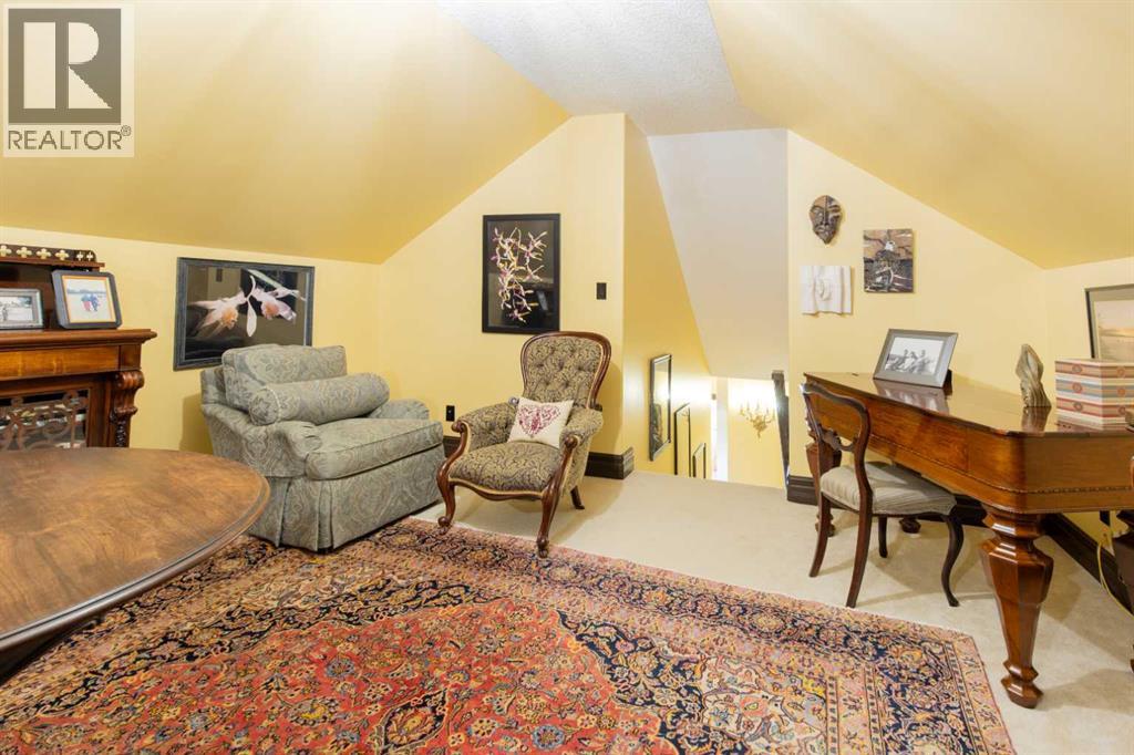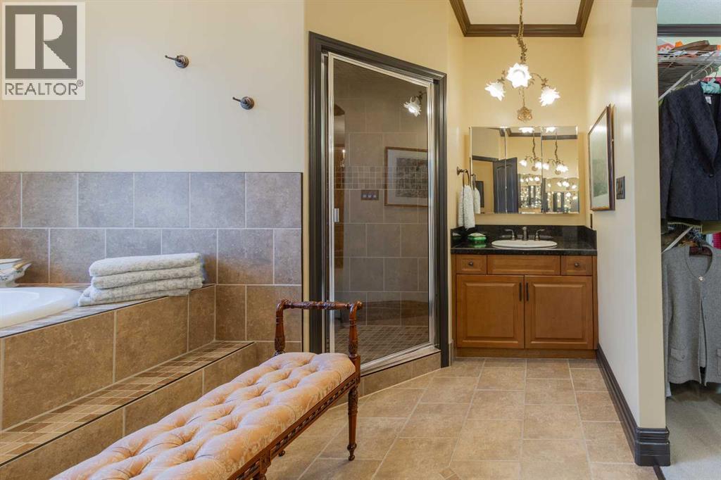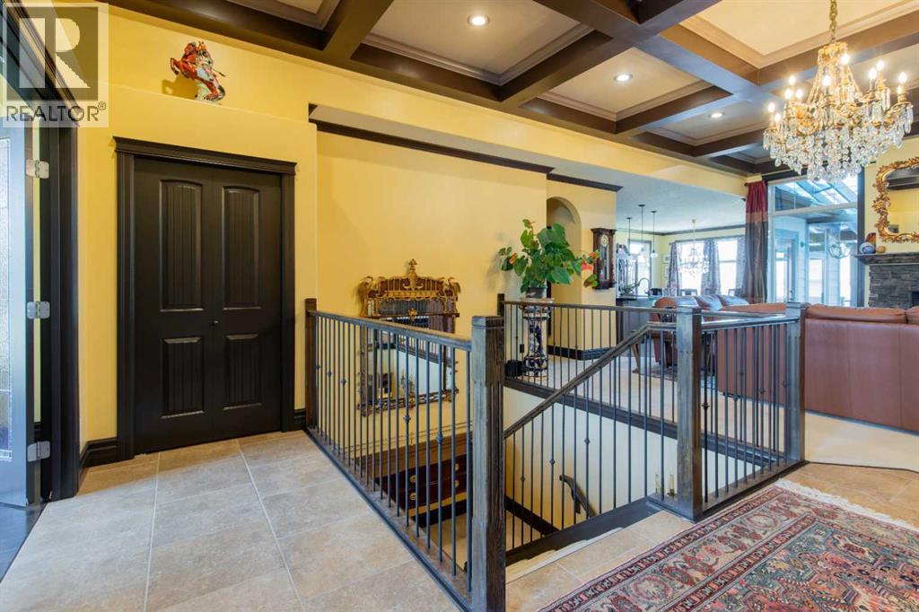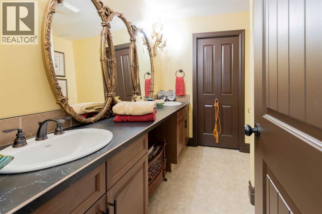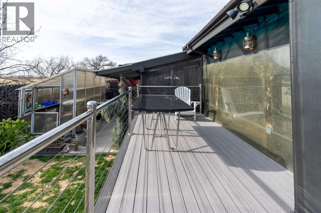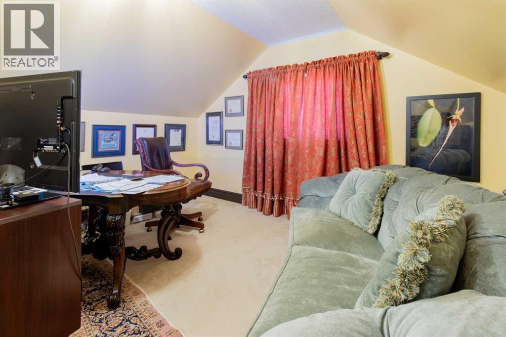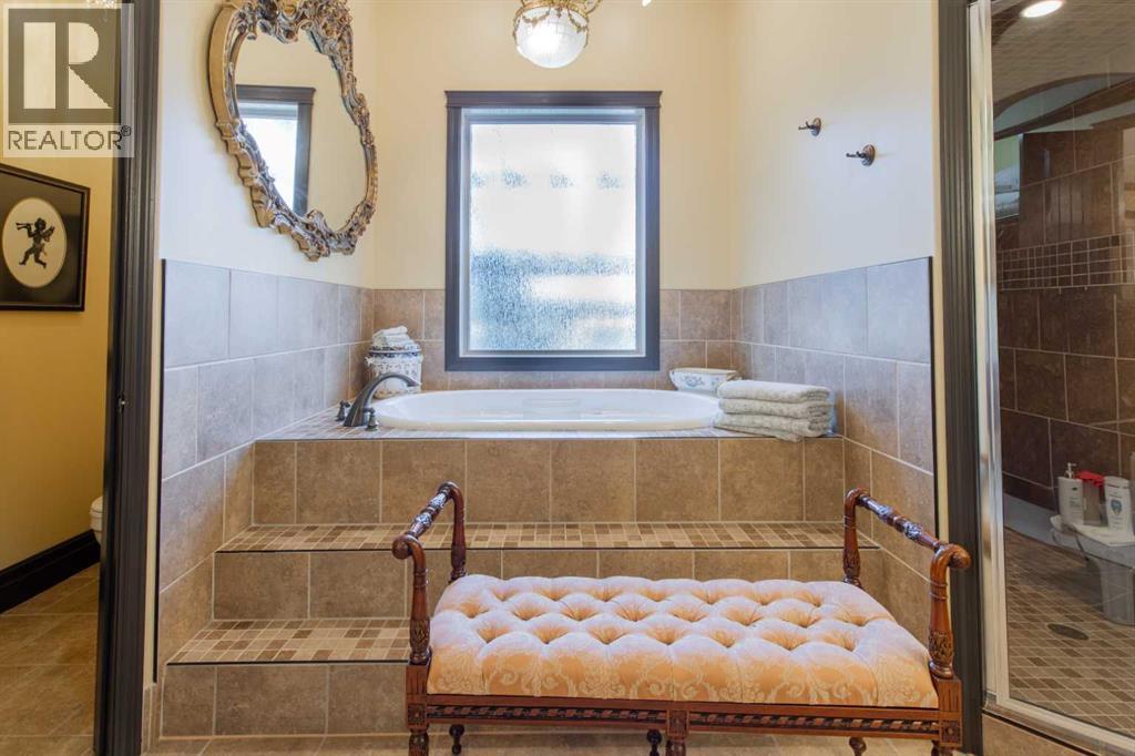 Impressive Fort Macleod home located within Garrison Estates overlooking the historic barracks with crisp mountain views and no neighbors behind! Step into the warm and welcoming front foyer where a hall leads to a luxurious living room with a central fireplace. Nearby, the kitchen offers plenty of cupboard storage, granite countertops, a corner pantry, and large central island with a breakfast bar. The main-floor primary bedroom provides a restful retreat, with a walk-in closet leading into a five-piece ensuite bath with a tub and steam shower. Down the hall, a laundry room with garage access, a bonus room, a four-piece bathroom, and two bedrooms complete the main floor layout. Above the garage, a 294 sq.ft. office offers the perfect spot to work from home, set up a play space, or create the hobby room of your dreams. On the lower level, the rec room features a corner fireplace and wet bar complete with a mini fridge and dishwasher. French doors lead into a fully wired media room with recessed lighting for movie nights with the whole family! A gym to one side and three more bedrooms down the hall with a five-piece bath located centrally make a convenient layout for holiday hosting. Outside, you'll be charmed by this home's landscaping, which includes stone pathways, concreate fence bases, underground sprinklers, trees, shrubs, and two greenhouses sure to be a hit with the green thumb in your family. With a covered deck complete with gorgeous prairie and access to the dining room, RV parking beside the property, and a double attached garage to store tools and vehicles safely, this home is sure to impress anyone with an eye for quality. If a beautiful home perfect for large families and entertainers sounds like the spot for you, give your REALTOR® a call and book a showing today! (id:51989)