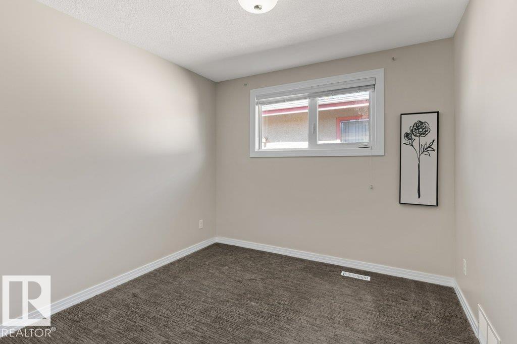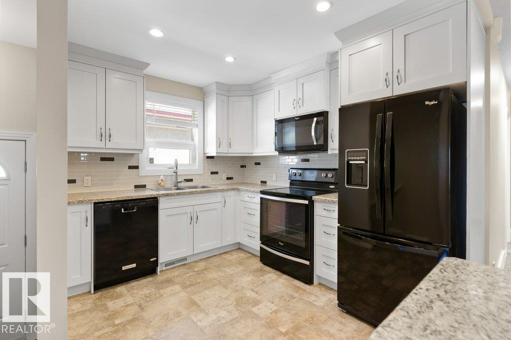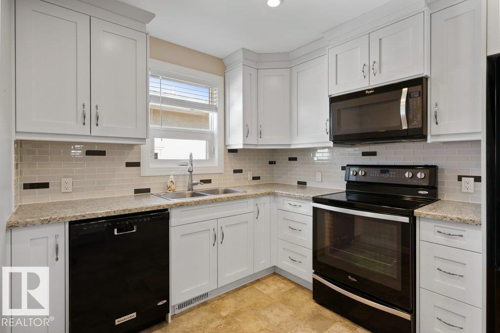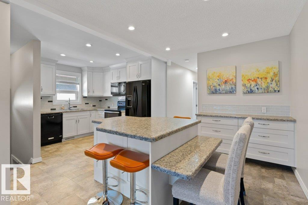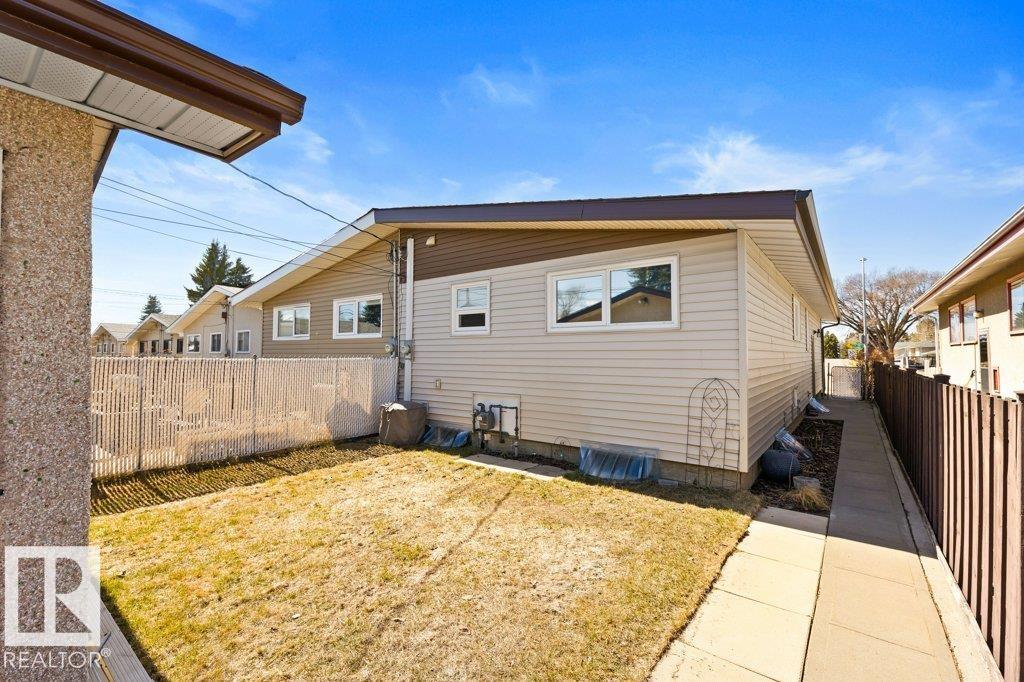 Welcome to this beautifully renovated bungalow duplex in Edmonton’s desirable Kensington neighborhood. Offering 1,050 sq ft of stylish living space, this home features two spacious bedrooms on the main floor and an additional bedroom downstairs. Extensive upgrades throughout include newer flooring and carpeting, creating a fresh, modern feel. The fully updated kitchen boasts to-ceiling white cabinetry, a large island with breakfast bar, and plenty of prep and storage space. The main floor includes two full bathrooms, highlighted by a four-piece ensuite with an accessibility tub. The finished basement offers a generous recreation area with durable vinyl flooring, a comfortable bedroom with a private three-piece ensuite, and ample storage options. Outside, enjoy the convenience of a single detached garage with back lane access. Perfectly situated across from a school and park, and within walking distance to shopping, transit, and everyday amenities, this home combines comfort, style, and location. (id:51989)