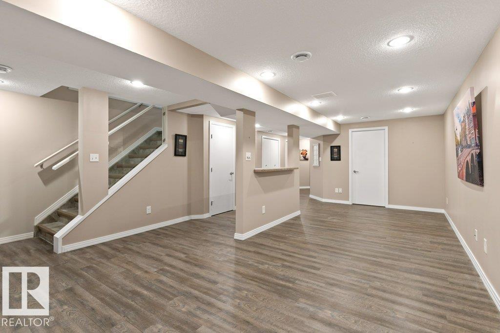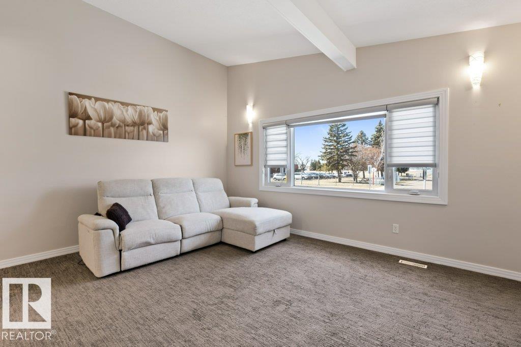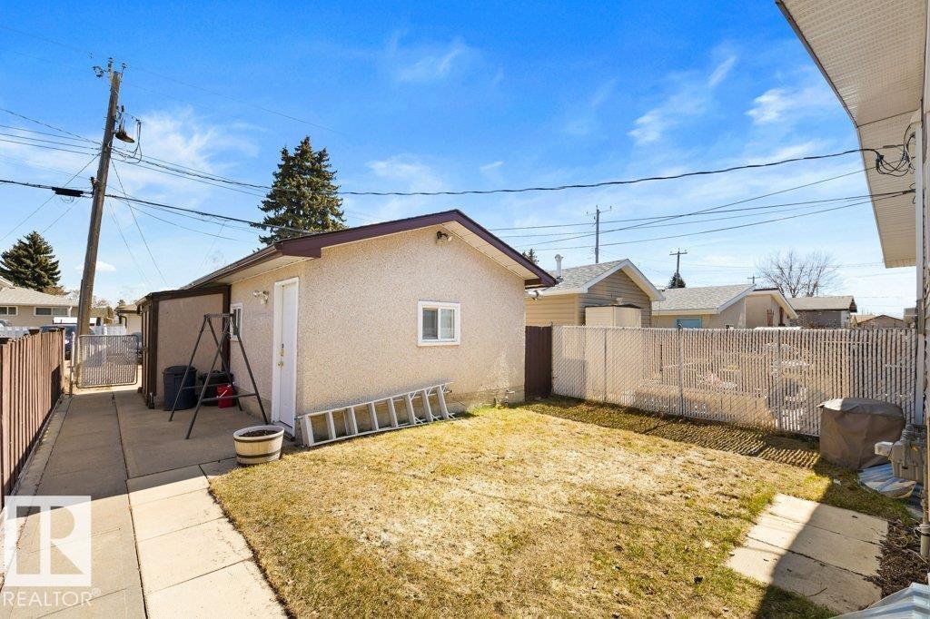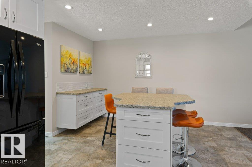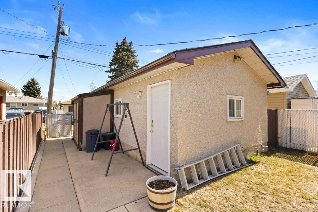Welcome to this beautifully renovated bungalow duplex in Edmonton’s desirable Kensington neighborhood. Offering 1,050 sq ft of stylish living space, this home features two spacious bedrooms on the main floor and an additional bedroom downstairs. Extensive upgrades throughout include newer flooring and carpeting, creating a fresh, modern feel. The fully updated kitchen boasts to-ceiling white cabinetry, a large island with breakfast bar, and plenty of prep and storage space. The main floor includes two full bathrooms, highlighted by a four-piece ensuite with an accessibility tub. The finished basement offers a generous recreation area with durable vinyl flooring, a comfortable bedroom with a private three-piece ensuite, and ample storage options. Outside, enjoy the convenience of a single detached garage with back lane access. Perfectly situated across from a school and park, and within walking distance to shopping, transit, and everyday amenities, this home combines comfort, style, and location. (id:51989)
