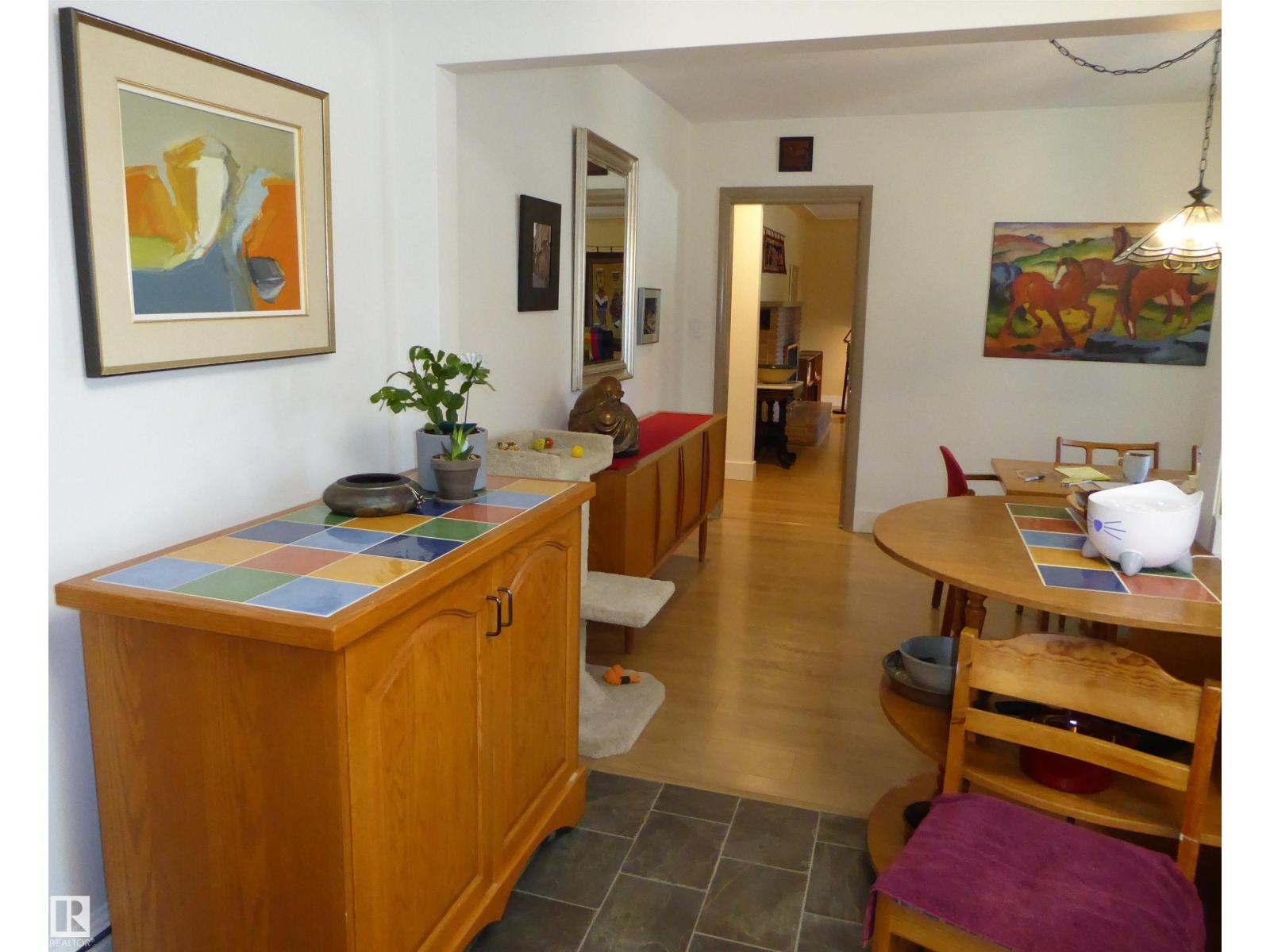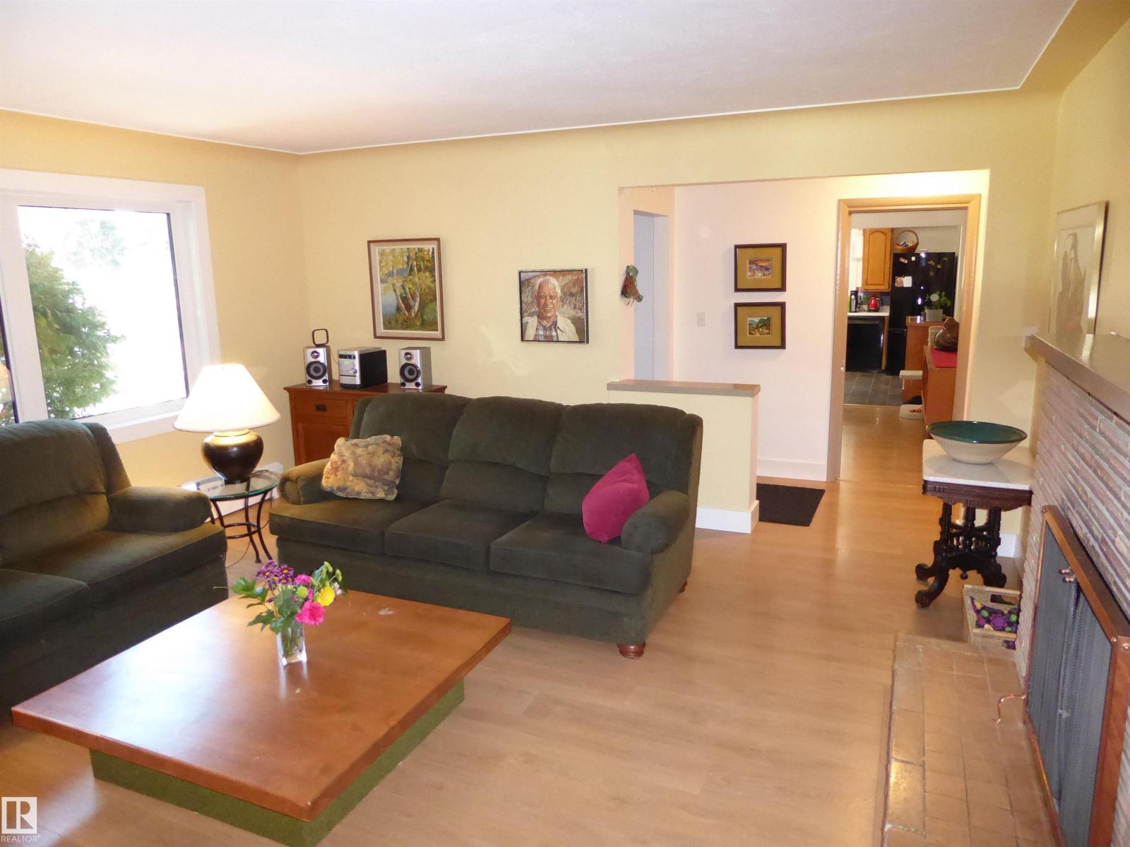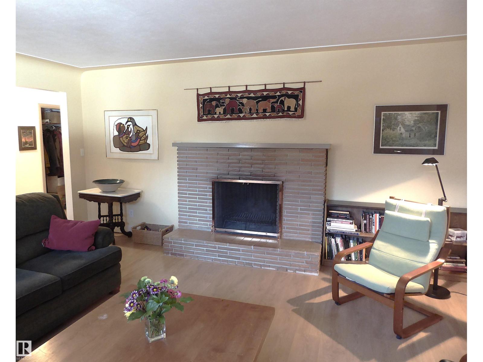 Custom-built bungalow, designed with distinction in the beautiful North Glenora community. The seller is the second owner. Large windows throughout the home fill the space with natural light, creating a bright and inviting atmosphere. Relax in the spacious living room with a wood-burning fireplace. Enjoy meals in the charming dining room by a lovely, bright window. The sunny, upgraded kitchen has oak cabinetry. Move in and appreciate the main floor laundry, two large bedrooms, and one bath. Downstairs, the lower level features a spacious family room with a fireplace, an additional bedroom, utility rooms, and a two-piece bath. Over the years, renovations have included metal roof shingles with a lifetime guarantee, triple-pane main floor windows, Euro-style German laminate flooring, and a 100 Amp electrical system. Step into the landscaped, fenced backyard—perfect for gardening and relaxation. This property has two single detached garages. Walking distance to all amenities. (id:51989)