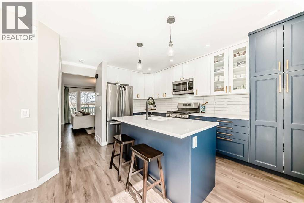 Welcome to this charming family home located on a quiet street that offers 4 bedrooms and 2.5 bathrooms. This home is light and bright with 1,827 square feet of developed living space including the fully finished basement. The main level features newer laminate flooring throughout with a functional flow as you enter the vaulted foyer and sunny living room accented by large windows overlooking the inviting front porch. You’ll love the fully renovated white kitchen, complete with island, quartz counters, full height cabinets, newer stainless steel appliances, and adjacent dining room overlooking the southeast-facing yard.The back door provides access to the extensive full-width deck and the oversized & heated double detached garage with alley access. Upstairs boasts a tasteful primary bedroom with walk-in closet, 2 stylish secondary bedrooms and 1 full bath with private access from the primary. The fully finished basement presents a 4th large bedroom, family room, a renovated 3pc bathroom as well as ample storage space.Peace of mind abounds in this well cared for home that includes a newer roof on the house & garage and does not have poly-b piping. This prime location with no homes across the street offers plenty of guest parking with quick access to Shaganappi Trail, Country Hills Boulevard, and Stoney Trail. Hidden Valley is a mature community featuring extensive green areas and established schools. Excellent value for this attractive home! (id:51989)