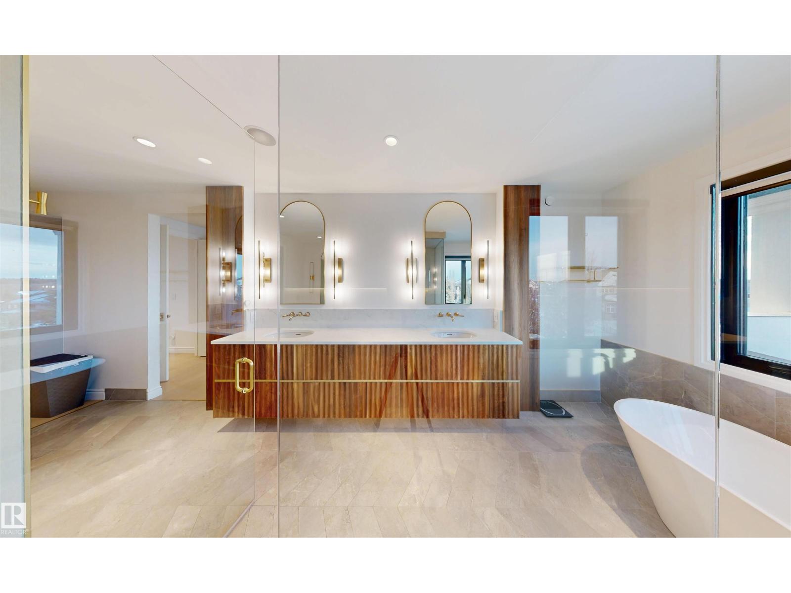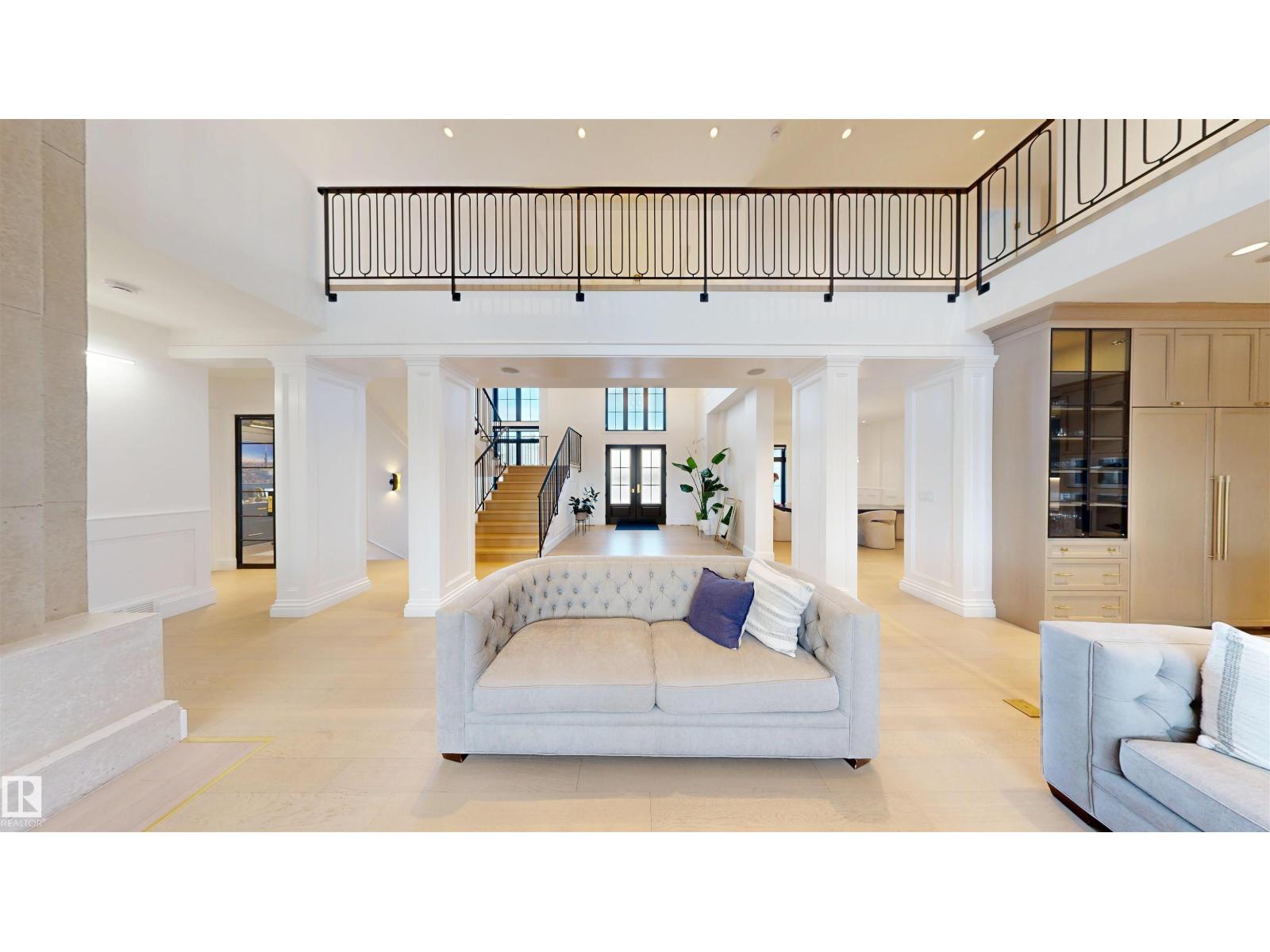 LUXURY MANSION IN RIVERSTONE POINTE, A NEWLY-BUILT 5200+ sq. ft. 2-Storey Walkout! Meticulous Superior Finishes: * Grand Entrance Double-Height Foyer, Statement Chandelier, & Travertine Fireplace * Custom Forge 53 Metal Railing & French Doors * Curated Gallery * 3-Floor Elevator * Chef's & Butlers' Kitchens * Ultra High-end Miele (et al.) Appliances * Italian Island Waterfall Countertop * Soundproof Office + LED Cabinetry * Heated Tiles & Oak-Engineered Floors * Auto Remote Window Blinds * White Marble Vanities * His & Her Walk-in Closets * Huge 2000+ sq. ft. Private Balcony + Rooftop Terrace (Valley & City Views) * Premium Brizo & Riobel Fixtures * Triple-Glazed Floor-Ceiling Windows + Black-Clad Finish * Lower Level: Gym, Studio, Game Area, Theatre, & Cigar / Wine Room * Guest Suite + Nanny Suite * Integrated Audio & Visual Intercom * 2 A/C Units * TELSCO Alarm Security: 360° PTZ & 14 Extra Cameras * 1600+ sq. ft. Heated Garage Space (East & West Wings with 2 EV Chargers) * Large Driveway & 0.75 Acres! (id:51989)