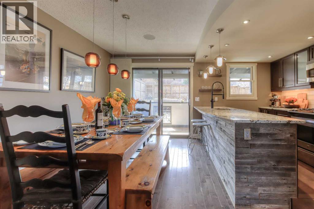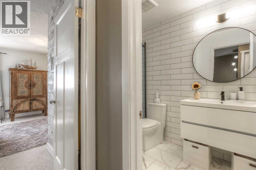 Impressive curb appeal welcomes you to this well-maintained 1,194 sq. ft. two-storey home in the desirable community of Beddington Heights.Featuring a beautifully laid new walkway, front patio, and new front windows, this property makes a strong first impression and doesn’t disappoint on the interior either.Inside, you’ll find a modern, professional kitchen with granite countertops, great storage, and beautiful lighting, all adjacent to a dining area that can comfortably accommodate social gatherings or formal dinners.The spacious living area features a fireplace and large, bright, newly installed picture windows.Rear patio doors lead to a west-facing covered deck, perfect for enjoying sunny afternoons and evenings.The central stairwell guides you upstairs via a carpeted open design with handcrafted contemporary railings and chandelier lighting.Upstairs offers a super large primary bedroom with ample closet space. The second bedroom is also generous in size. The brand-new contemporary full bathroom features full subway tile and a walk-in shower.The basement is partially developed and includes a new media room complete with a fireplace, Dolby Atmos 7.1 surround sound, and custom upholstered seating—perfect for a fully immersive movie night or sports event.The remaining undeveloped space is roughed in for storage or a future office, along with space for an additional half bath. Extra sheets of drywall are included to help complete the space.Located close to parks, schools, and amenities, this home is a solid option in an established, family-friendly neighbourhood. (id:51989)