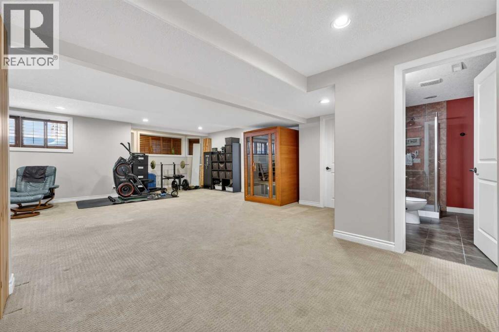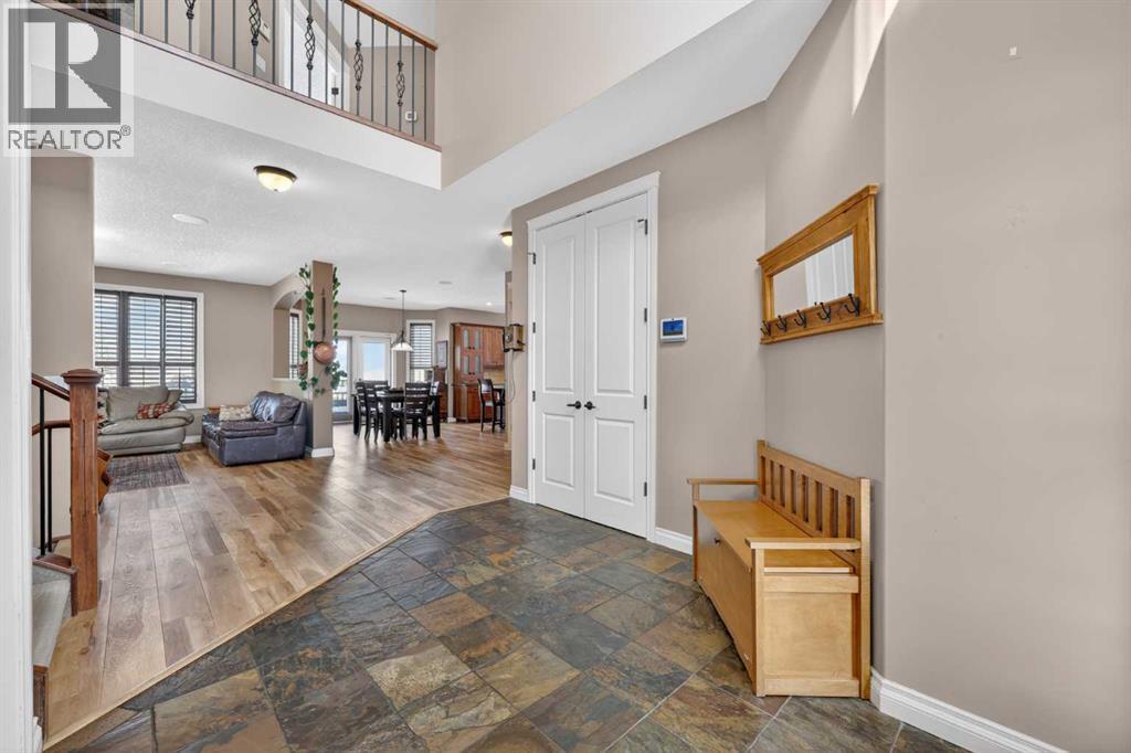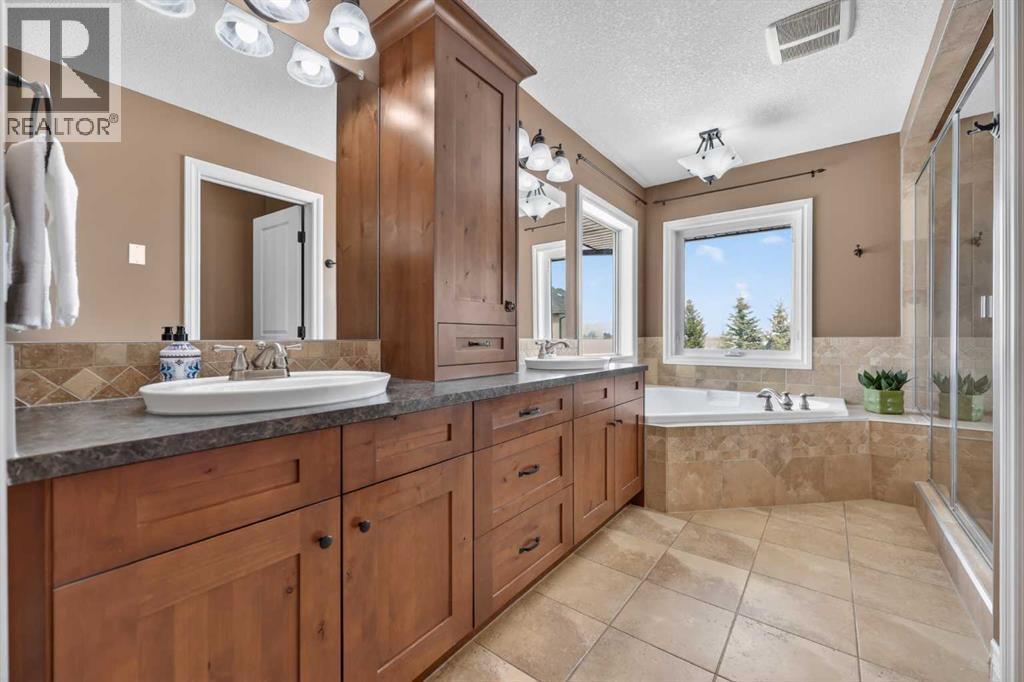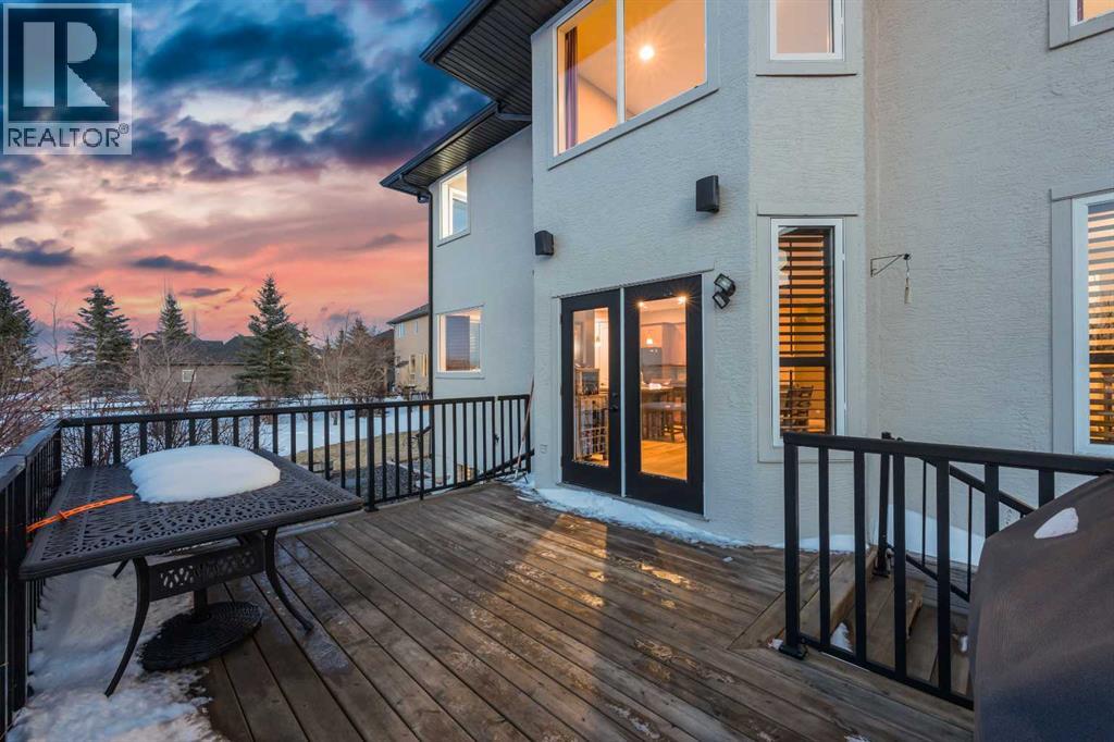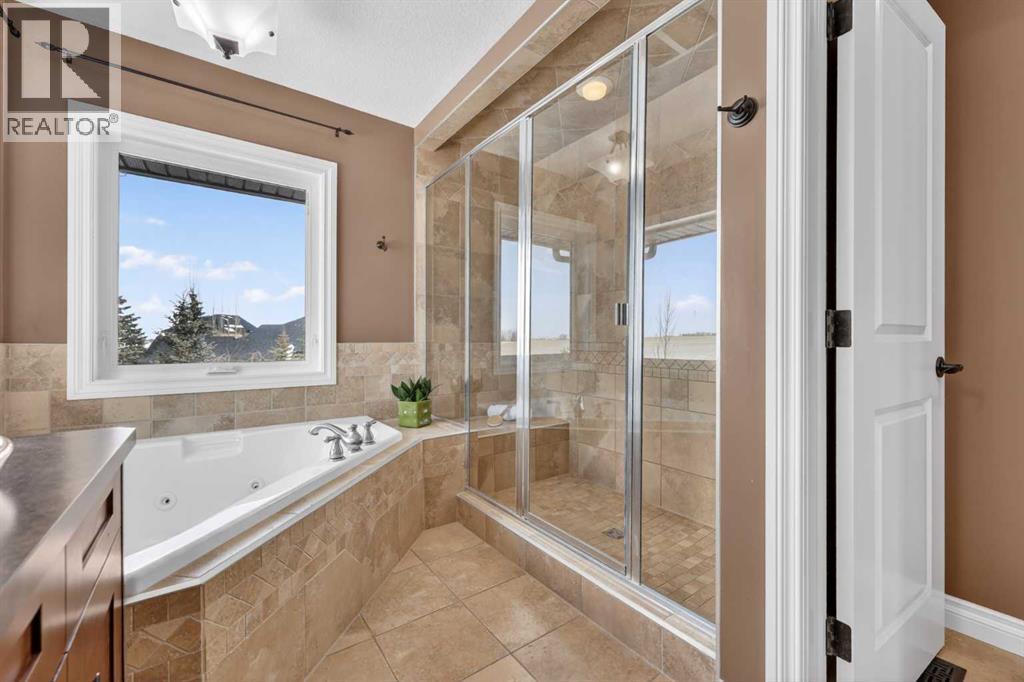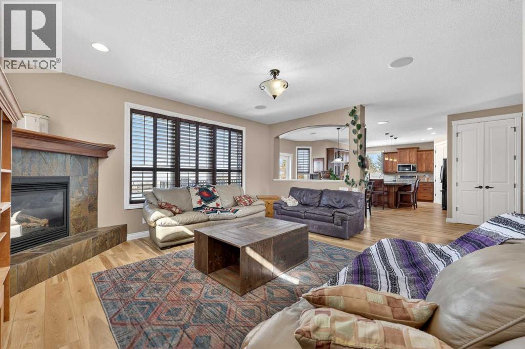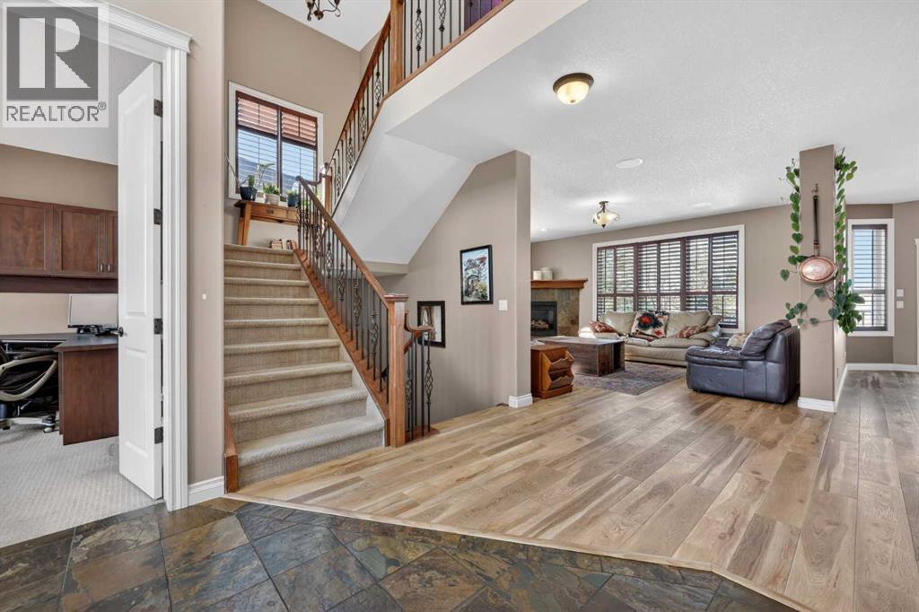 Welcome to 14 Cameron Close, an exceptional custom-built estate home tucked away in a private cul-de-sac in the prestigious Air Ranch community of Okotoks. Backing onto nothing but expansive green space and located near Crystal Ridge Golf Course, this home offers a rare blend of privacy, luxury, and natural beauty. Step inside to a grand foyer that immediately sets the tone for the scale and elegance found throughout. The main floor is thoughtfully designed with expansive living and dining areas anchored by a gas fireplace, ideal for both everyday living and entertaining. Large windows frame the surrounding greenery, filling the home with natural light. At the heart of the home, the gourmet kitchen features a striking poured concrete island, custom alder cabinetry, high-end appliances, and generous workspace. A dedicated main floor study provides the perfect home office or quiet retreat. Completing the main level is a well-appointed 2-piece powder room and a convenient laundry area, thoughtfully positioned for everyday functionality. Upstairs, the home continues to impress with a well-designed layout that balances luxury and functionality. The expansive primary suite serves as a true private retreat, featuring a generous sitting area, large windows overlooking the green space, and a spa-inspired ensuite designed for relaxation. Additional bedrooms are spacious and thoughtfully positioned, offering comfort for family or guests. The upper level also benefits from air conditioning, ensuring a cool and comfortable environment throughout the warmer months. The fully finished basement extends the living space with a large recreation and entertainment area complete with a gas fireplace, dry sauna, fourth and fifth bedroom, and a full bathroom—ideal for guests or family. The heated triple car garage is a standout feature, complete with a workshop, extensive built-in storage, and a rare adjoining gardening room for added versatility. The home also includes two furnaces, a wa ter softener, a full sprinkler system, and a Hide-A-Hose central vacuum system with dedicated hoses on every floor and a kitchen-specific hose for effortless daily maintenance. Step outside to your private backyard oasis, designed for both relaxation and entertaining. Enjoy the new deck, slate pathways, fire pit, mature trees, and a dedicated dog run, all set against a peaceful backdrop of uninterrupted green space. The exterior has been meticulously maintained and updated with durable epoxy paint within the past 2–3 years, enhancing both curb appeal and longevity. Located in one of Okotoks' most sought-after communities, the west side of Air Ranch is synonymous with luxury estate living—offering large lots, mature trees, and a quiet, neighbourly atmosphere. This is a location that feels miles away from the city, yet remains close to all amenities. A rare opportunity to own a truly refined estate home where space, privacy, and timeless design come together seamlessly. (id:51989)