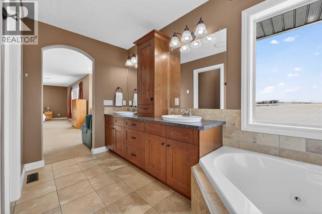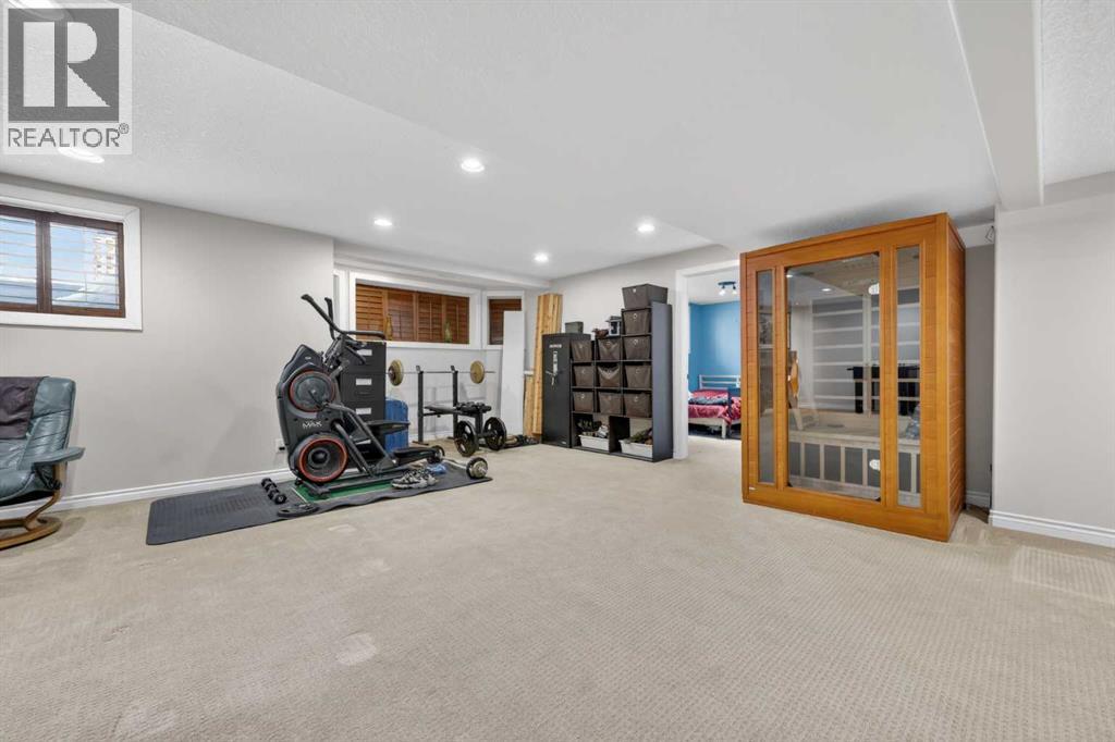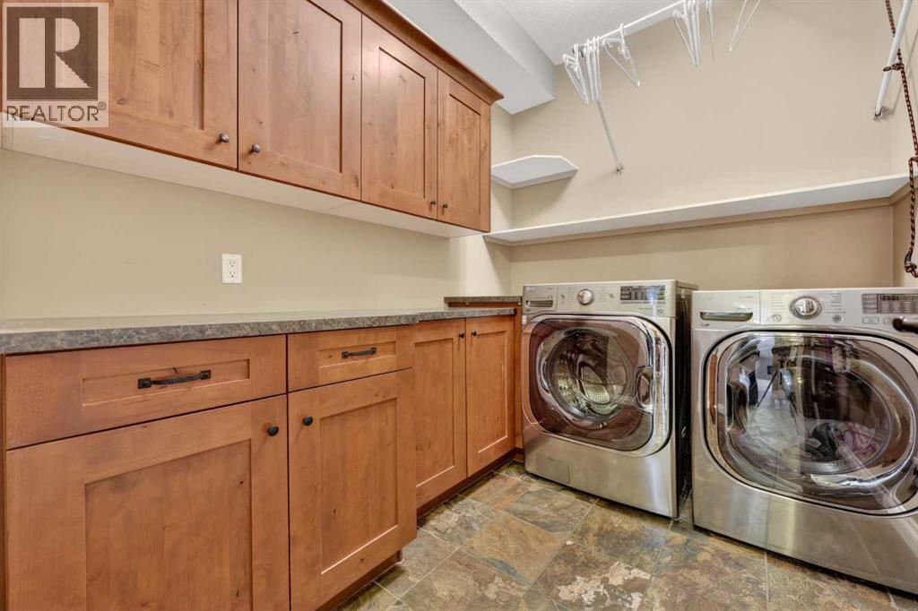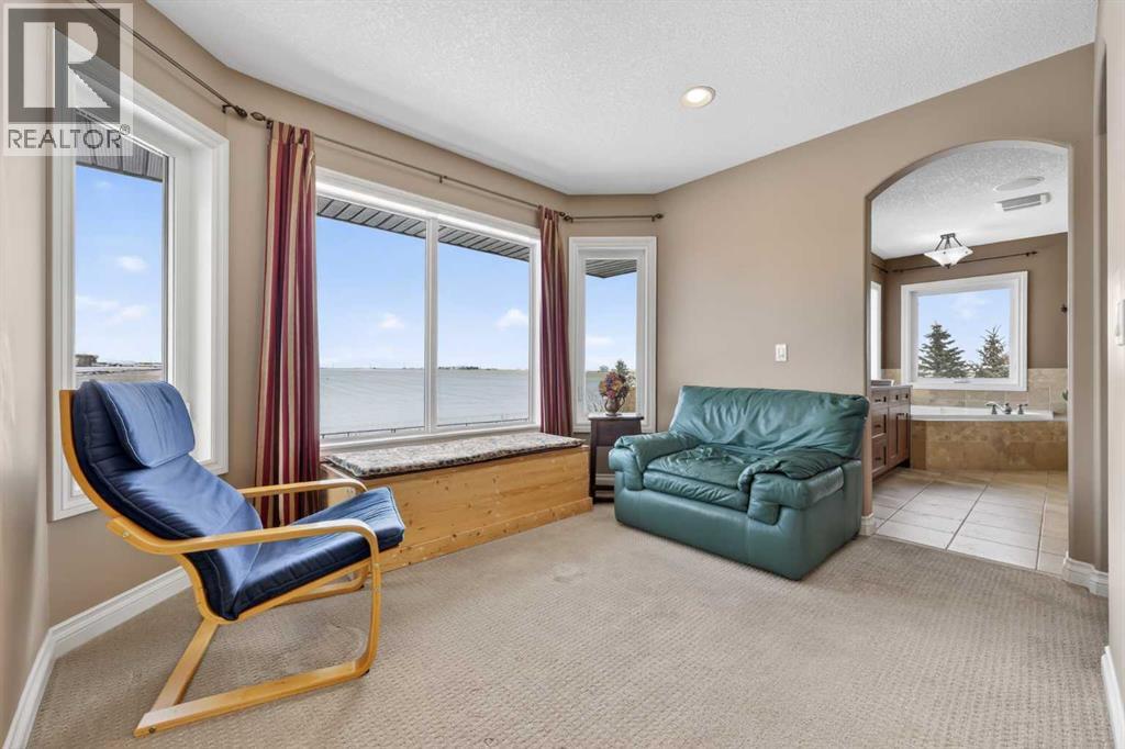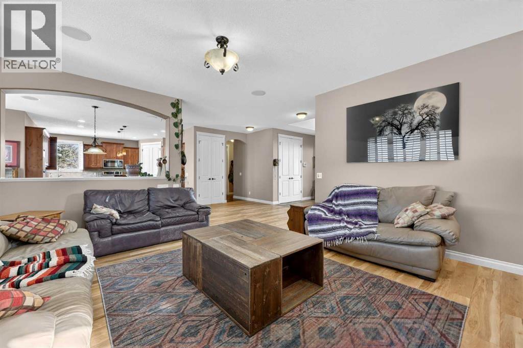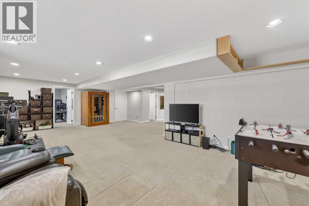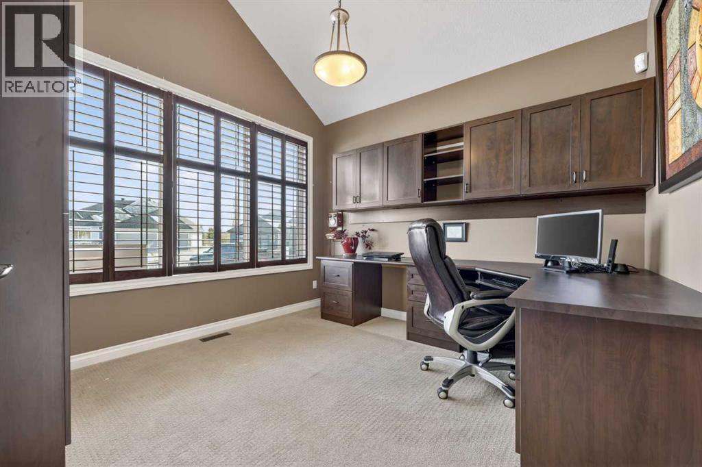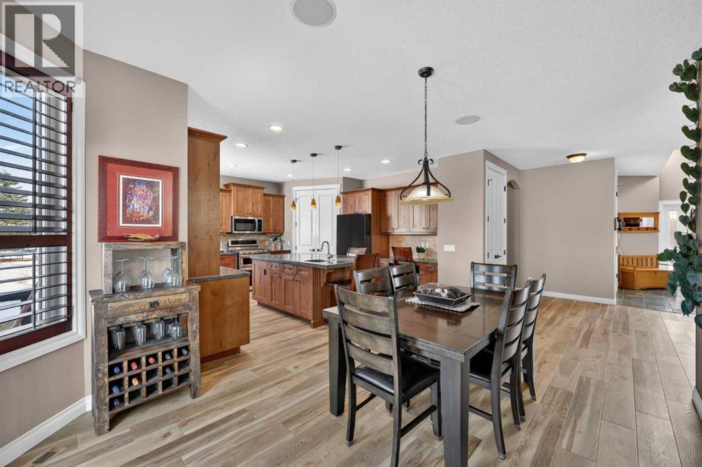 Welcome to 14 Cameron Close, an exceptional custom-built estate home tucked away in a private cul-de-sac in the prestigious Air Ranch community of Okotoks. Backing onto nothing but expansive green space and located near Crystal Ridge Golf Course, this home offers a rare blend of privacy, luxury, and natural beauty. Step inside to a grand foyer that immediately sets the tone for the scale and elegance found throughout. The main floor is thoughtfully designed with expansive living and dining areas anchored by a gas fireplace, ideal for both everyday living and entertaining. Large windows frame the surrounding greenery, filling the home with natural light. At the heart of the home, the gourmet kitchen features a striking poured concrete island, custom alder cabinetry, high-end appliances, and generous workspace. A dedicated main floor study provides the perfect home office or quiet retreat. Completing the main level is a well-appointed 2-piece powder room and a convenient laundry area, thoughtfully positioned for everyday functionality. Upstairs, the home continues to impress with a well-designed layout that balances luxury and functionality. The expansive primary suite serves as a true private retreat, featuring a generous sitting area, large windows overlooking the green space, and a spa-inspired ensuite designed for relaxation. Additional bedrooms are spacious and thoughtfully positioned, offering comfort for family or guests. The upper level also benefits from air conditioning, ensuring a cool and comfortable environment throughout the warmer months. The fully finished basement extends the living space with a large recreation and entertainment area complete with a gas fireplace, dry sauna, fourth and fifth bedroom, and a full bathroom—ideal for guests or family. The heated triple car garage is a standout feature, complete with a workshop, extensive built-in storage, and a rare adjoining gardening room for added versatility. The home also includes two furnaces, a wa ter softener, a full sprinkler system, and a Hide-A-Hose central vacuum system with dedicated hoses on every floor and a kitchen-specific hose for effortless daily maintenance. Step outside to your private backyard oasis, designed for both relaxation and entertaining. Enjoy the new deck, slate pathways, fire pit, mature trees, and a dedicated dog run, all set against a peaceful backdrop of uninterrupted green space. The exterior has been meticulously maintained and updated with durable epoxy paint within the past 2–3 years, enhancing both curb appeal and longevity. Located in one of Okotoks' most sought-after communities, the west side of Air Ranch is synonymous with luxury estate living—offering large lots, mature trees, and a quiet, neighbourly atmosphere. This is a location that feels miles away from the city, yet remains close to all amenities. A rare opportunity to own a truly refined estate home where space, privacy, and timeless design come together seamlessly. (id:51989)