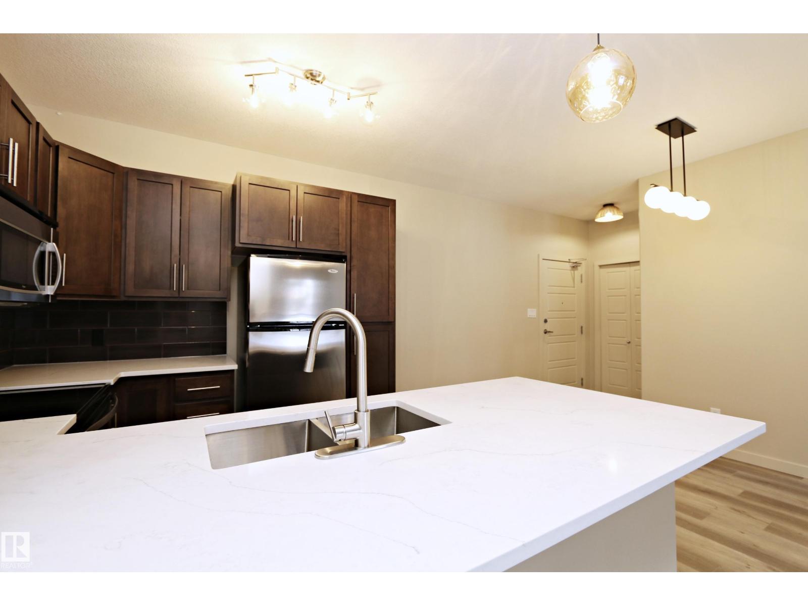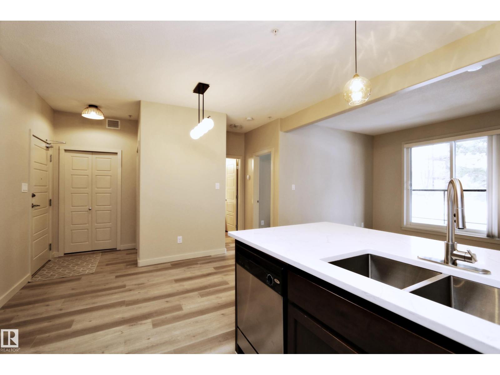 Modern comfort and stylish finishes throughout in this beautifully renovated 2-bedroom, 2-bathroom home. Freshly painted in warm, neutral tones, this move-in ready suite features upgraded luxury vinyl plank and tile flooring, along with elegant quartz countertops. The spacious primary bedroom offers a private ensuite and a convenient walk-through closet, creating a functional and relaxing retreat. Step outside to your own private, tree-lined patio—perfect for unwinding in a peaceful, natural setting. Additional highlights include underground parking with storage and access to excellent building amenities, including an exercise room, guest suite, and social room. Ideally located in the Ambleside of Windermere, it is within walking distance to the Currents of Windermere shopping and entertainment district. Enjoy quality living in your own private oasis. (id:51989)