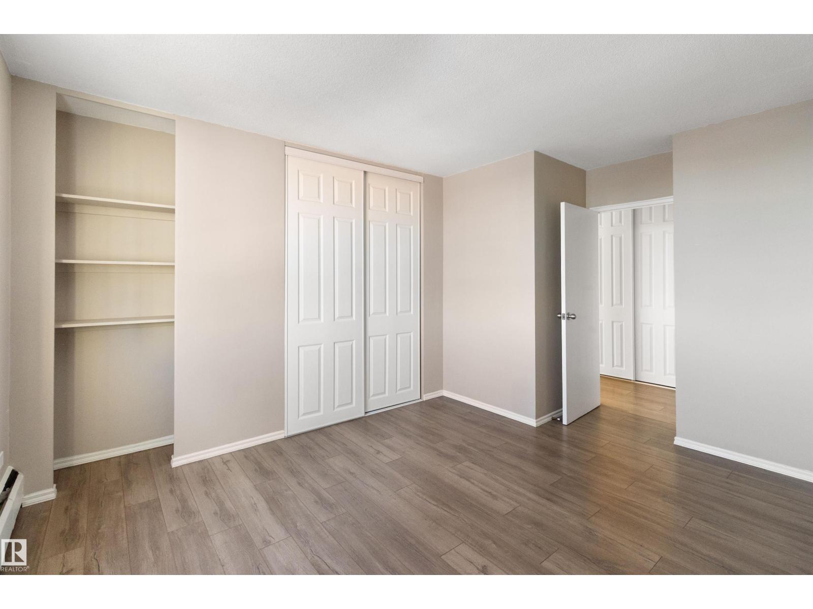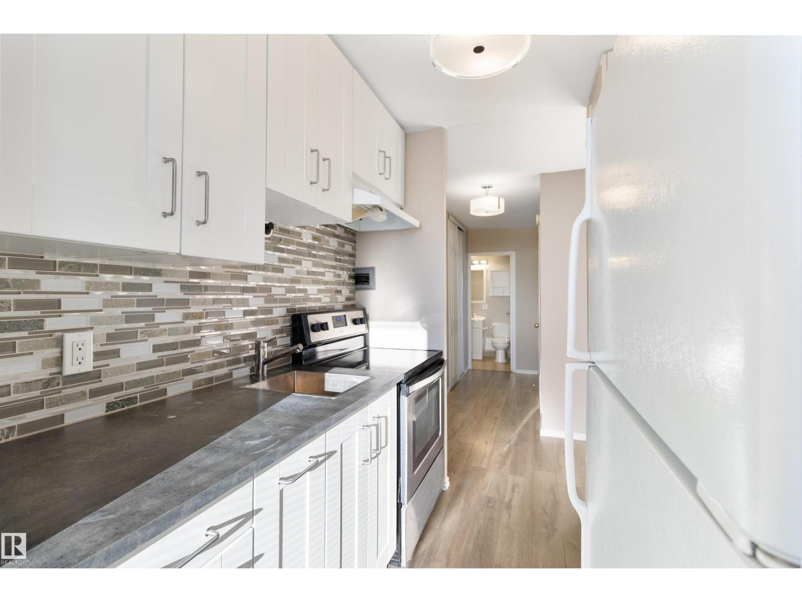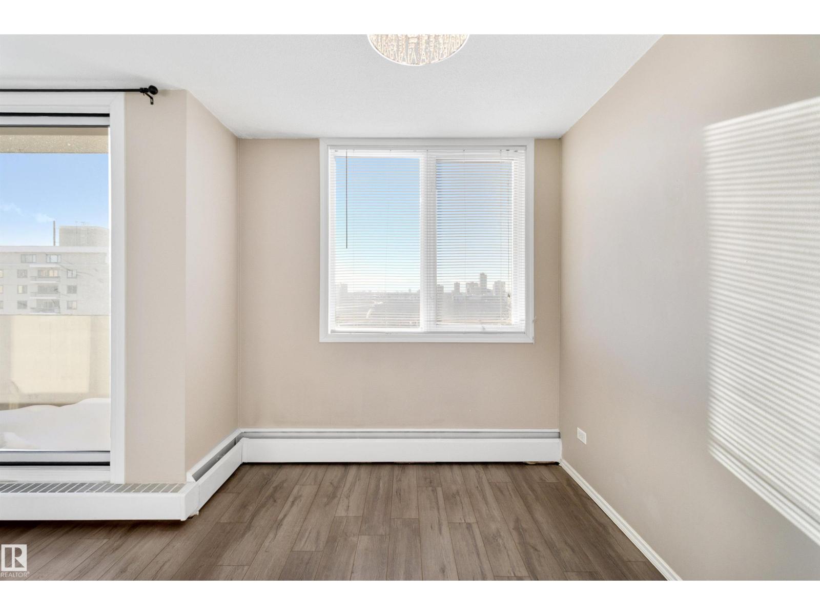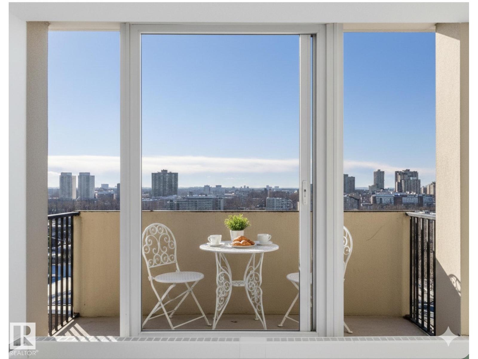 IMMEDIATE POSSESSION!! LOW CONDO FEES INCLUDE HEAT, WATER AND ELECTRICITY. Great place to live or use as a rental opportunity in the heart of downtown Edmonton. Top floor with stunning RIVER VALLEY VIEWS. South facing windows fill the space with bright natural light, while patio doors lead to your private balcony, perfect for BBQs and relaxing with the SCENERY. The updated kitchen offers a smart layout and flows into the dining area, with room for a dining set or home office nook. A full 4 piece bathroom is conveniently accessible from the spacious primary bedroom. New vinyl plank flooring adds a warm modern feel, with multiple storage closets throughout. One parking stall is included(#61), with extra storage available to rent in the building. Enjoy a shared rooftop patio ideal for entertaining or taking in the views. The building features a new roof, updated elevators and a healthy reserve fund. Walking distance to the LRT, river valley trails, shops, cafes, U of A University (id:51989)