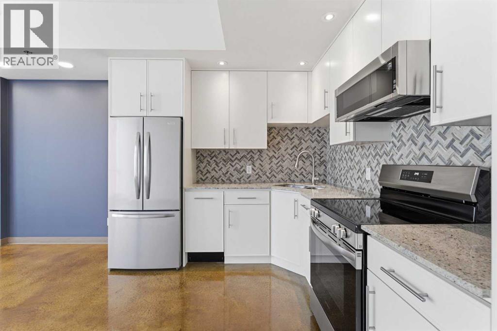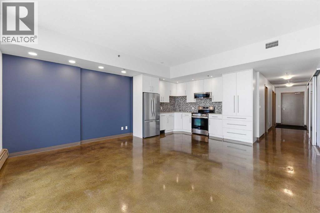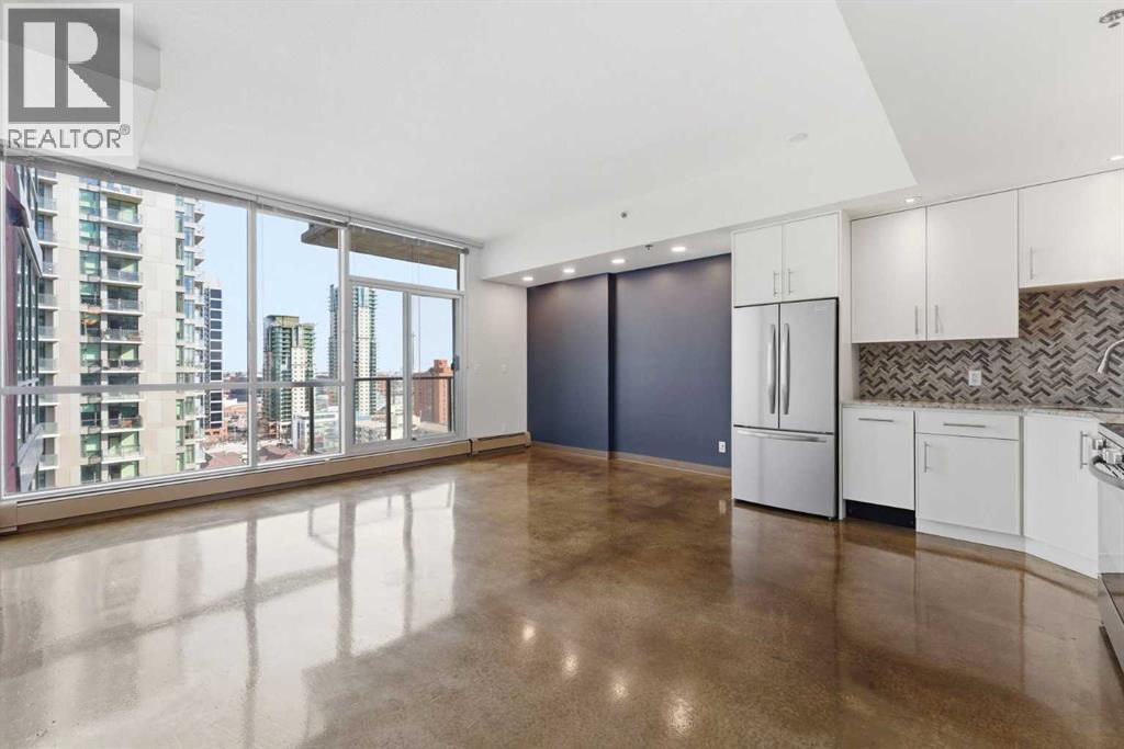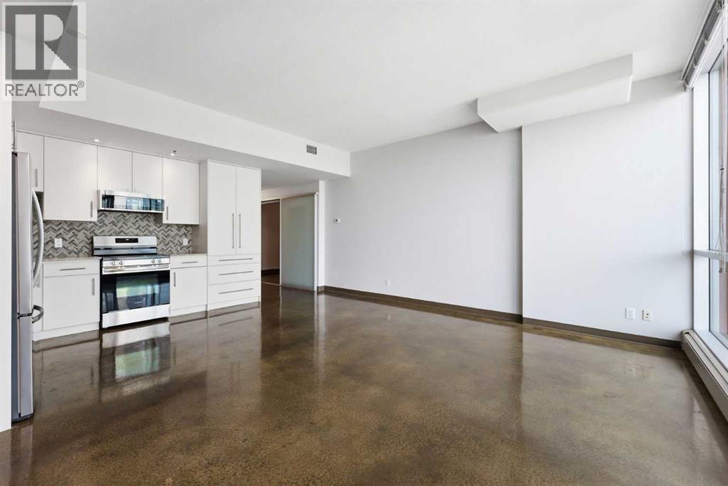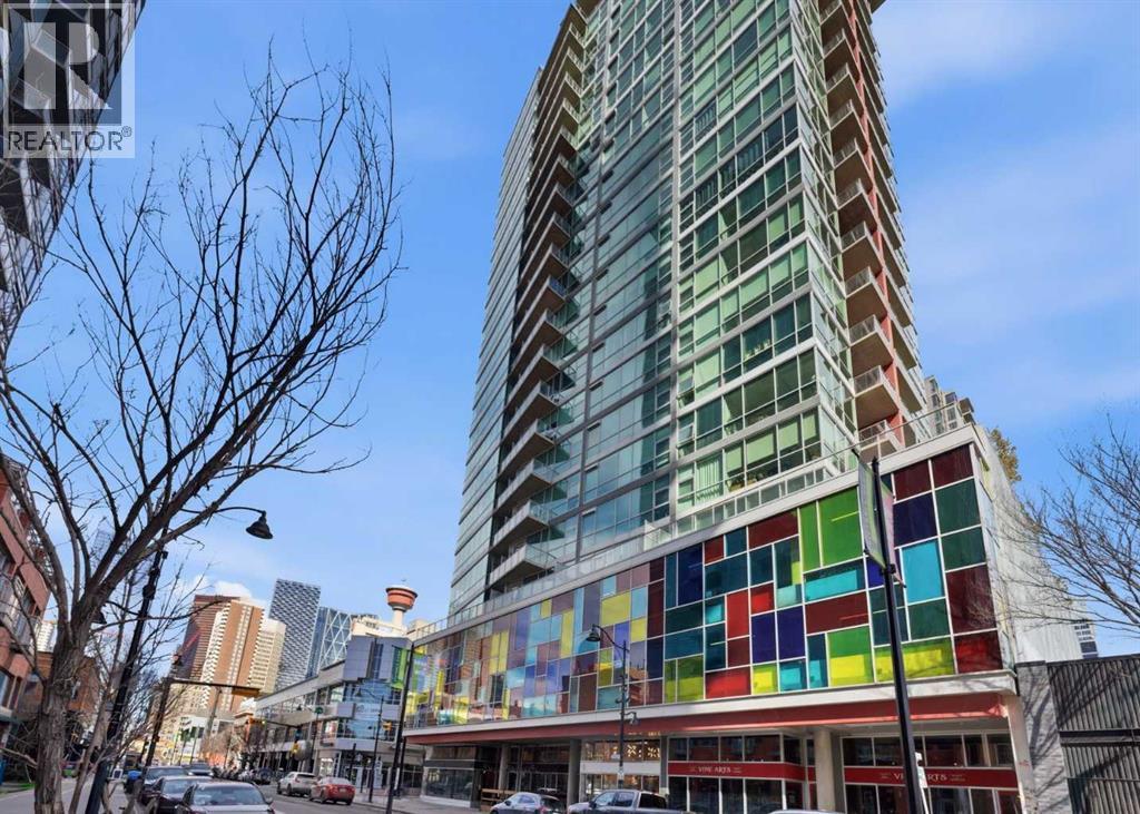 Take a look at this stunning well priced 2 bedroom 2 bath unit located in the heart of Calgary - just steps away from some of the cities best restaurants, cafes, pubs and local shops. This condo perfectly incorporates modern city life with comfortable living. This future home takes convenience and functionality to the next level, with an in-unit laundry room, storage, and a titled parking stall. Gleaming polished concrete flooring runs throughout the entire unit. A large open-concept living room with floor to ceiling windows bathes the entire space in natural light, perfect for hosting or daily relaxation. The kitchen, equipped with modern upgrades that provide greater comfort and convenience. Approximately 1.5 yrs ago the kitchen was remodeled with extended height cabinets that now reach the ceiling, a larger pantry with pot drawers, all new back splash and a new stainless steel appliance package, including a french door fridge with a freezer drawer, hidden dishwasher with a cabinet panel and extra lighting. The kitchen is an ideal work space offering plenty of counter and tons of cupboard space. Both bedrooms are purposefully placed to provide maximum privacy and comfort for the owners or guests. The master suite includes a full 4-piece en-suite. Sliding glass doors open to the second bedroom (office or flex space) perfect for guests with a full 3-piece bathroom located just steps away. With Stampede Park and local cafes just minutes away, this unit provides a vibrant urban lifestyle that perfectly encapsulates modern downtown living and local convenience. This condo offers the flexibility perfect for first time buyers, young couples or investors. (id:51989)