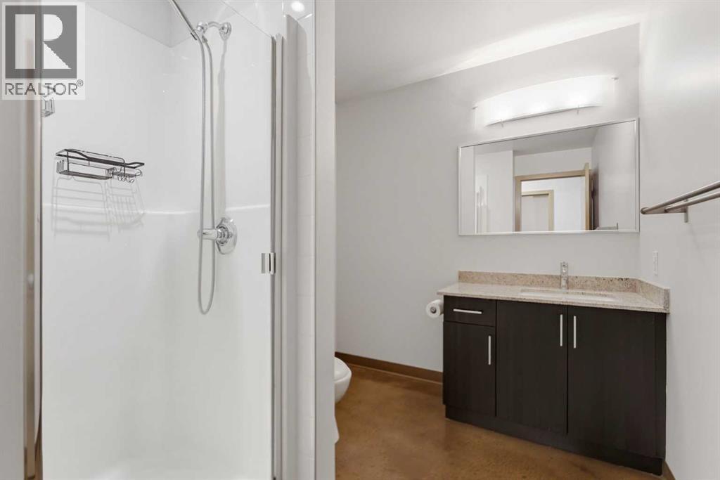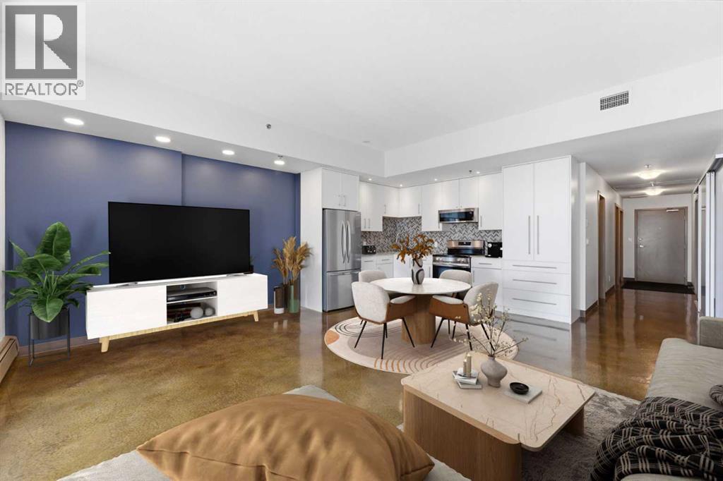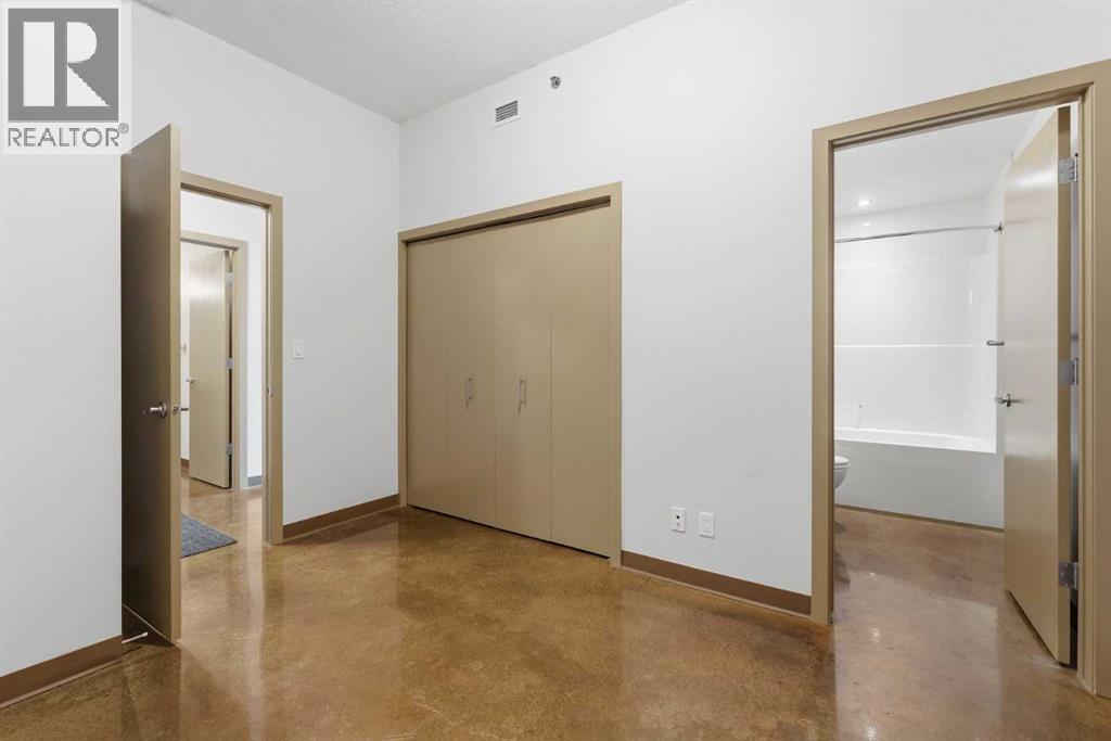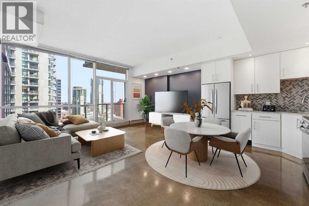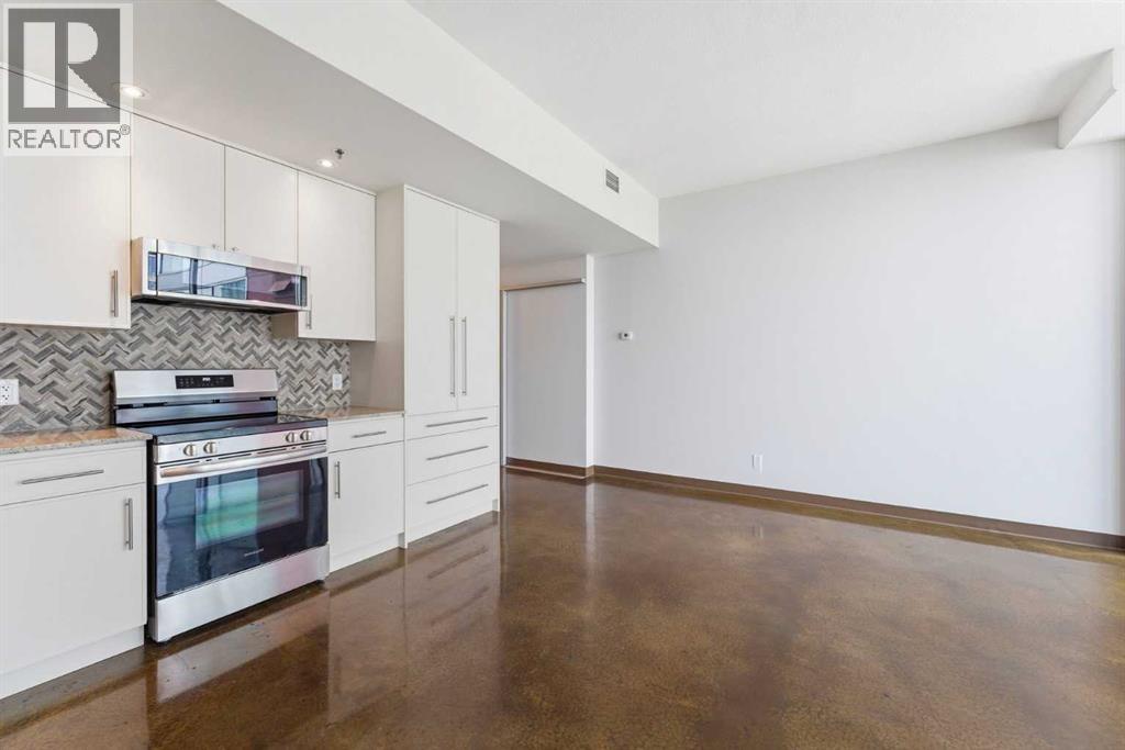 Take a look at this stunning well priced 2 bedroom 2 bath unit located in the heart of Calgary - just steps away from some of the cities best restaurants, cafes, pubs and local shops. This condo perfectly incorporates modern city life with comfortable living. This future home takes convenience and functionality to the next level, with an in-unit laundry room, storage, and a titled parking stall. Gleaming polished concrete flooring runs throughout the entire unit. A large open-concept living room with floor to ceiling windows bathes the entire space in natural light, perfect for hosting or daily relaxation. The kitchen, equipped with modern upgrades that provide greater comfort and convenience. Approximately 1.5 yrs ago the kitchen was remodeled with extended height cabinets that now reach the ceiling, a larger pantry with pot drawers, all new back splash and a new stainless steel appliance package, including a french door fridge with a freezer drawer, hidden dishwasher with a cabinet panel and extra lighting. The kitchen is an ideal work space offering plenty of counter and tons of cupboard space. Both bedrooms are purposefully placed to provide maximum privacy and comfort for the owners or guests. The master suite includes a full 4-piece en-suite. Sliding glass doors open to the second bedroom (office or flex space) perfect for guests with a full 3-piece bathroom located just steps away. With Stampede Park and local cafes just minutes away, this unit provides a vibrant urban lifestyle that perfectly encapsulates modern downtown living and local convenience. This condo offers the flexibility perfect for first time buyers, young couples or investors. (id:51989)
