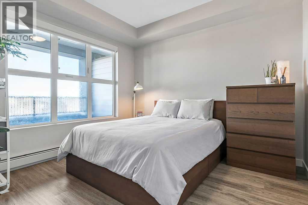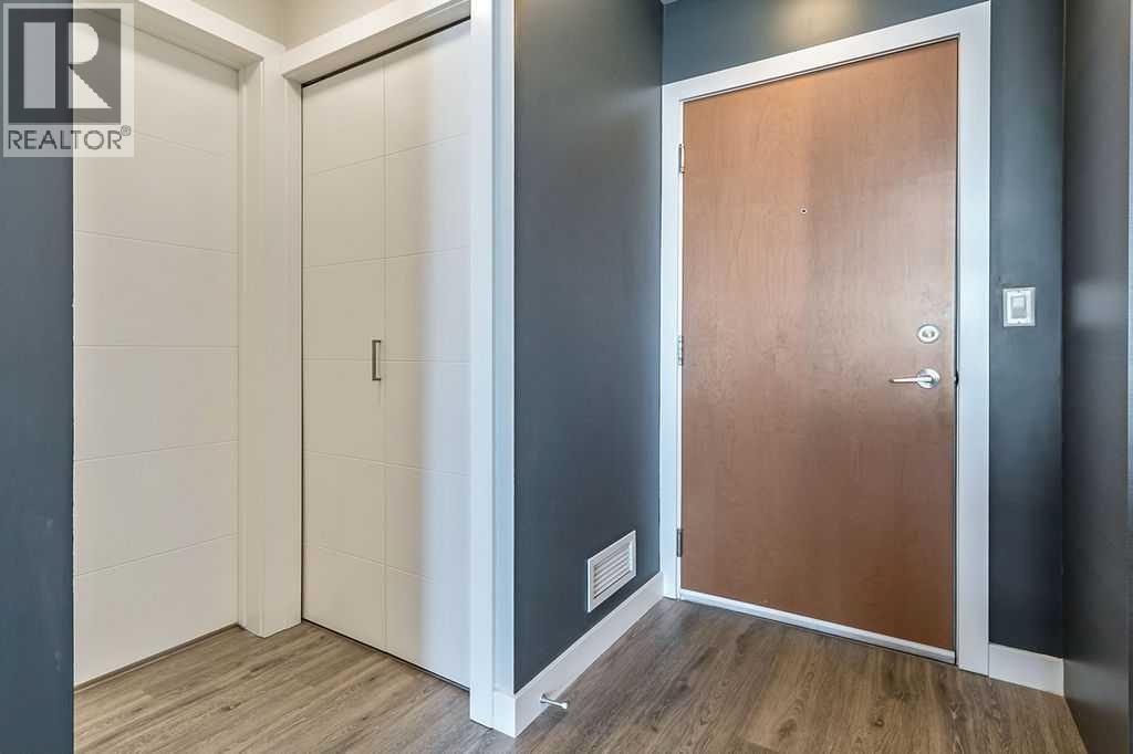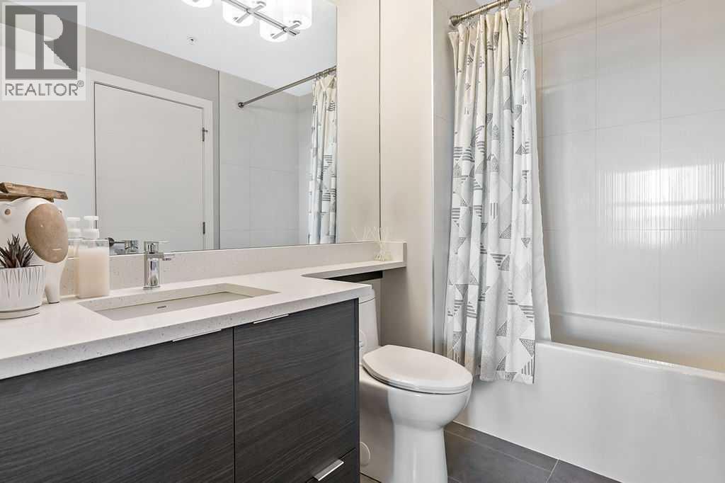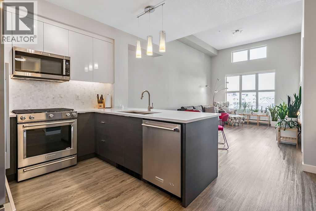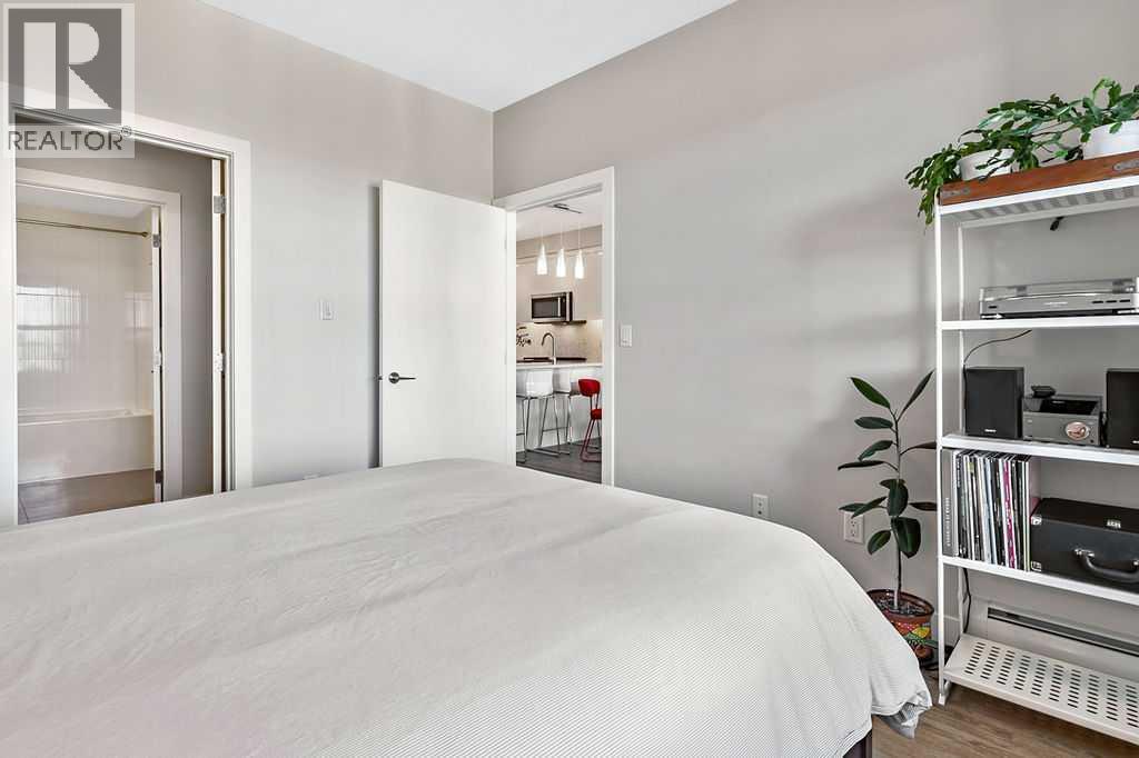 A quiet confidence you notice the moment you step inside. Sitting at the top, where the light lingers just a little longer and the noise fades into the background. Ceilings stretch nearly 13 feet high, giving room to breathe and room for your life to unfold in a way that feels expansive, not confined. Every evening, golden light spills through windows, dancing across the open-concept space, warming the two-tone cabinetry and catching the subtle shimmer of the designer backsplash. The kitchen has been thoughtfully elevated with sleek upgraded appliances, clean lines, and finishes that feel as beautiful as they are functional. Conversations flow easily here, from the kitchen to the living space, carried by light and openness. And just beyond the windows, a view over the rooftops reminds you; you’re above it all. The bedroom is generous, calm, and restorative, with a walk-through closet thoughtfully finished with organizers that keep everything in its place. And then your bathroom. A space that invites you to slow down, exhale, and stay a little longer. Crafted with all the details you’d expect and a few you didn’t know you needed. 40+ visitor underground parking stalls and even a car wash, tucked conveniently within the building, because ease should be part of everyday living. Not just a top-floor condo. Your new home where light, space, and location come together, effortlessly. (id:51989)