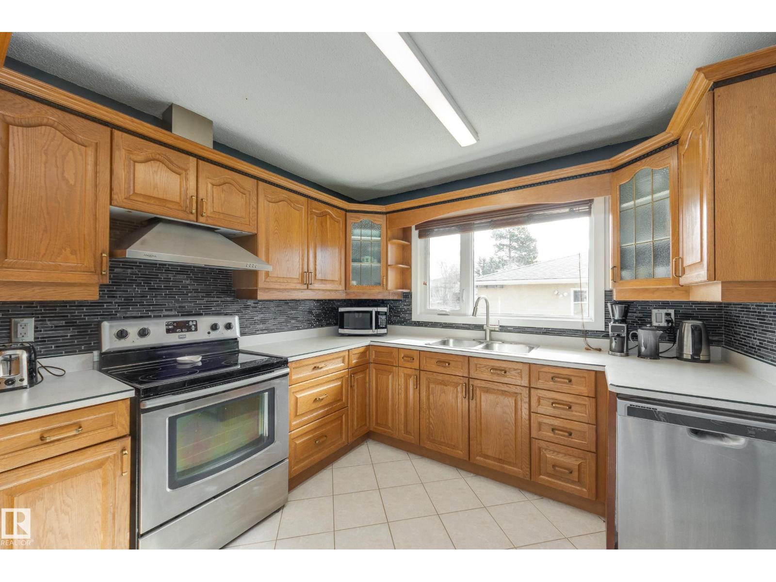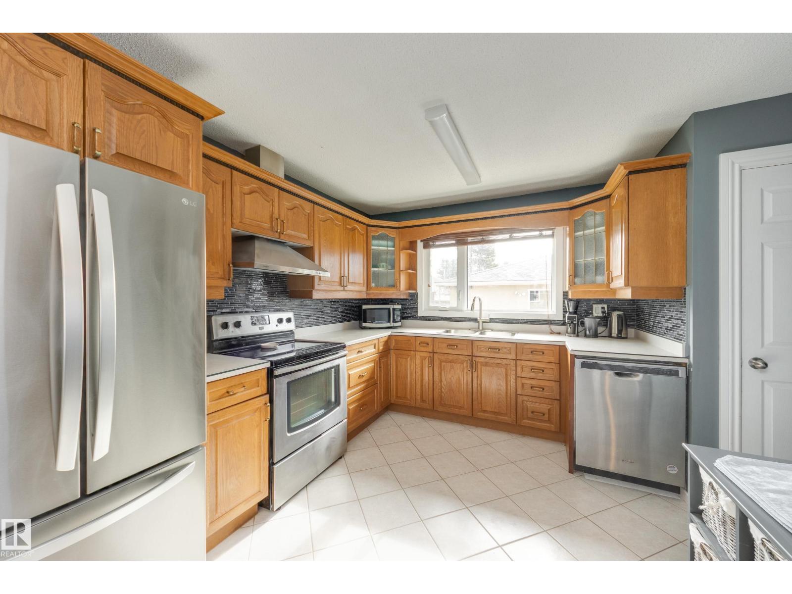 Upgraded family home with a SECOND KITCHEN! With 3 generously-size bedrooms & 2.5 bathrooms in almost 2300 sq ft, this is the perfect family home. Open and flooded with natural light, the main living space features durable ceramic tile & laminate floors, functional kitchen with stainless steel appliances & a pantry. A breakfast bar & dining room off the kitchen offer dining options. Enjoy the privacy of a 2-pce ensuite and the convenience of a 4-pce bathroom on the main floor. The fully finished basement comes complete with a second kitchen with an island, large rec room, full bathroom & potential 4th bedroom. Feel comfortable knowing that many upgrades have been done including windows, 100 amp service, extra attic insulation, new furnace (2021), and new HWT, dishwasher, fridge & washing machine (2023). A large, fenced yard and oversized & insulated detached double garage is a bonus, with room for 2 cars to park on the driveway. Live walking distance to schools, shopping, transit & a recreation centre. (id:51989)