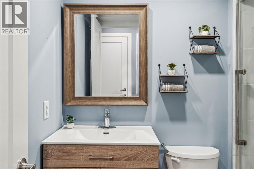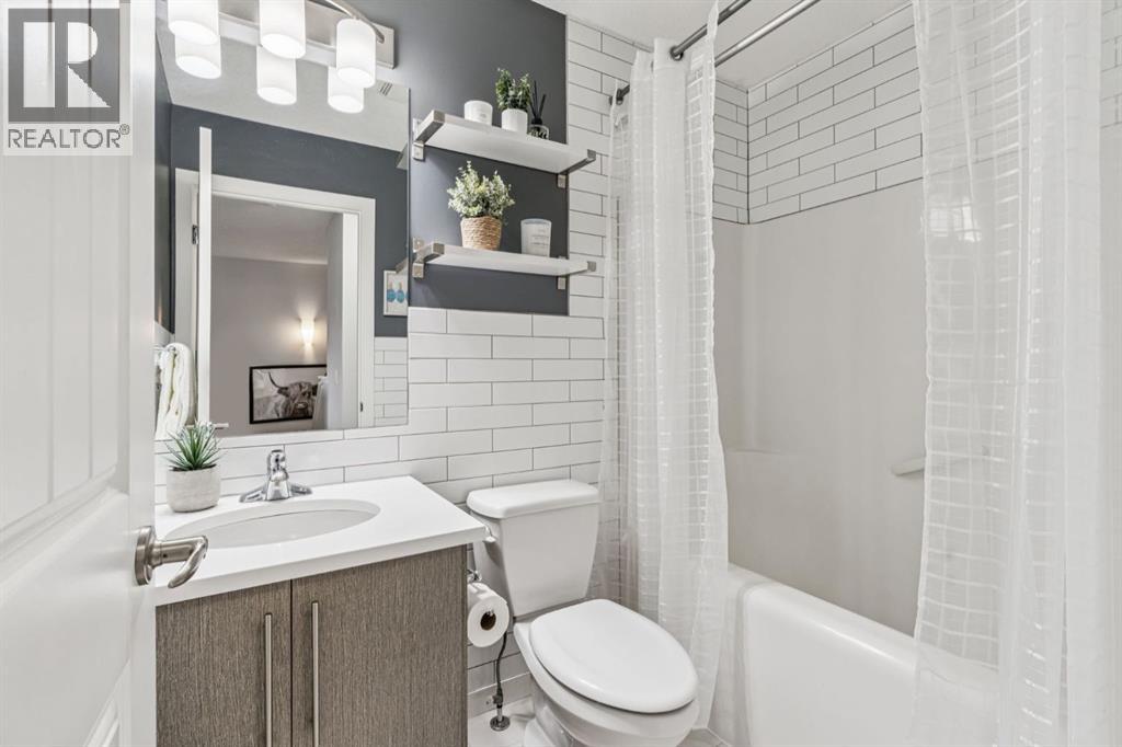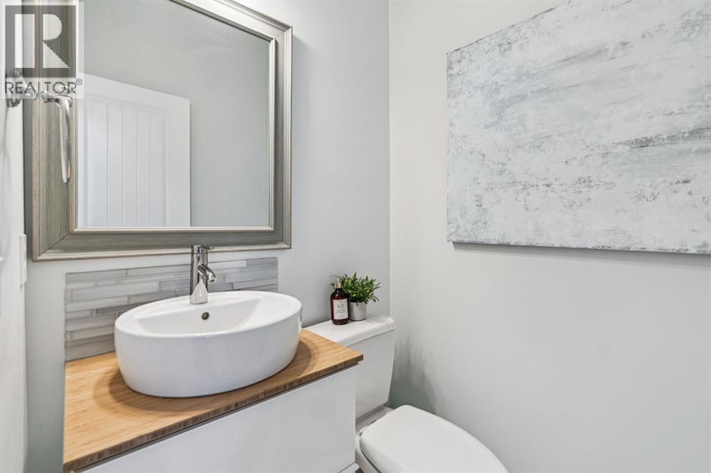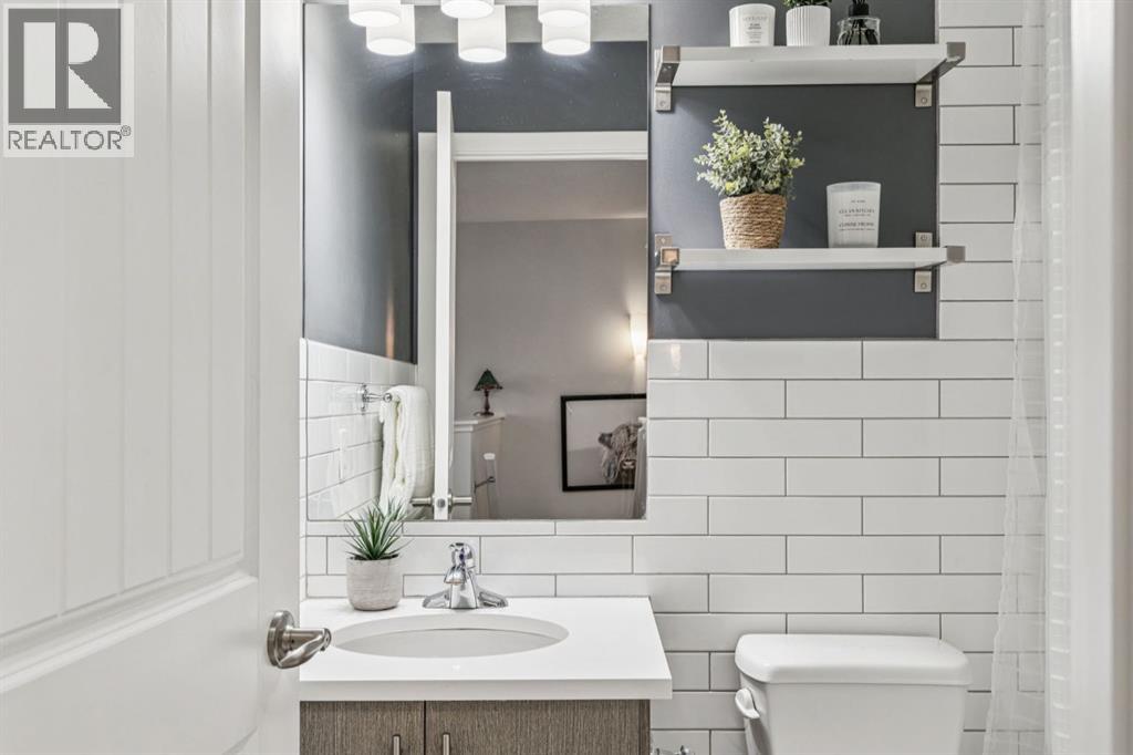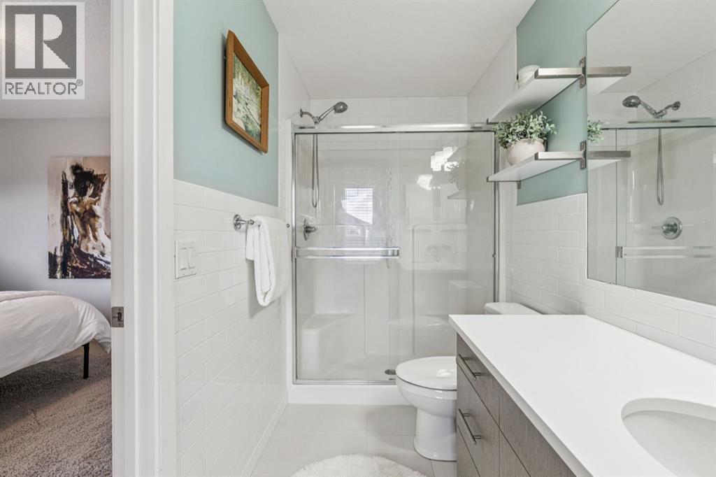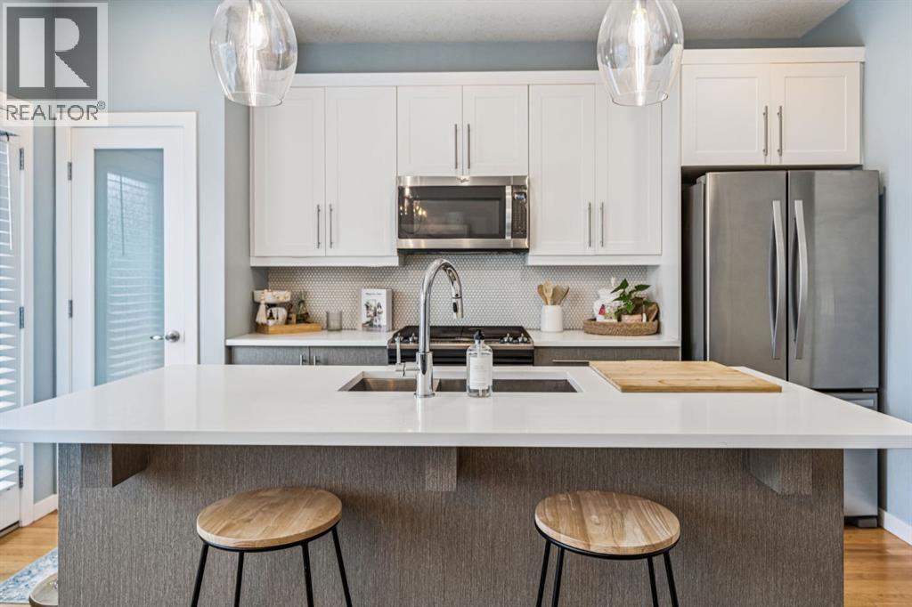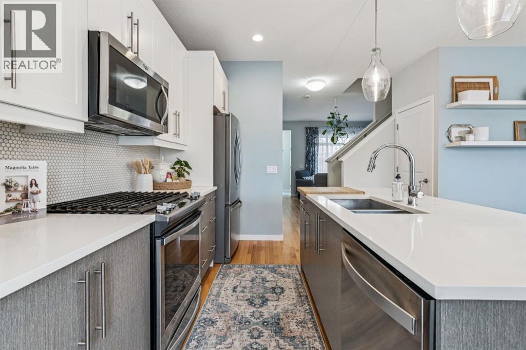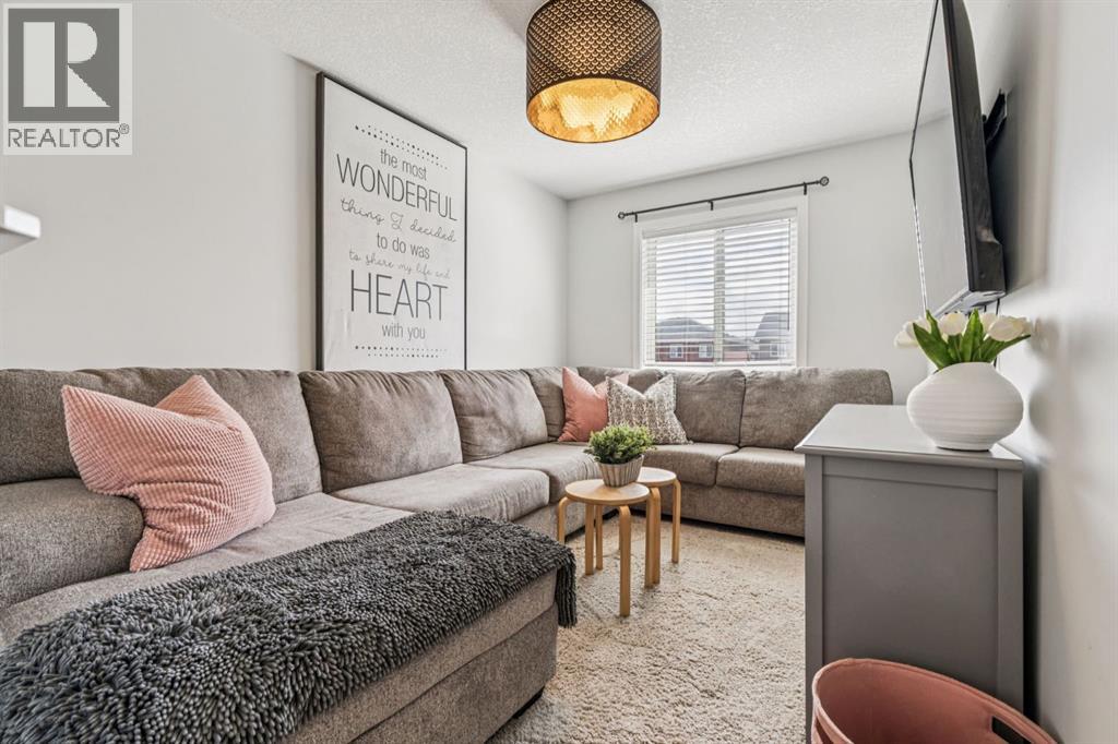 Welcome to this well appointed home in the desirable community of Fireside! The main level offers a warm and inviting living space highlighted by a stunning gas fireplace with floor-to-ceiling tile and built-in shelving. The stylish kitchen features quartz countertops, a gas cooktop, French door fridge, microwave hood fan, and a newer dishwasher, all flowing seamlessly into the dining area—perfect for everyday living and entertaining. Step outside to enjoy the south facing backyard complete with a full width deck, front veranda, fencing, and added storage with an outdoor shed.Upstairs you’ll find two comfortable bedrooms, including a primary retreat with quartz finishes. The fully developed basement adds incredible versatility with laminate flooring, fresh paint, an additional bedroom, an office/den, and a 3-piece bathroom with a beautifully tiled shower. A dedicated laundry room with cabinetry provides added convenience.Additional highlights include an oversized hot water tank, well-maintained furnace, and a barn-style storage unit with attachments.Ideally located close to parks, pathways, schools, and amenities—this is a fantastic opportunity to own in one of Cochrane’s most family-friendly communities! (id:51989)