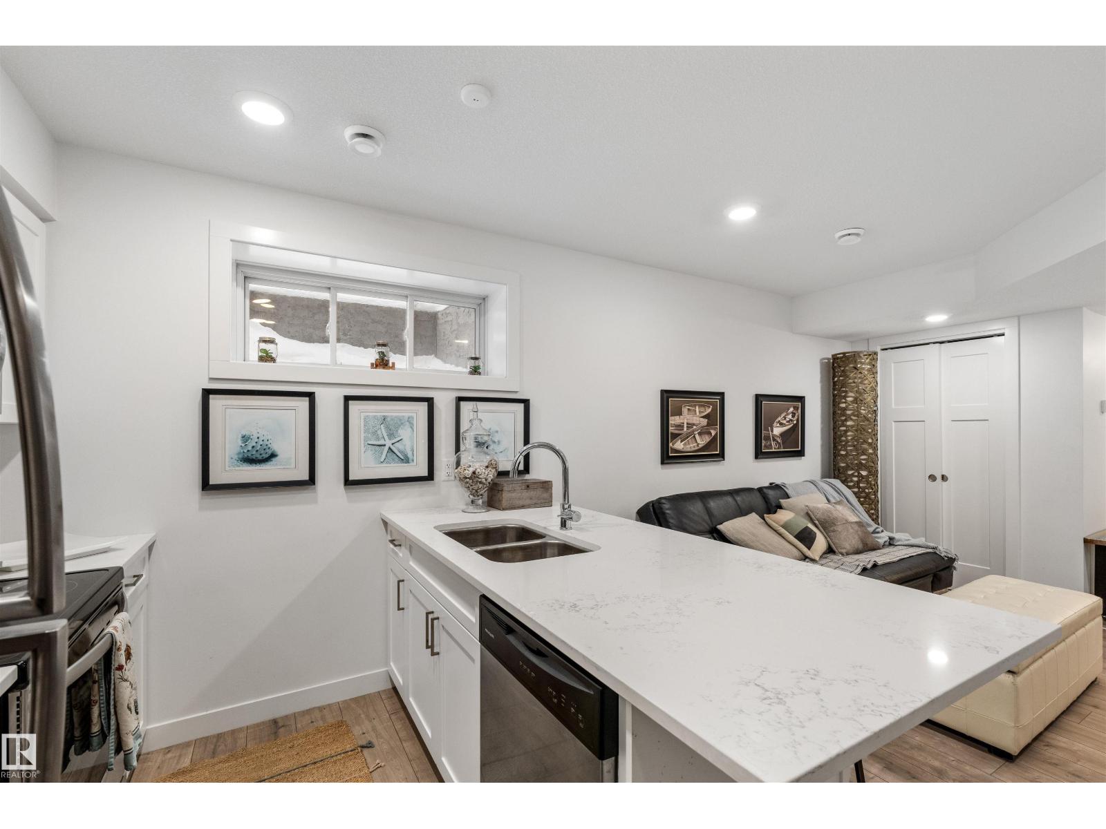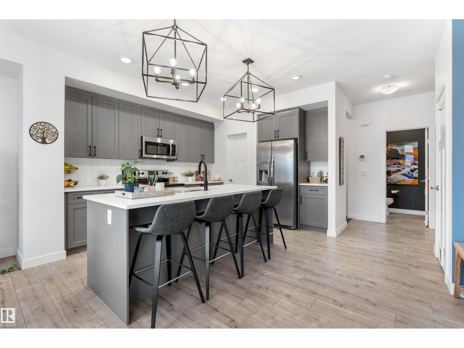 Stunning former, custom Sarasota Sandkey showhome offering 4 beds, 4 baths, and a LEGALLY SUITED basement with private garage access. A dramatic open-to-above foyer welcomes you into an elegant open-concept design adorned with striking architectural details. The GOURMET kitchen showcases QUARTZ countertops, sleek cabinetry, and stainless steel appliances, flowing seamlessly into a sun-filled great room anchored by a cozy gas fireplace. OVERSIZED windows and patio doors lead to a private yard—perfect for relaxing or entertaining. Upstairs features a versatile bonus room, full bath, laundry, and three generous bedrooms, including a serene primary retreat with walk-in closet and spa-inspired ensuite. The professionally finished basement suite includes its own great room, kitchen, bedroom, bath, and laundry—ideal for extended family or INCOME POTENTIAL Located in one of St. Albert’s trendiest new neighbourhoods, just steps from BEACH ACCESS, parks, schools, and shops. Luxury, and lifetstyle. (id:51989)