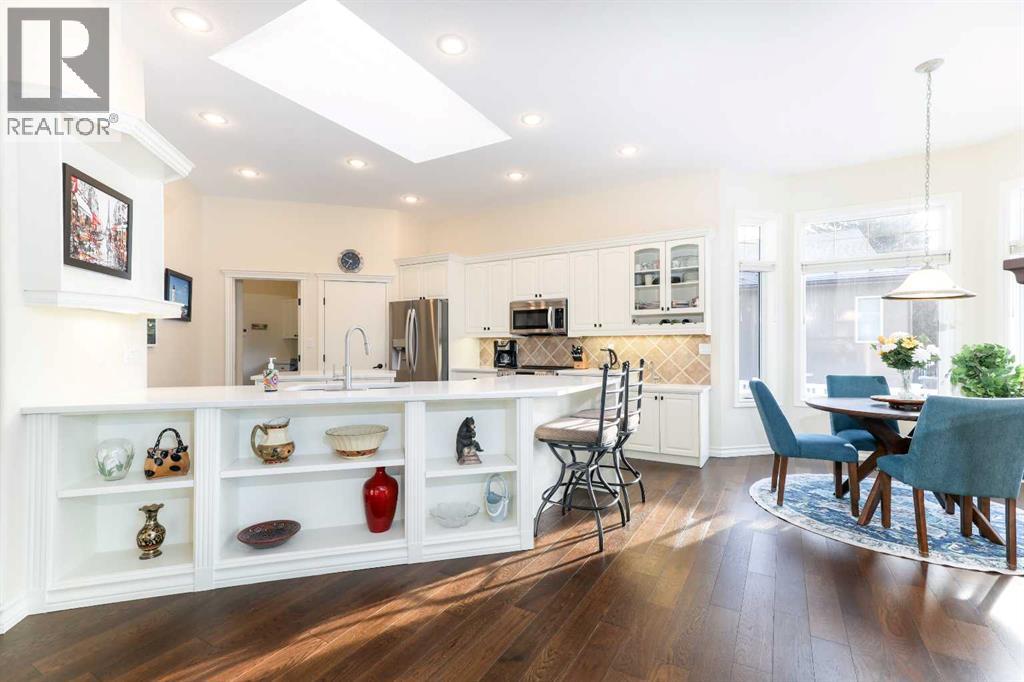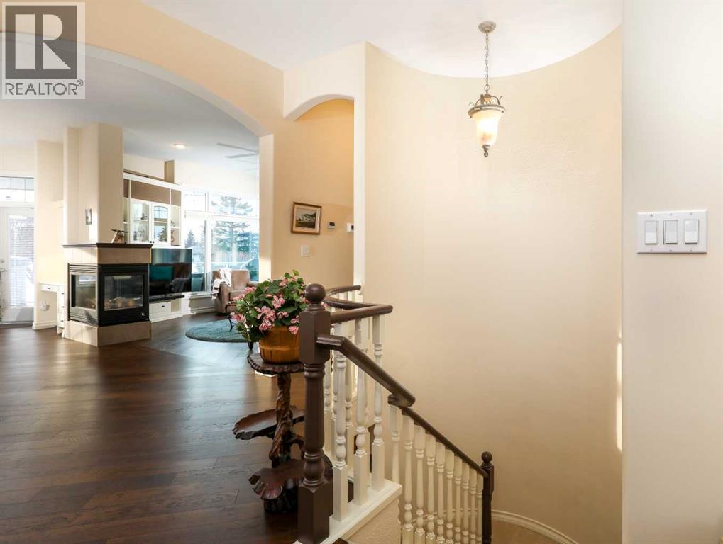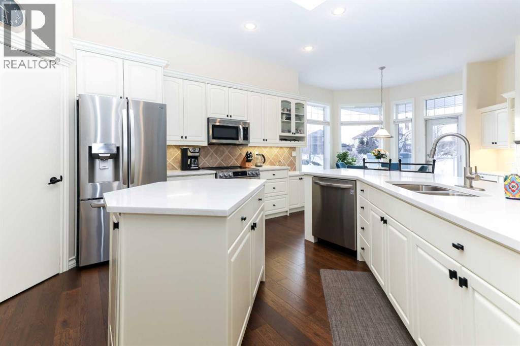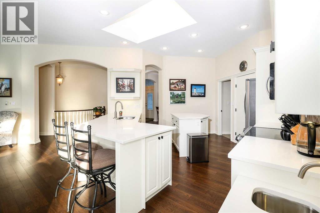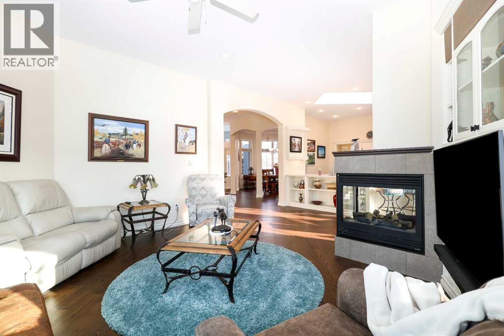This meticulously maintained luxury home, built by Kalis Homes, is ideally situated in the prestigious Anders Park East neighbourhood and backs onto a serene green space. The residence features an open-concept main floor highlighted by soaring ceilings, quality hardwood and tile flooring, and a skylight that bathes the living area in natural light. A chef’s kitchen serves as the heart of the home, boasting quartz countertops, a spacious center island with an eating bar, high-quality cabinetry, and built-in appliances, including a stove, microwave, and dishwasher. All appliances and window covers have been installed within the last 2 years approximately. The main level also includes a dedicated front office that can easily serve as an additional bedroom. The living room boasts a cozy 3 sided a gas fireplace. The dining area is large. Back deck boosts a 12' x 22' covered deck overlooking the beautifully manicured yard, accessed from the kitchen. The entire inside of the home has been repainted.The primary suite is a true sanctuary, offering a large walk-in closet and a luxurious 5-piece ensuite complete with a soaker tub and a tile shower and in floor heating. For ultimate convenience, a dedicated laundry room is also located on the main floor. The expansive basement provides additional living space with a large family room. This level is rounded out by two large bedrooms, a 4-piece bathroom, and a wet bar, making it an ideal space for guests or relaxation. For comfort, the basement is equipped with in-floor heatingThe garage and parking area design further distinguishes this property, including a concrete driveway finished with rubber membrane and an oversized, heated double attached garage that is fully insulated and equipped with a floor drain. Exterior and mechanical features, underground sprinklers, a gas BBQ hook-up, a phantom screen door, a new furnace, a new air conditioning unit, a new air exchanger, a new water softener and completely repainted on the ou tside of the home. With thoughtful touches like a built-in phone desk and a large side yard, this home represents an outstanding opportunity to own a high-quality residence in one of Red Deer’s most desirable locations. (id:51989)