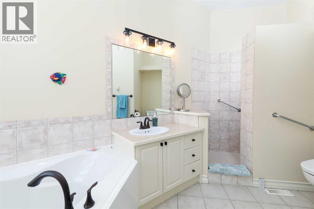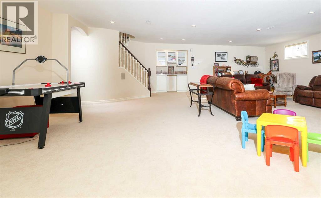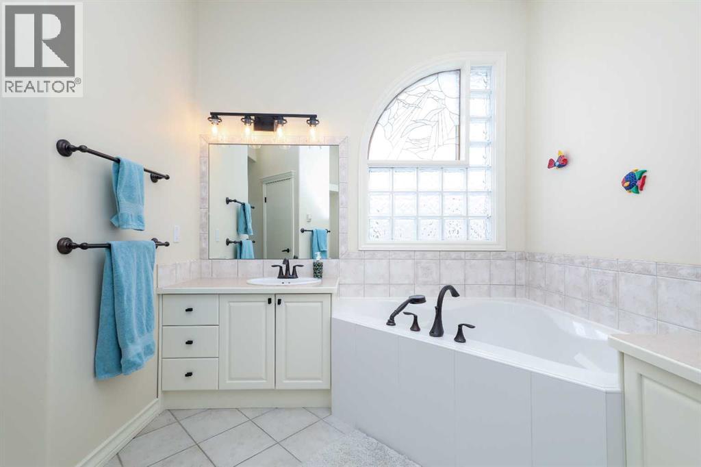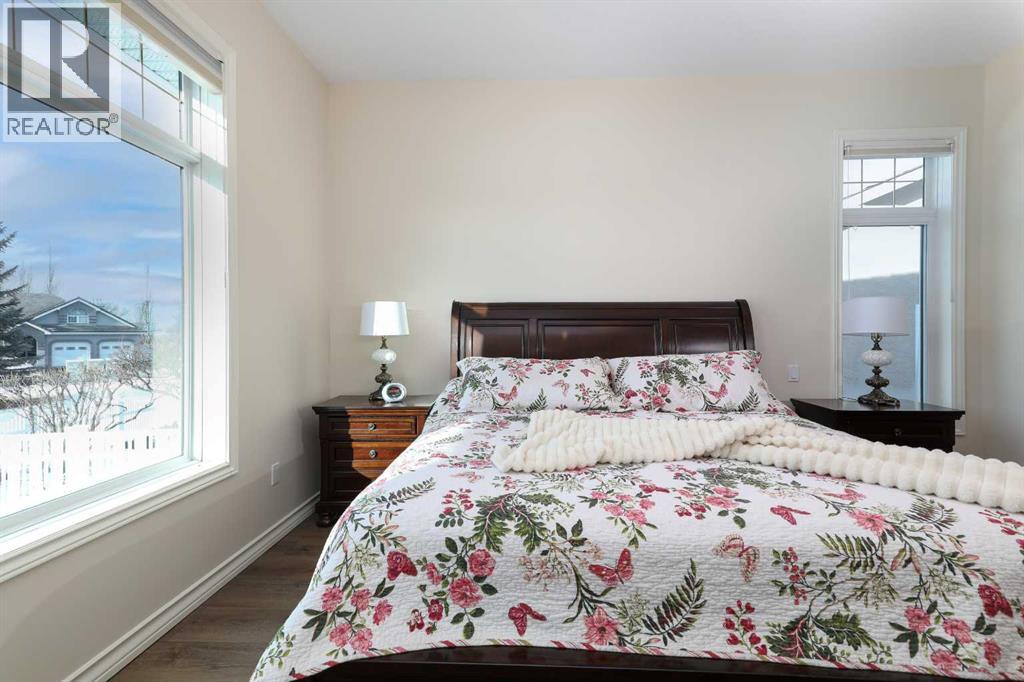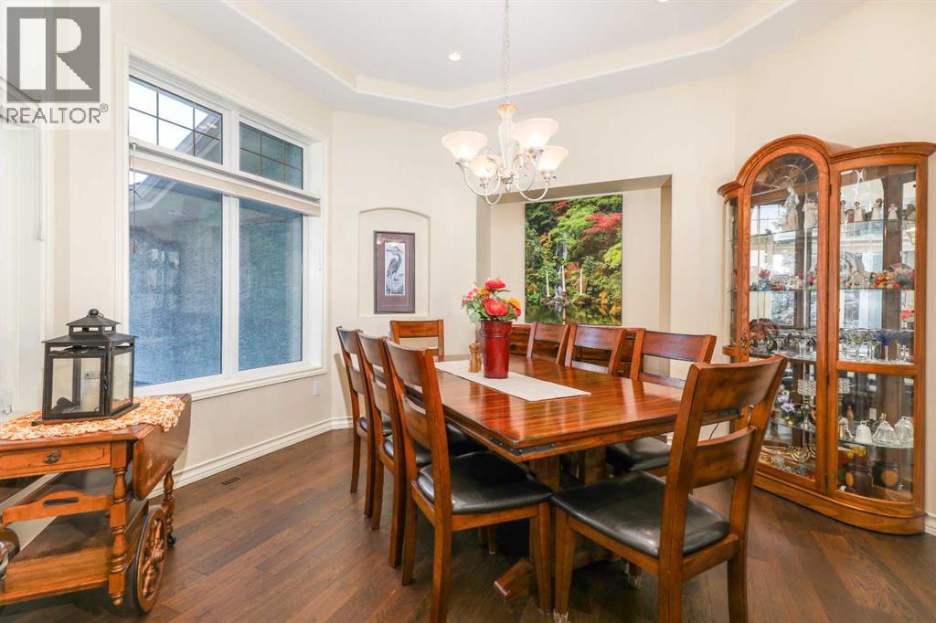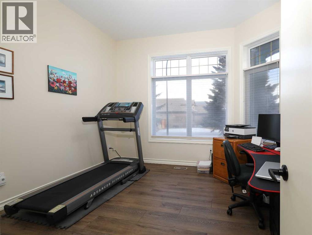 This meticulously maintained luxury home, built by Kalis Homes, is ideally situated in the prestigious Anders Park East neighbourhood and backs onto a serene green space. The residence features an open-concept main floor highlighted by soaring ceilings, quality hardwood and tile flooring, and a skylight that bathes the living area in natural light. A chef’s kitchen serves as the heart of the home, boasting quartz countertops, a spacious center island with an eating bar, high-quality cabinetry, and built-in appliances, including a stove, microwave, and dishwasher. All appliances and window covers have been installed within the last 2 years approximately. The main level also includes a dedicated front office that can easily serve as an additional bedroom. The living room boasts a cozy 3 sided a gas fireplace. The dining area is large. Back deck boosts a 12' x 22' covered deck overlooking the beautifully manicured yard, accessed from the kitchen. The entire inside of the home has been repainted.The primary suite is a true sanctuary, offering a large walk-in closet and a luxurious 5-piece ensuite complete with a soaker tub and a tile shower and in floor heating. For ultimate convenience, a dedicated laundry room is also located on the main floor. The expansive basement provides additional living space with a large family room. This level is rounded out by two large bedrooms, a 4-piece bathroom, and a wet bar, making it an ideal space for guests or relaxation. For comfort, the basement is equipped with in-floor heatingThe garage and parking area design further distinguishes this property, including a concrete driveway finished with rubber membrane and an oversized, heated double attached garage that is fully insulated and equipped with a floor drain. Exterior and mechanical features, underground sprinklers, a gas BBQ hook-up, a phantom screen door, a new furnace, a new air conditioning unit, a new air exchanger, a new water softener and completely repainted on the ou tside of the home. With thoughtful touches like a built-in phone desk and a large side yard, this home represents an outstanding opportunity to own a high-quality residence in one of Red Deer’s most desirable locations. (id:51989)