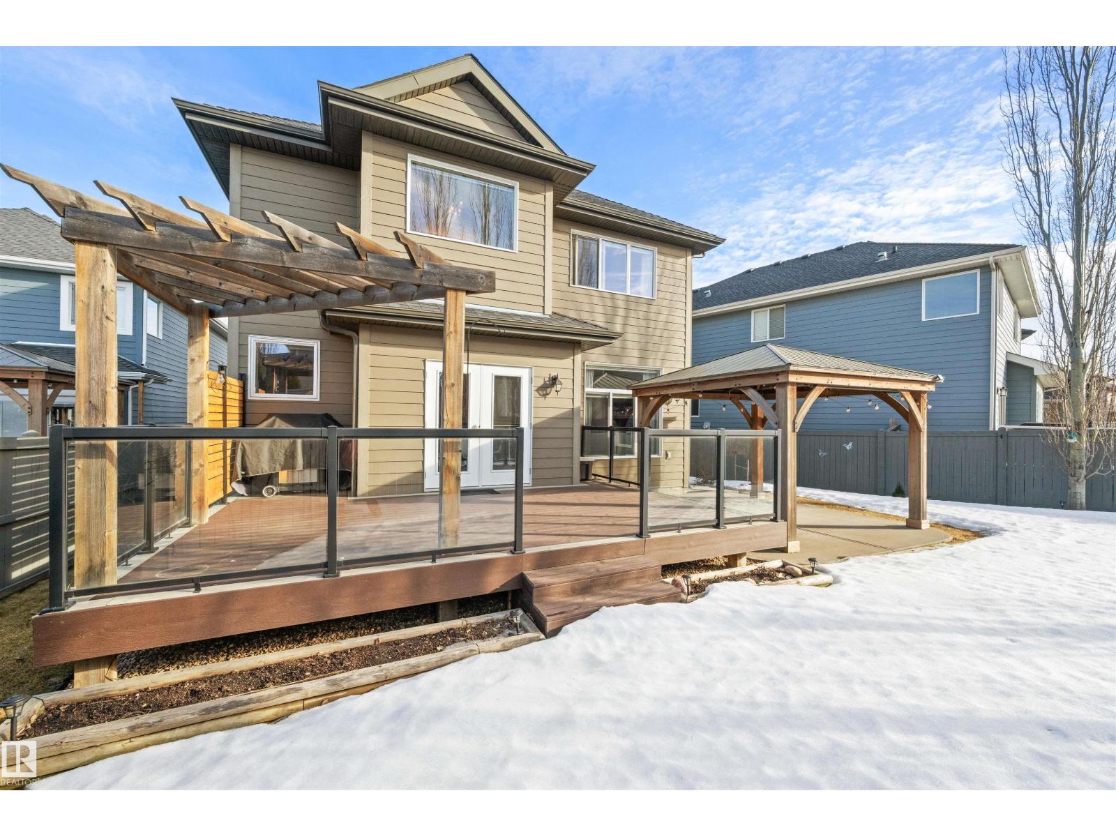 Welcome to this meticulously curated residence in the heart of Edmonton, where modern luxury meets timeless design. A true sanctuary for the discerning homeowner, this property offers a seamless blend of high-end finishes and expansive, light-filled living spaces. The heart of the home is a chef-inspired kitchen featuring a grand central island, custom cabinetry drawers, and premium hardwood flooring that flows throughout the main level. Designed for grand-scale entertaining, the separate formal dining room comfortably accommodates large holiday gatherings with effortless grace. he professionally finished basement offers defined spaces for a private guest retreat, gaming, and high-end entertainment. Outside, the meticulously landscaped backyard serves as a private oasis, complete with Trex decking, a gazebo sitting area, a fire pit, and lush lilac trees. An oversized, insulated double-attached garage with mezzanine storage, built-in speakers, and a large driveway for guest parking. (id:51989)