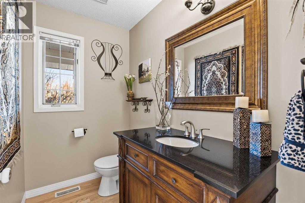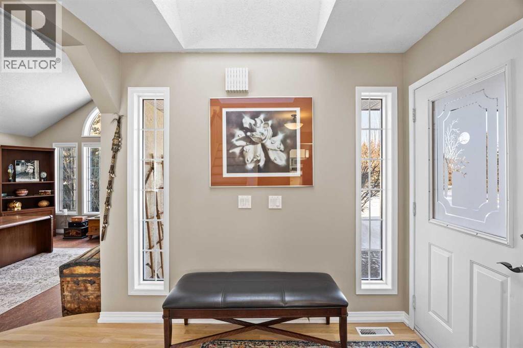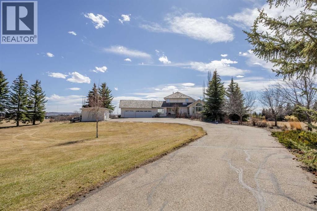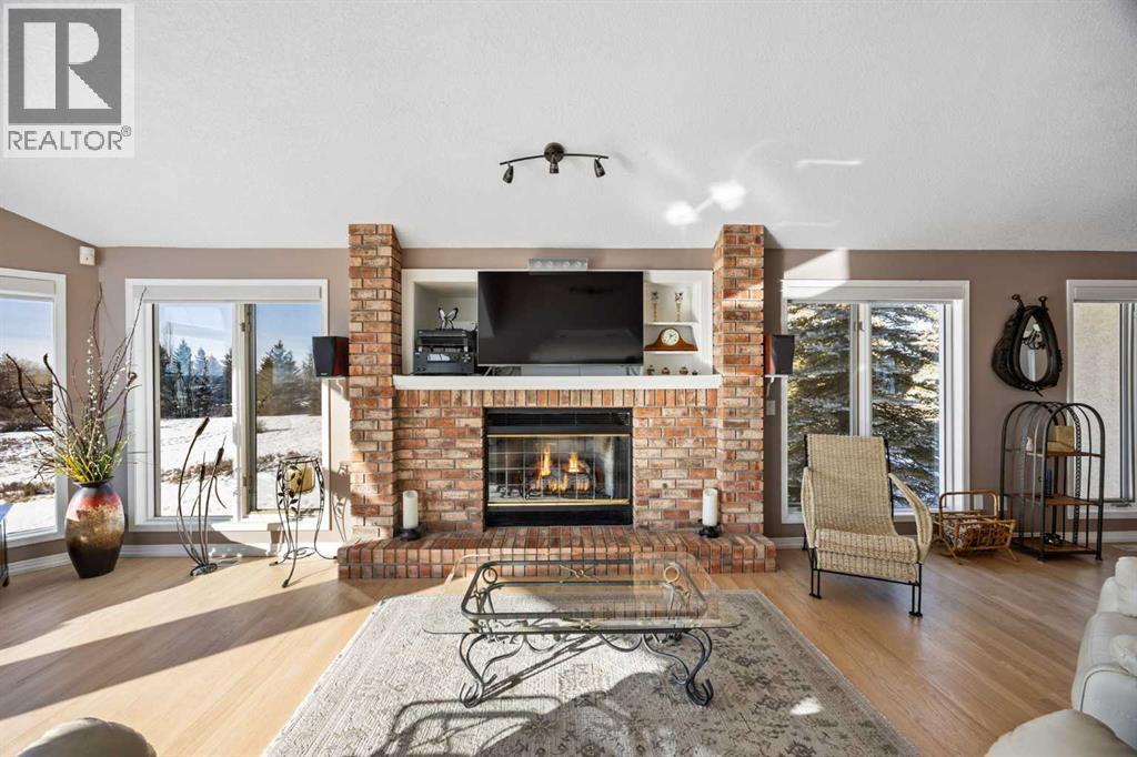 **OPEN HOUSE - Sat Apr 25 (11-1pm)**Set on a quiet cul-de-sac on the edge of Rocky View County, Blueridge Estates is a warm, welcoming community where space, comfort, and connection come together effortlessly. Set on a 2 acre, treed lot, this is a place where everyday life feels calm and unhurried—yet still close to everything the city offers.Large windows throughout the main floor flood the home with exceptional natural light and frame expansive views of the Rocky Mountains, downtown Calgary, and Winsport ski hill. At the heart of the main level, a beautifully detailed brick gas fireplace creates a natural gathering point that anchors the living spaces. Framed in timeless brick, it brings warmth, character, and a sense of permanence—perfect for cozy evenings, family gatherings, and long winter nights. High ceilings in the open great room further enhance the sense of space and light.Hardwood flooring runs throughout the majority of the main floor and was redone in 2023 in a natural oak tone, adding warmth and a timeless feel. The kitchen is both functional and inviting, featuring solid granite countertops and island, a new refrigerator, upgraded stainless steel appliances including an induction cooktop, and a reverse osmosis drinking water system. The layout flows seamlessly to the dining area and out to the deck, making indoor-outdoor living effortless.The primary suite has been thoughtfully renovated into a true retreat, offering unobstructed mountain views, a large walk-in closet, and a spa-inspired ensuite with heated tile flooring, a large walk-in shower, and a rain shower feature—a perfect place to unwind at the end of the day.The walkout basement continues the home’s inviting feel with high ceilings and large windows that provide abundant natural light and beautiful views. A brick wood burning fireplace anchors the spacious recreation room, creating a comfortable and relaxed setting for movie nights, entertaining, or family time.Outside, the lifestyle t ruly shines. Enjoy summer evenings on the large southwest-facing deck, unwind year-round in the saltwater hot tub, or gather around the outdoor fire pit with seating area. The oversized triple car garage with radiant heating adds everyday comfort, while practical upgrades such as two furnaces, two newer water heaters, and a Culligan water softener provide peace of mind.Located in a well-established community close to parks, pathways, schools, and major routes, this is a home designed for long-term living—where comfort, views, and thoughtful upgrades come together beautifully. (id:51989)