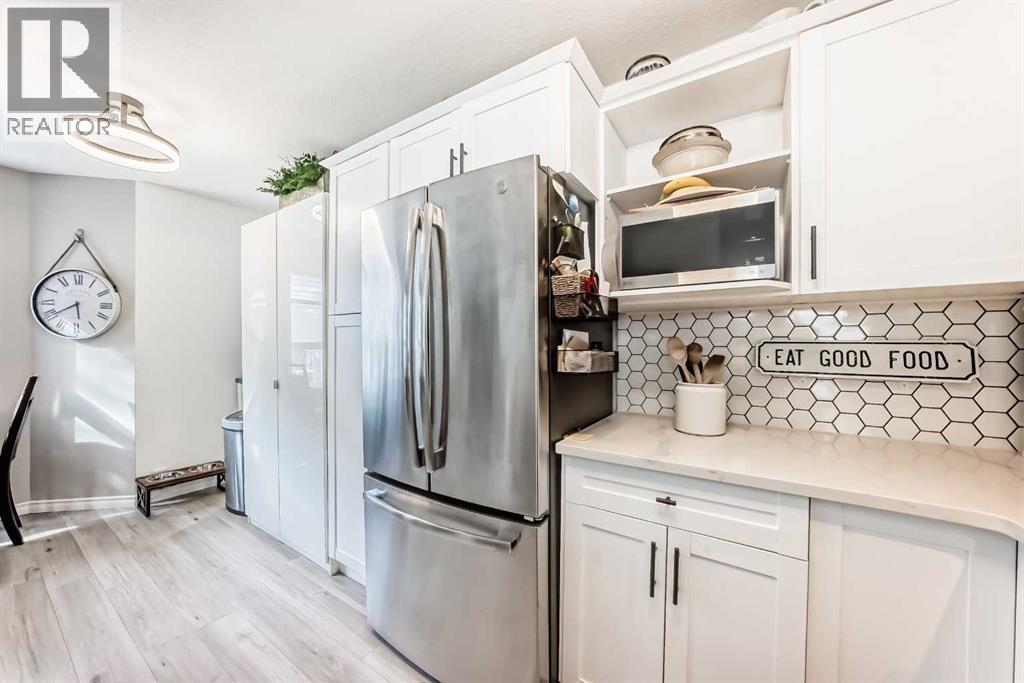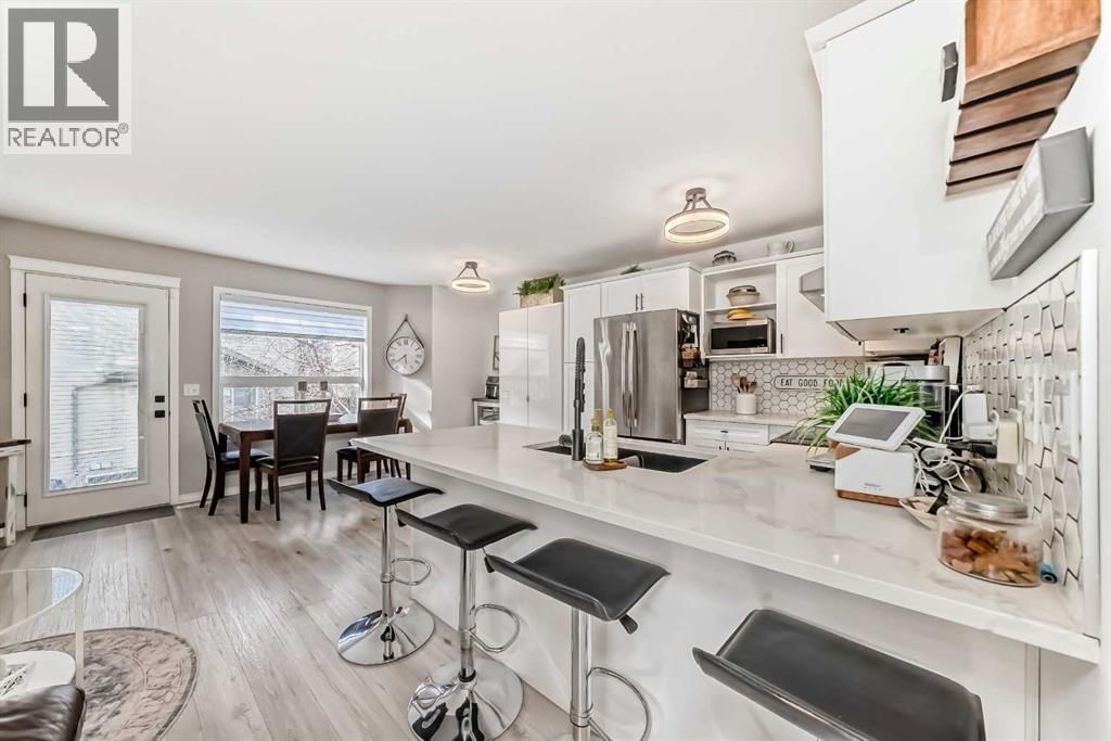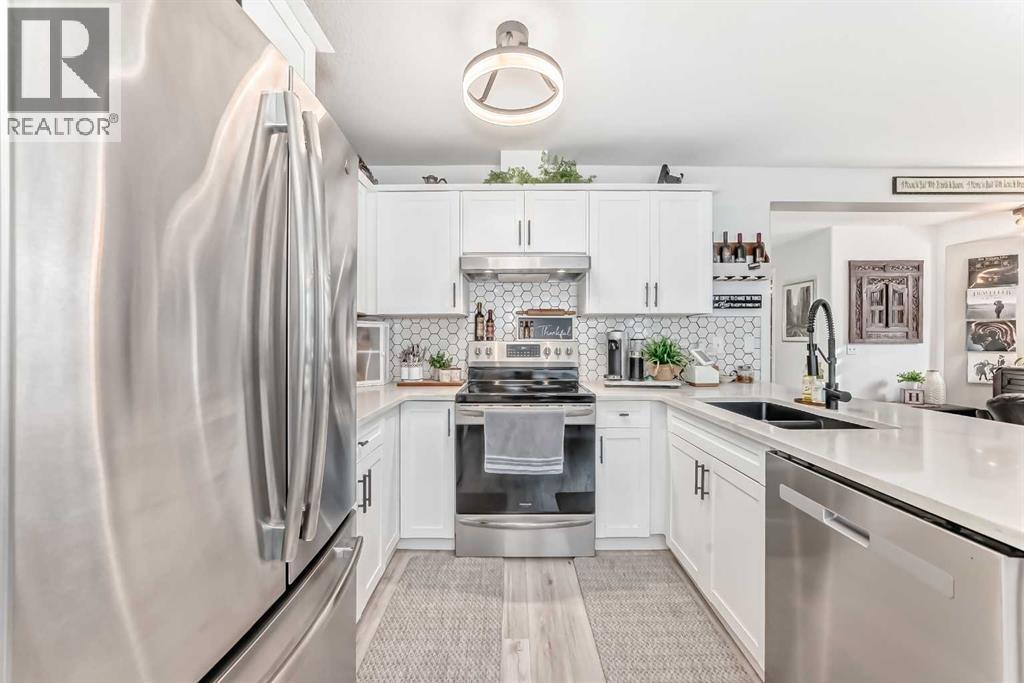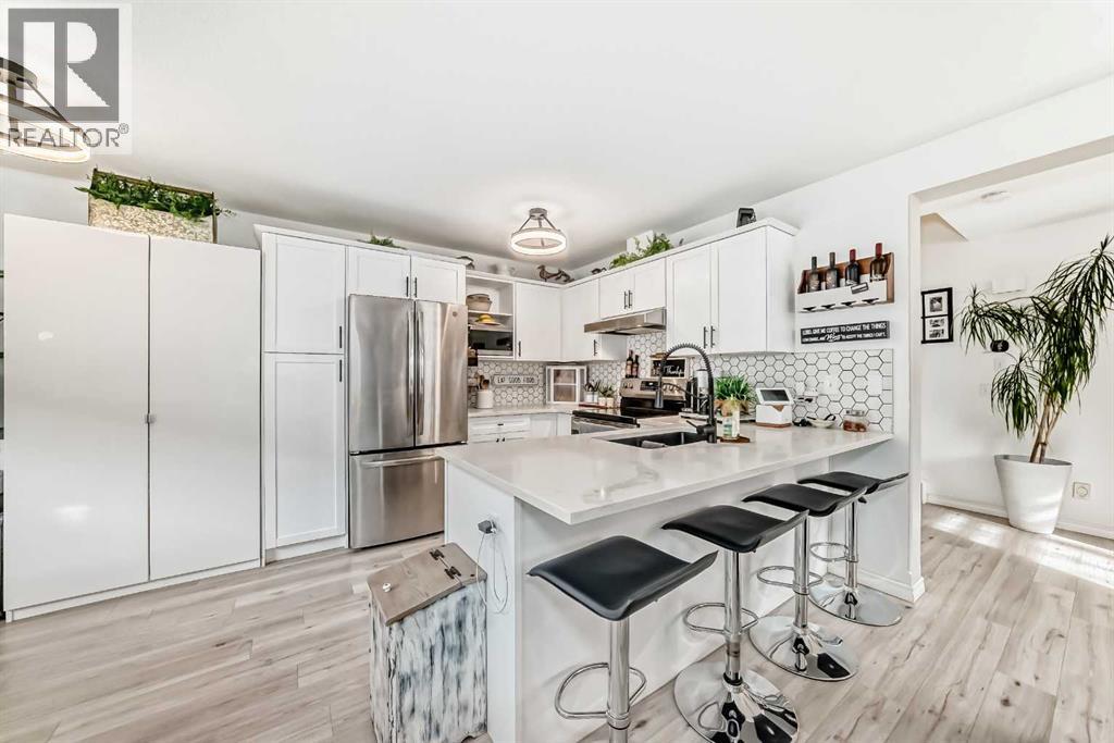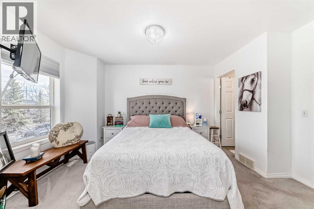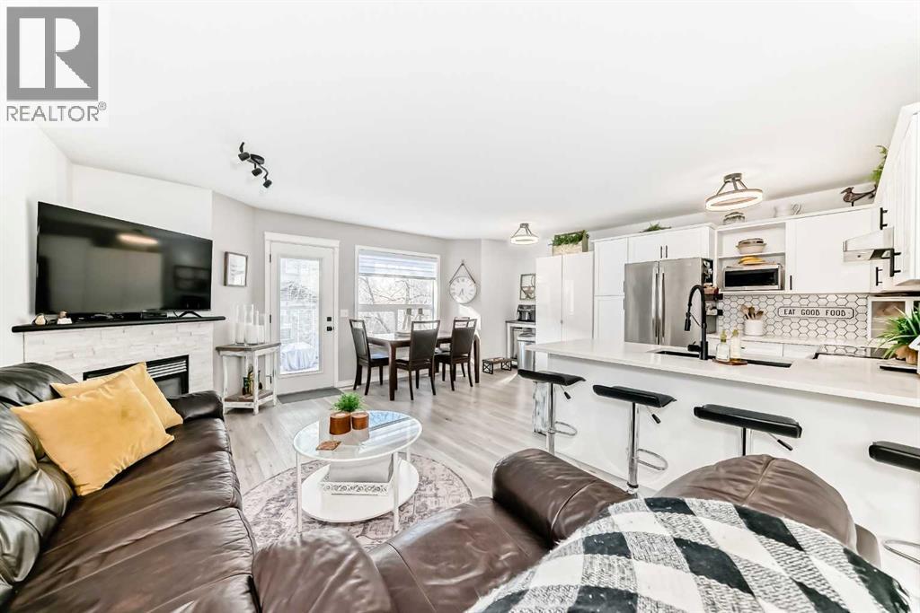 Beautiful, fully finished end-unit townhome with central A/C, thoughtfully maintained and beautifully presented. This bright and inviting home features 4 bedrooms and 3.5 bathrooms.The open-concept main floor showcases a bright kitchen with updated white cabinetry, quartz countertops, newer stainless steel appliances, a stylish tile backsplash, and a large pantry. The adjoining living room features a cozy corner gas fireplace, and durable LVP flooring runs throughout the main level. As an end unit, the home is filled with natural light from large south- and west-facing windows. You’ll also find a convenient powder room and direct access to the attached garage on this level.Step outside to a lovely west-facing patio with a gas hookup—perfect for BBQs and enjoying the evening sun.Upstairs, the spacious primary bedroom offers a 3-piece ensuite, double closets with ample storage, and a comfortable sitting area. Two additional generously sized bedrooms and a 4-piece bathroom complete the upper level.The fully finished basement adds even more living space, featuring a good-sized family room, a fourth bedroom with a large window and closet, a 4-piece bathroom, and a laundry room.All appliances are approximately 5 years old. Ideally located close to schools, shopping, and all the great amenities Okotoks has to offer. (id:51989)