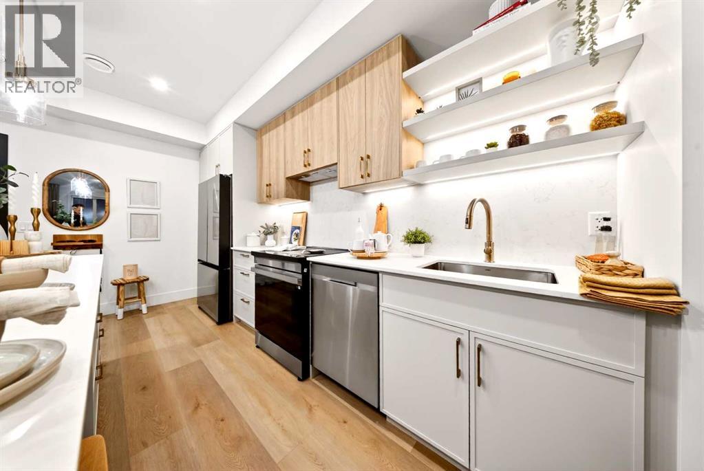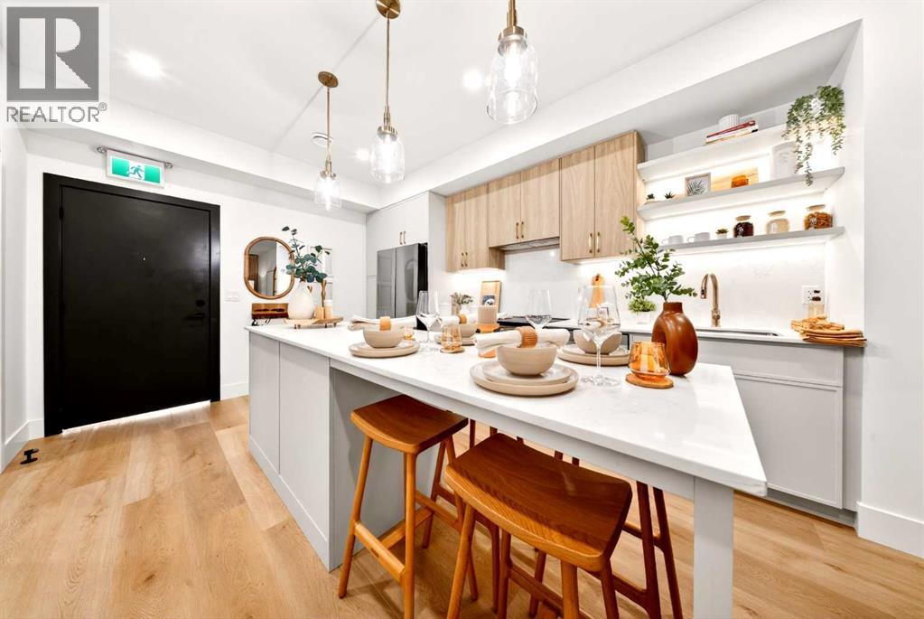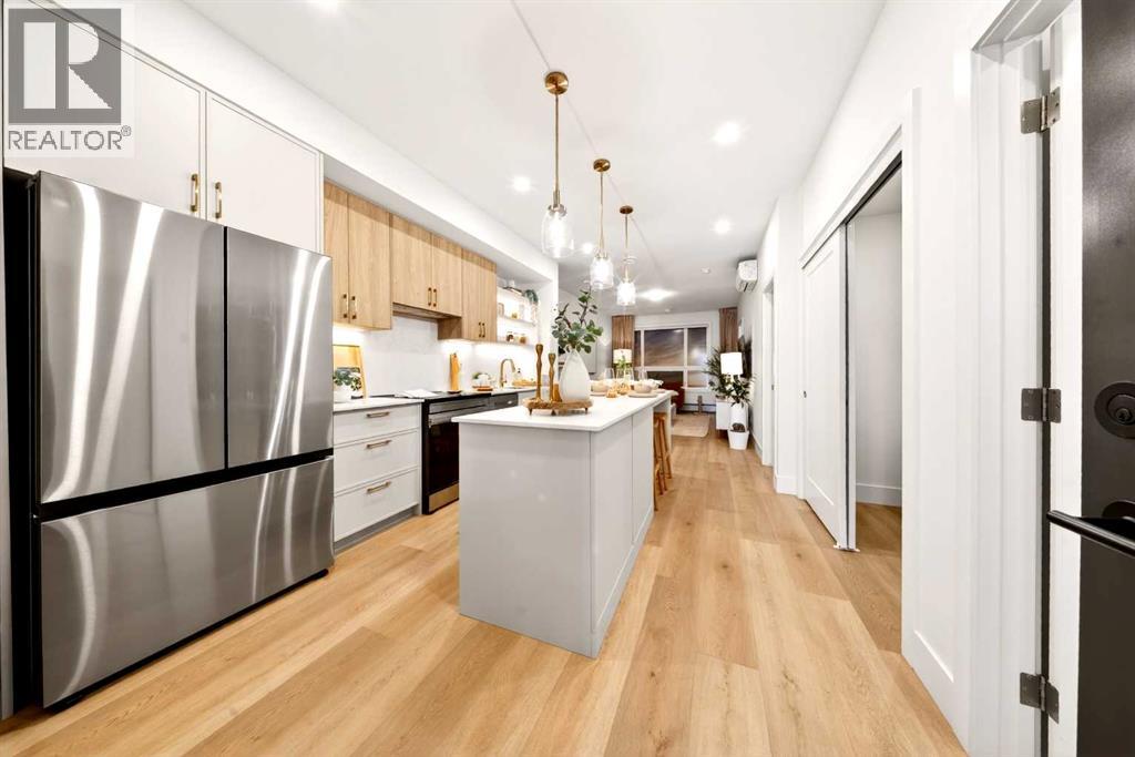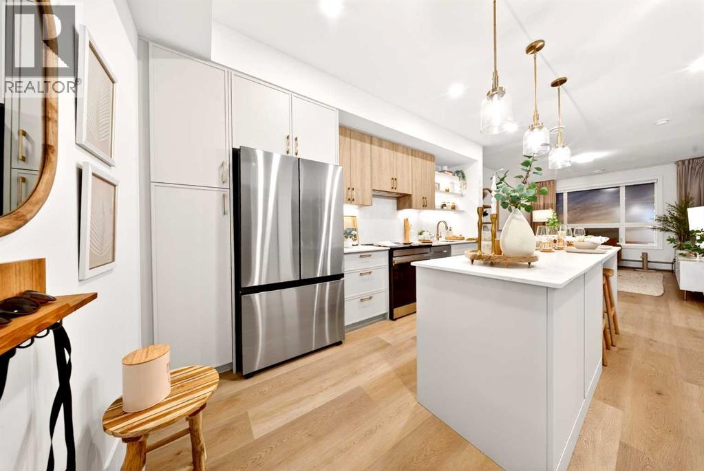 Welcome to Aspen Village by Vesta Properties! This is modern urban living in a thoughtfully designed 1-bedroom residence offering exceptional functionality, contemporary finishes, and a vibrant lifestyle setting. Featuring an open-concept layout, this home combines comfort and style with a spacious living area and designer kitchen ideal for everyday living and entertaining.The sleek kitchen showcases quartz countertops, full-height cabinetry, under-mount sinks, and a central island with pendant lighting. Energy-efficient stainless-steel appliances and smart-controlled stacked laundry provide both convenience and modern efficiency. Retreat to the well-appointed bedroom complete with a generous walk-in closet, while the elegant bathroom features clean modern detailing, quartz surfaces, and timeless fixtures. Durable luxury vinyl plank flooring flows throughout, complemented by curated interior palettes and contemporary ceiling finishes. Enjoy outdoor relaxation on your private balcony. Built with quality construction standards including triple-pane windows, engineered floor systems, and enhanced soundproofing, this home offers comfort, quiet, and energy efficiency.Residents will have the opportunity to join the member's only Aspen Club, a private amenity hub with collaborative workspaces, lounge areas, a state-of-the-art fitness centre and spin studio, yoga and games rooms, and beautifully designed rooftop gathering spaces. Plus, Aspen Village will feature an Urban Village with over 60,000 sq. ft. of retail and services. Residents will enjoy pedestrian-friendly streets lined with boutique shopping, cafés, dining, wellness studios, daycare, medical services, and everyday conveniences—creating a truly connected and vibrant community atmosphere.Ideally positioned close to transit, parks, shopping, and key lifestyle amenities, this residence presents an exceptional opportunity for first-time buyers, downsizers, or investors seeking long-term value in one of Calgary’ s most exciting emerging communities. Anticipated possession is scheduled for 2027. (id:51989)