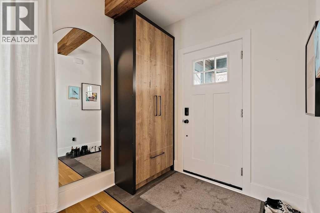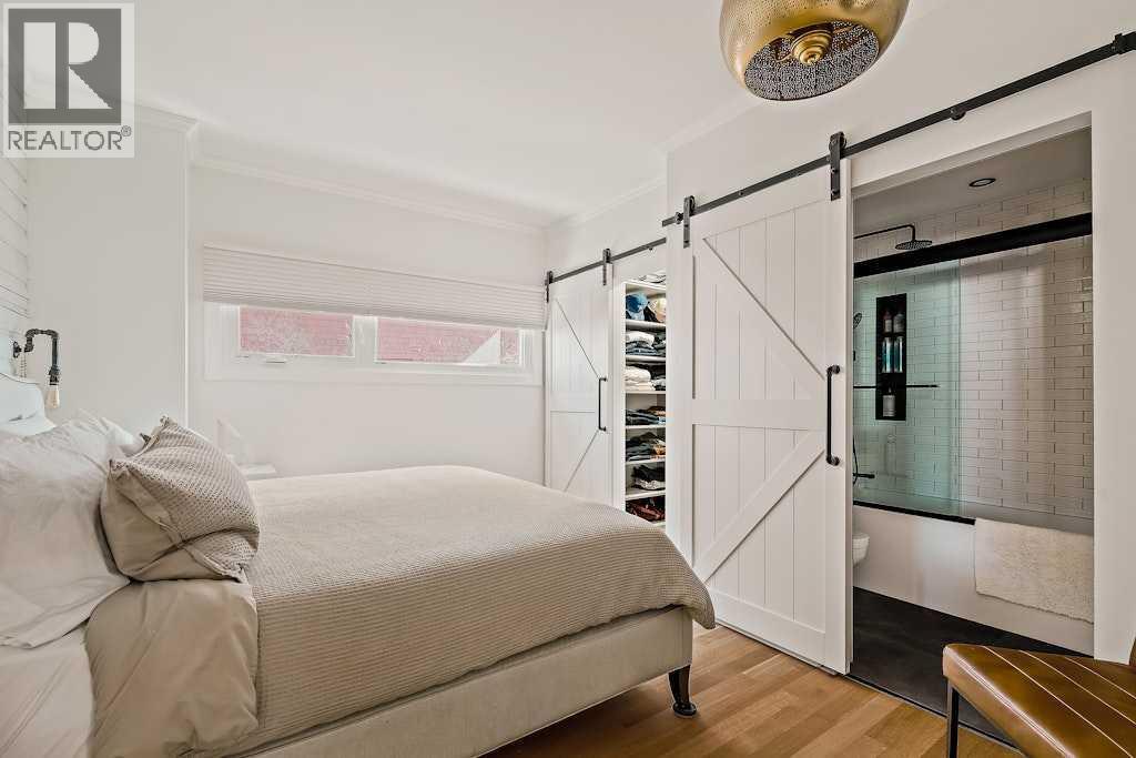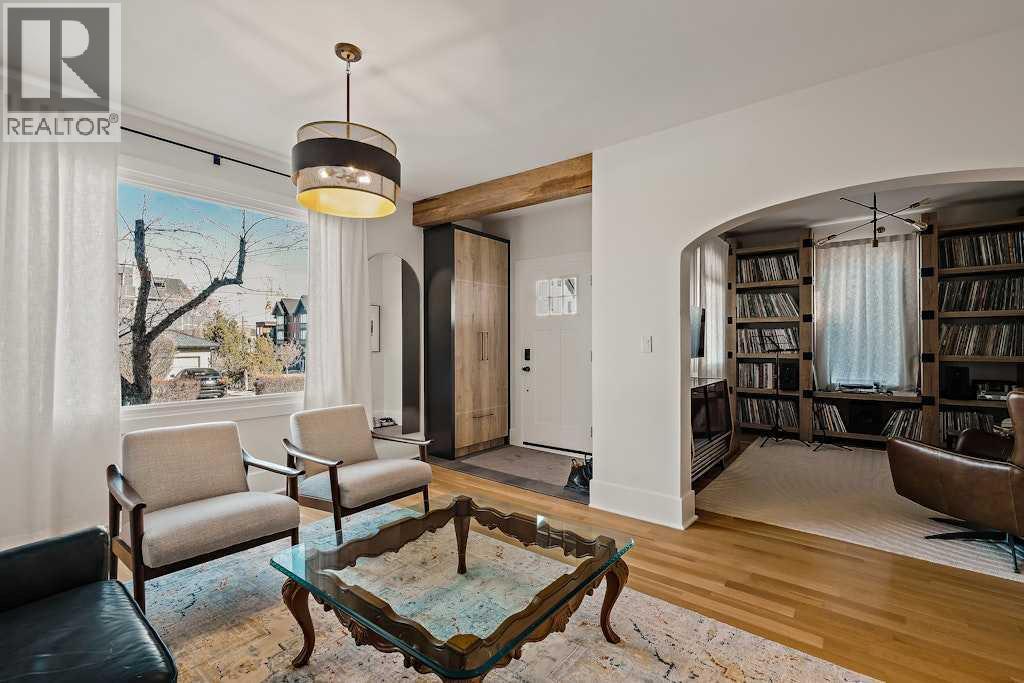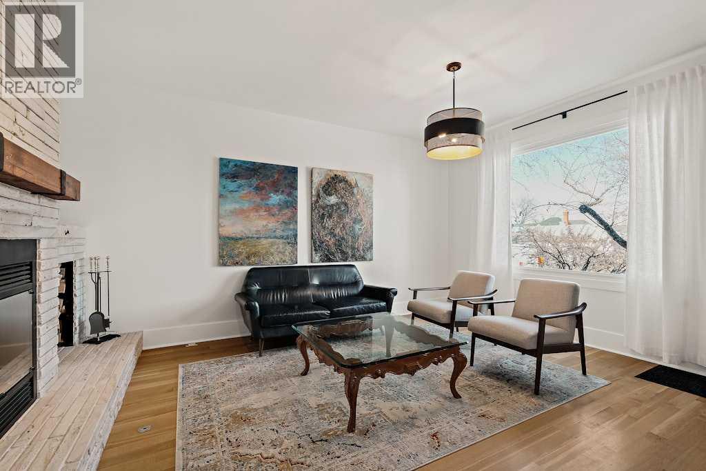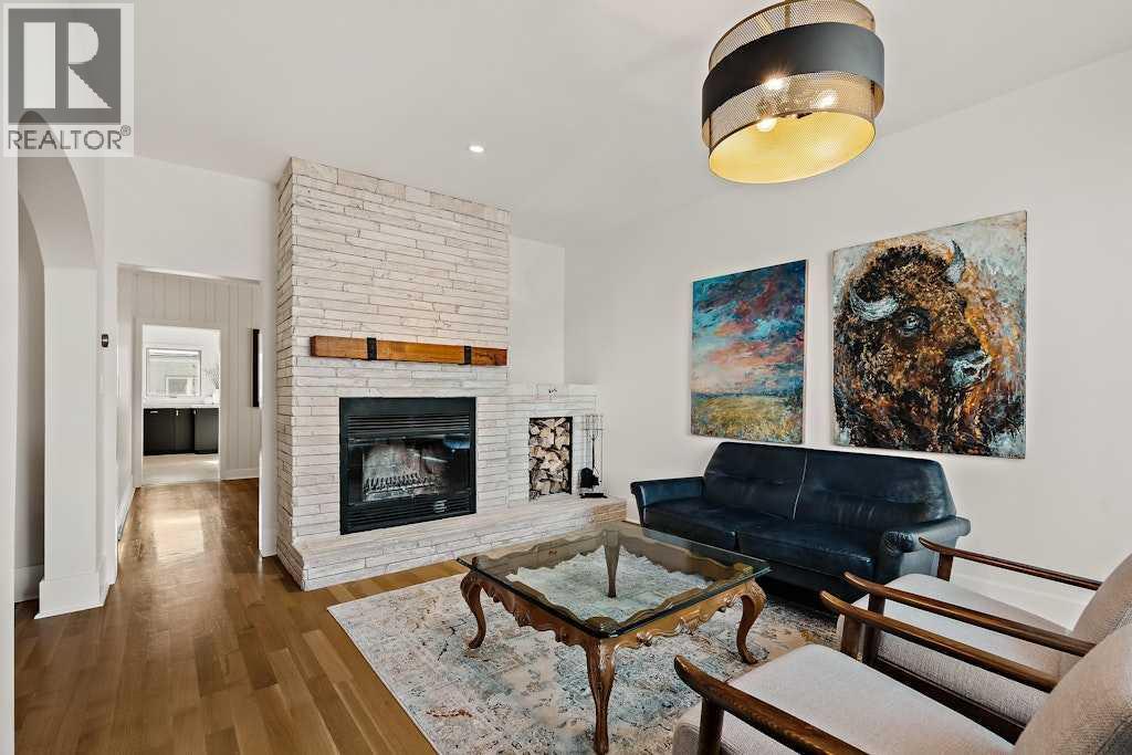 Updated character home in the heart of Bankview featuring a rare wood-burning fireplace, main-floor primary suite, and oversized double garage. All just minutes from the restaurants and energy of 17th Avenue.The covered Douglas fir front porch welcomes you into a home that balances original charm with thoughtful modern updates. Inside, the living room is anchored by a striking wood-burning fireplace finished with floor-to-ceiling stone and a custom mantle. Natural light highlights newly installed rift- and quarter-sawn white oak hardwood floors that run throughout most of the main level.One of the home’s most distinctive spaces is the dedicated vinyl listening lounge, perfect for relaxing with music or easily used as a quiet home office.The spacious dining area flows naturally into the kitchen, which features a gas stove, generous counter space, and excellent storage. Rare for a home of this era, the main floor also includes a true primary suite complete with walk-in closet and a fully renovated ensuite, allowing the home to comfortably live like a bungalow if desired.Just outside, the sunny south-facing deck creates a perfect outdoor retreat, complete with a nearly new hot tub and access to the oversized insulated double garage.The fully renovated basement offers full ceiling height and excellent additional living space, including a large recreation area ideal for entertaining, a home gym, or games room. You’ll also find an inviting bedroom with an egress window and another beautifully finished full bathroom.Upstairs are two additional spacious bedrooms along with a private half-bath.The elevated front yard is fully fenced and planted with low-maintenance micro-clover, creating a practical and pet-friendly outdoor space.Major upgrades include a new sewer and water line, hot water tank, water softener, many updated windows, a new front door, fresh paint, updated lighting, and a Nest thermostat.Located in one of Calgary’s most walkable inner-city ne ighbourhoods with easy access to downtown, parks, and the shops and restaurants of 17th Avenue, this move-in ready home offers the perfect balance of historic character and modern comfort. (id:51989)