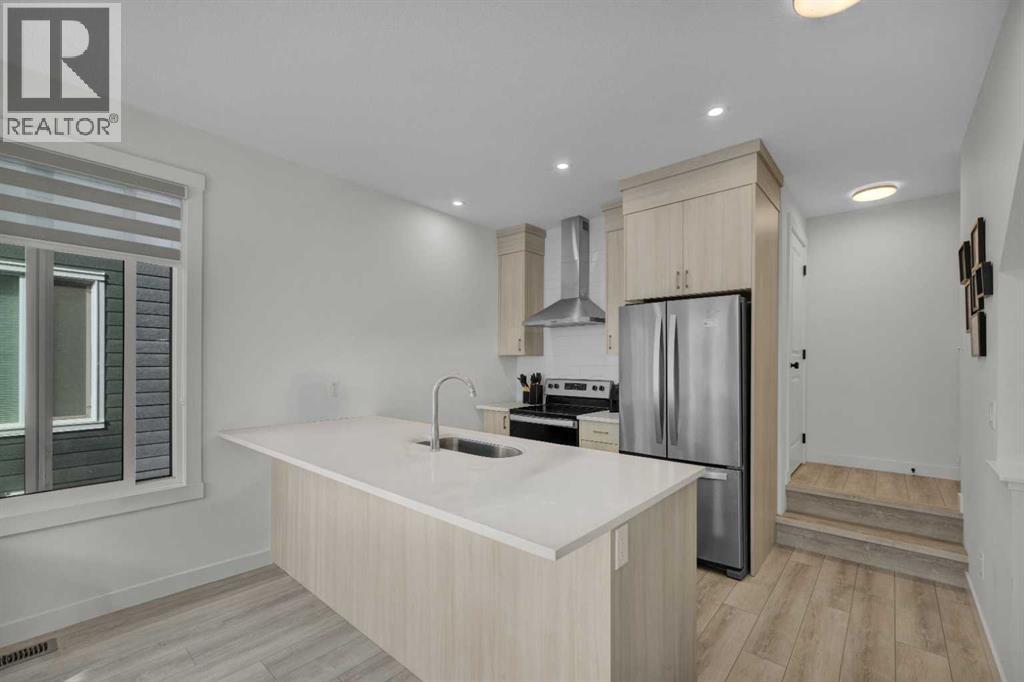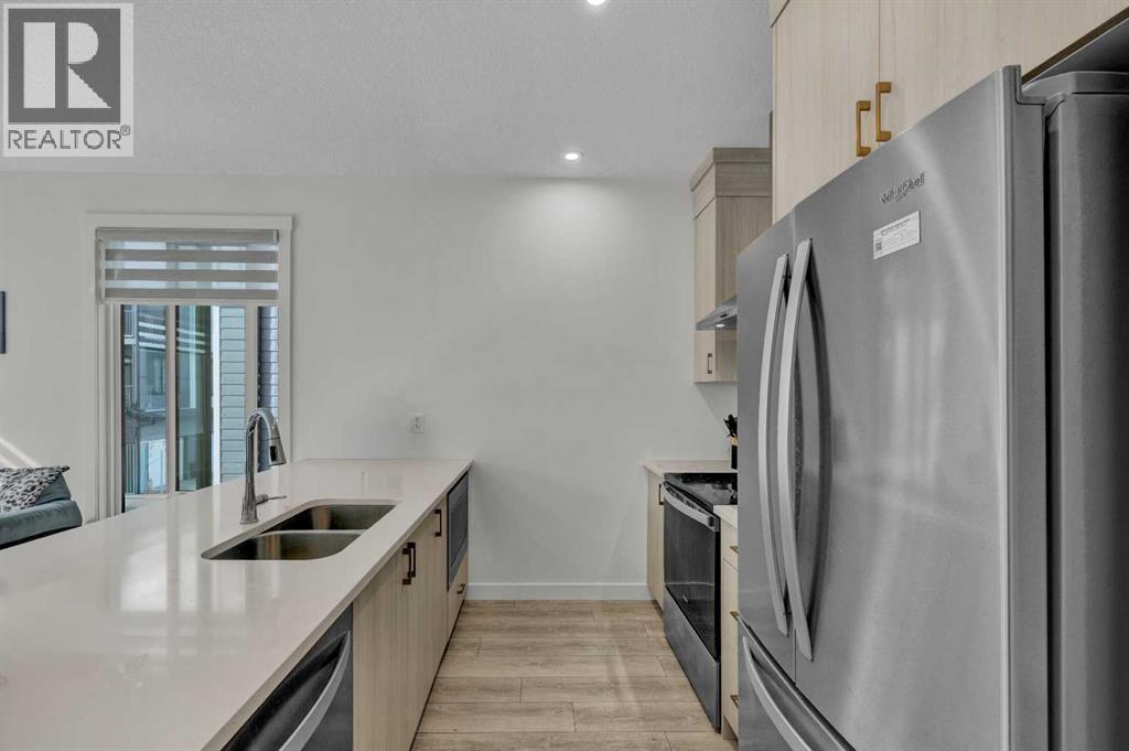 Welcome to this stunning, Hardieboard-clad end-unit in the award-winning community of Seton. Bathed in natural light from additional windows, this home perfectly balances elevated design with everyday practicality. Sophisticated Main Level: The open-concept main floor features 9-ft textured ceilings and massive 8-ft West-facing windows that flood the space with afternoon sun. The chef-inspired kitchen is a true standout, boasting:•Floor-to-ceiling cabinetry and sleek quartz countertops.•Premium stainless steel appliances with a designer chimney hood fan.•An expansive island with seating—the social heart of the home.Dual-Primary Retreat: The upper level is designed for ultimate privacy, featuring two spacious bedrooms, each with its own private ensuite. This layout is a rare find, perfect for roommates, guests, or young families. For maximum convenience, the laundry is located on the same level as the bedrooms.Premium Finishes & Features•Zero Carpet: Durable Luxury Vinyl Plank (LVP) flows throughout the home, paired with elegant ceramic tile in the bathrooms.•Designer Privacy: High-end zebra blinds are already installed on all windows.•The "Big" Garage: The oversized (15' x 20') attached garage features a wider 9-ft door and ample room for storage.The Seton Advantage: Step outside and enjoy unparalleled walkability. You are minutes from the Seton YMCA, South Health Campus, Superstore, and the Cineplex VIP cinema. With Joane Cardinal Schubert High School nearby and easy access to Deerfoot and Stoney Trails, this home offers the ultimate urban-suburban lifestyle. (id:51989)