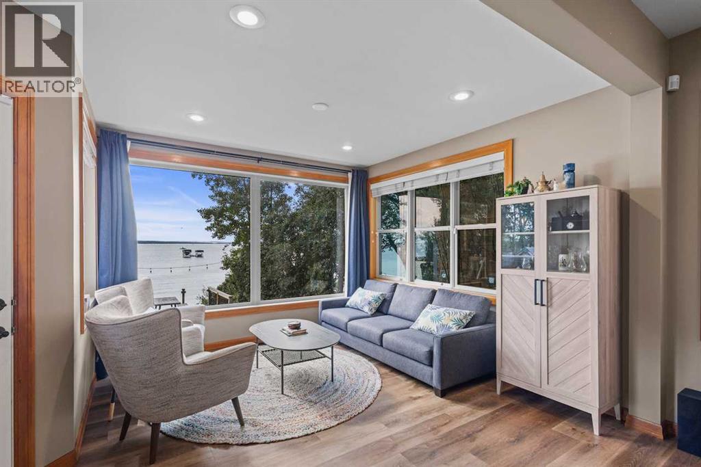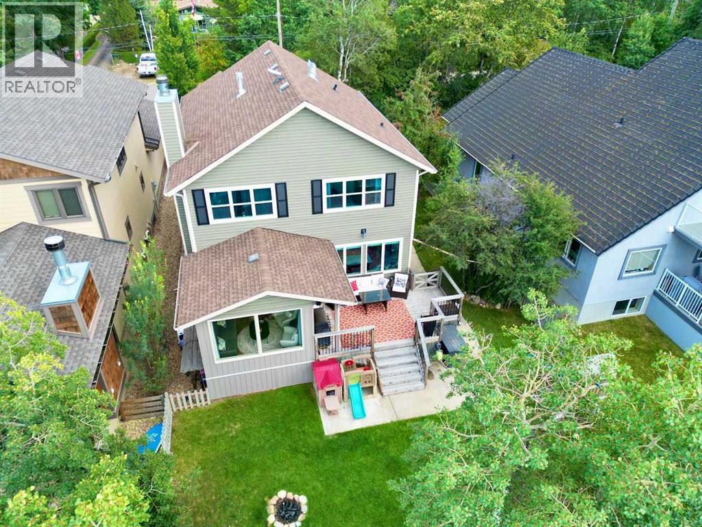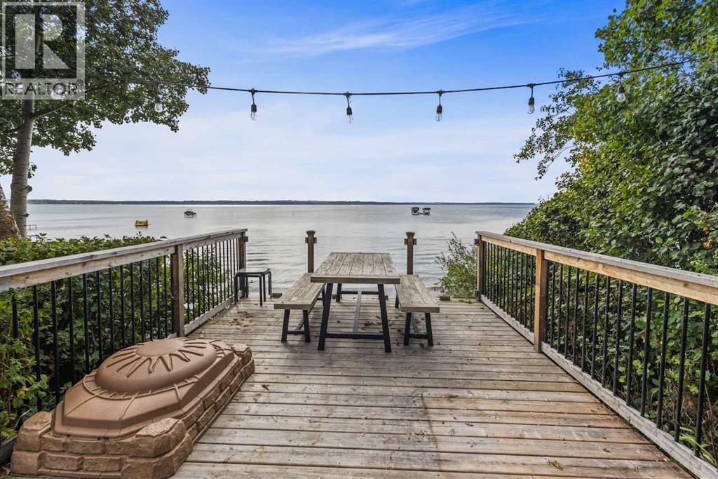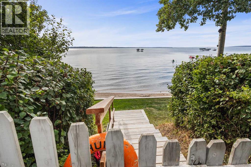 50 Feet of sandy lakefront on the shores of Jarvis Bay. Enjoy breathtaking sunsets, fishing, boating, swimming, snowmobiling, quadding, and make the family memories unforgettable! This Bowood built home has had many updates and it shows! Bright open great room with large windows, wood fireplace(wett certified), expansive island with quartz tops, durable high quality plank flooring, high ceilings, main floor laundry, and a great deck for catching some rays. Upstairs has 4 bedrooms and 2 baths providing room for family and guests. Fully finished basement has acid stained concrete floors with slab heating, another bedroom, a den and an oversized rec/games room. Raspberries and Saskatoons are abundant on this property! Also just a short 10 minute bike ride on paved paths or a nice walk into all the amenities of Sylvan Lake! Don't wait too long to view this beautiful lakefront home! This home has been pre inspected and that is available to any buyer. Wood fireplace has been WETT inspected. (id:51989)