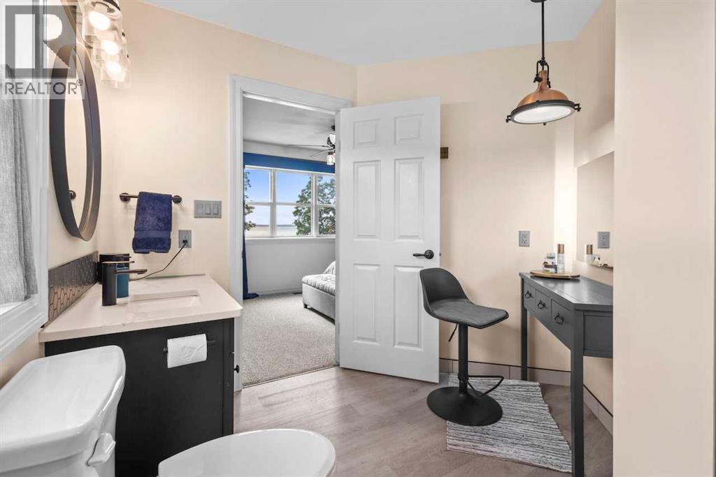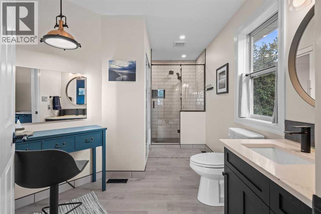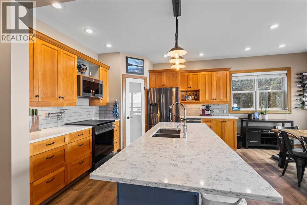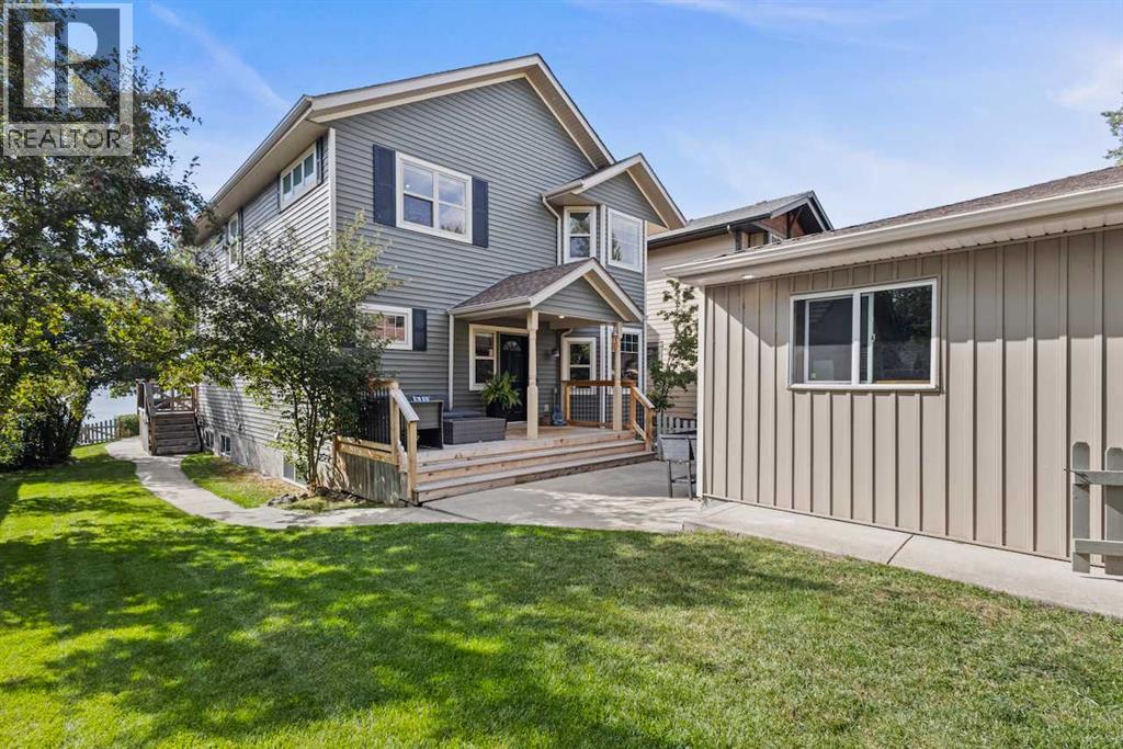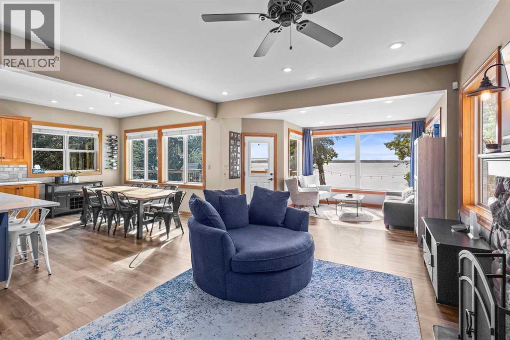 50 Feet of sandy lakefront on the shores of Jarvis Bay. Enjoy breathtaking sunsets, fishing, boating, swimming, snowmobiling, quadding, and make the family memories unforgettable! This Bowood built home has had many updates and it shows! Bright open great room with large windows, wood fireplace(wett certified), expansive island with quartz tops, durable high quality plank flooring, high ceilings, main floor laundry, and a great deck for catching some rays. Upstairs has 4 bedrooms and 2 baths providing room for family and guests. Fully finished basement has acid stained concrete floors with slab heating, another bedroom, a den and an oversized rec/games room. Raspberries and Saskatoons are abundant on this property! Also just a short 10 minute bike ride on paved paths or a nice walk into all the amenities of Sylvan Lake! Don't wait too long to view this beautiful lakefront home! This home has been pre inspected and that is available to any buyer. Wood fireplace has been WETT inspected. (id:51989)