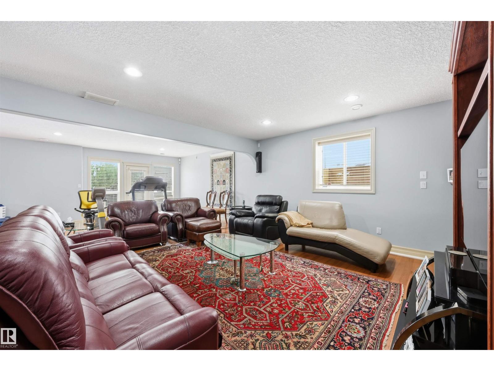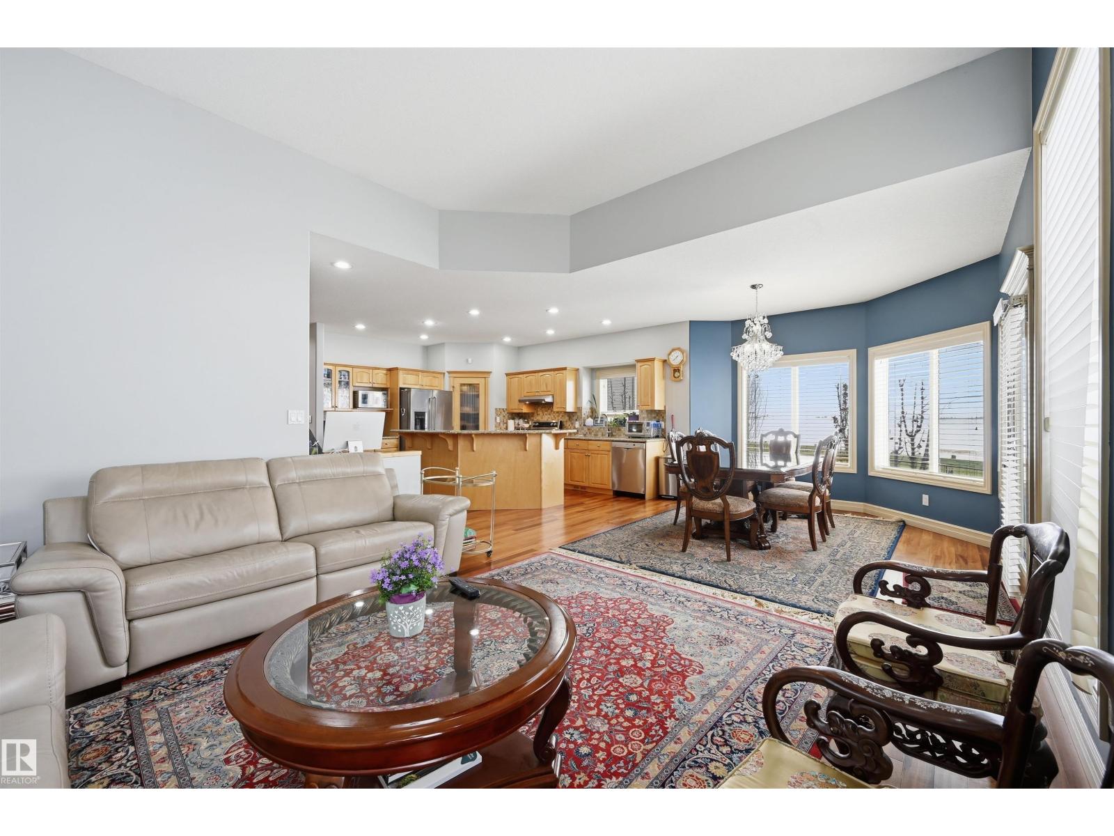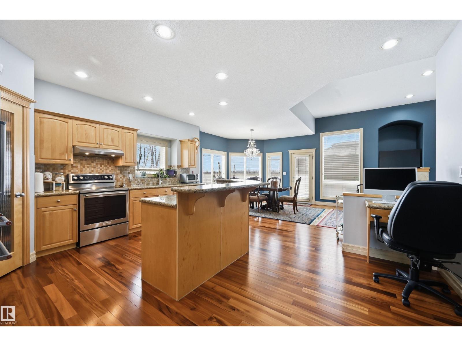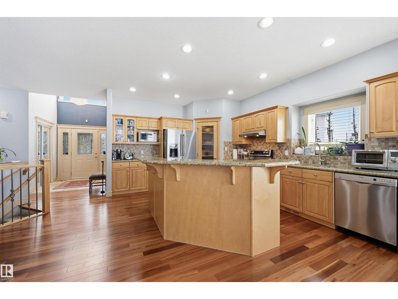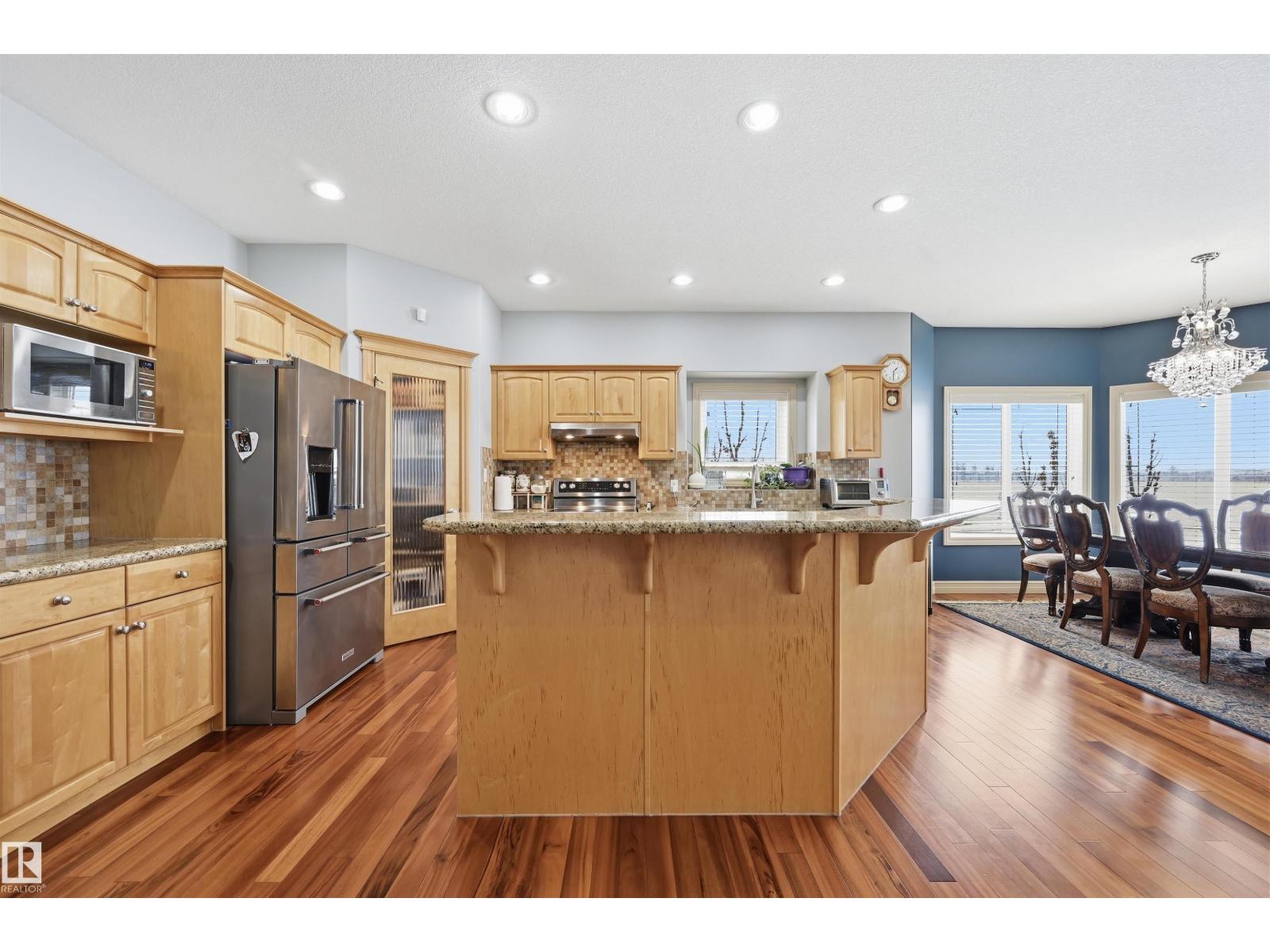 EXCEPTIONAL WALK OUT LUXURY 4 bedrm bungalow. Backing to a DRY POND & treed green space nestled in a cul de sac in the popular neighborhood of Riverside. Approx 3500 sf of luxury living space (1811 sf above grade). Open sunny plan is perfect for entertaining & family gatherings. Soaring 11/9 ft ceilings add to the airiness of this cheery home. Gourmet Chef’s kitchen w/granite counters, NEWER S/S appliances & large W/I pantry. Brazilian hardwood & tile flooring adorns much of the main. Main floor features a FLEX (dining/den) rm w/French drs, laundry & RARE second bedroom/ full bathrm. Spacious primary bedrm w/luxurious ensuite. Lower level has newer flooring, IN FLOOR heating, 2 large bedrms, games area w/wetbar, B/I entertainment centre, 2nd FP & a 3rd full bathrm (upg w/quartz). 9 ft ceilings, upgraded humidifier, BBQ gas line, A/C 2024, U/G sprinklers, newer H20 tank, $20K gazebo, HEATED O/S garage w/epoxy floors. West facing 7500 sf pie yard w/fruit trees. Access to Rec Centre & multiple schools & EIA (id:51989)
