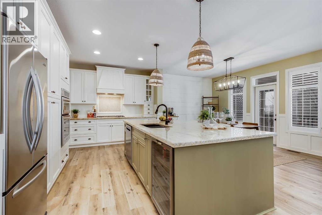 Presenting 153 Cranridge Terrace SE, a beautifully updated two-storey home offering 2,520.83 sq ft above grade and located across from a green space and park in the highly desirable community of Cranston. The attractive stucco exterior and inviting front entrance lead into a bright open-concept main floor featuring 9-foot ceilings, elegant wainscoting throughout, and durable luxury vinyl plank flooring. The heart of the home is the updated kitchen, showcasing a massive island with built-in appliances, abundant cabinetry, and plenty of prep space—perfect for both everyday living and entertaining. The spacious living room is anchored by a beautiful stone gas fireplace with a mantle, creating a warm and inviting focal point for relaxing evenings or gathering with family and friends. The dining and living areas flow seamlessly together, while a main floor home office offers a quiet and functional workspace. Upstairs you’ll find three generously sized bedrooms and two full bathrooms, including a spacious primary retreat featuring a practical 5-piece ensuite. A large bonus room with vaulted ceilings provides an ideal space for a family lounge, media room, or play area, and the convenience of an upstairs laundry room makes day-to-day living even easier. The fully finished basement expands the living space with an additional bedroom, full bathroom, den, and a large recreation room, offering excellent flexibility for guests, extended family, or additional entertainment space. Comfort is further enhanced with air conditioning and luxury vinyl plank flooring continuing into the basement. Outside, the private low maintenance backyard is designed for low-maintenance enjoyment and features a pergola, fire pit area, and hot tub—perfect for relaxing or hosting gatherings. The home also includes an oversized heated garage complete with durable epoxy flooring, providing plenty of space for vehicles, storage, or a workshop. Located near schools, shopping amenities, Stoney Trail, and t he South Health Campus Hospital, this property also offers quick access to Cranston’s extensive walking paths and the scenic Bow River ridge. Combining generous living space, thoughtful upgrades, and a prime location in one of Calgary’s most sought-after family communities, this home is an exceptional opportunity. (id:51989)