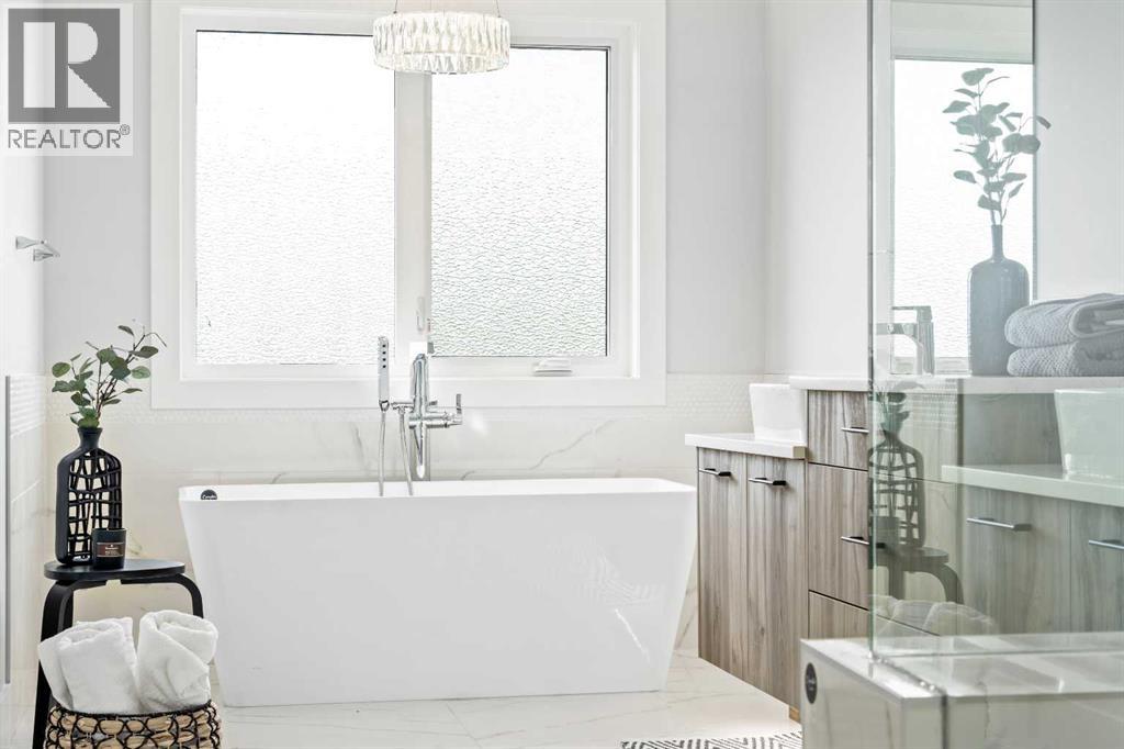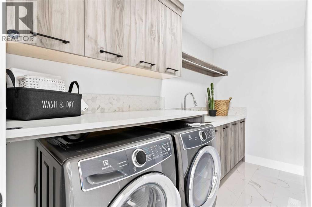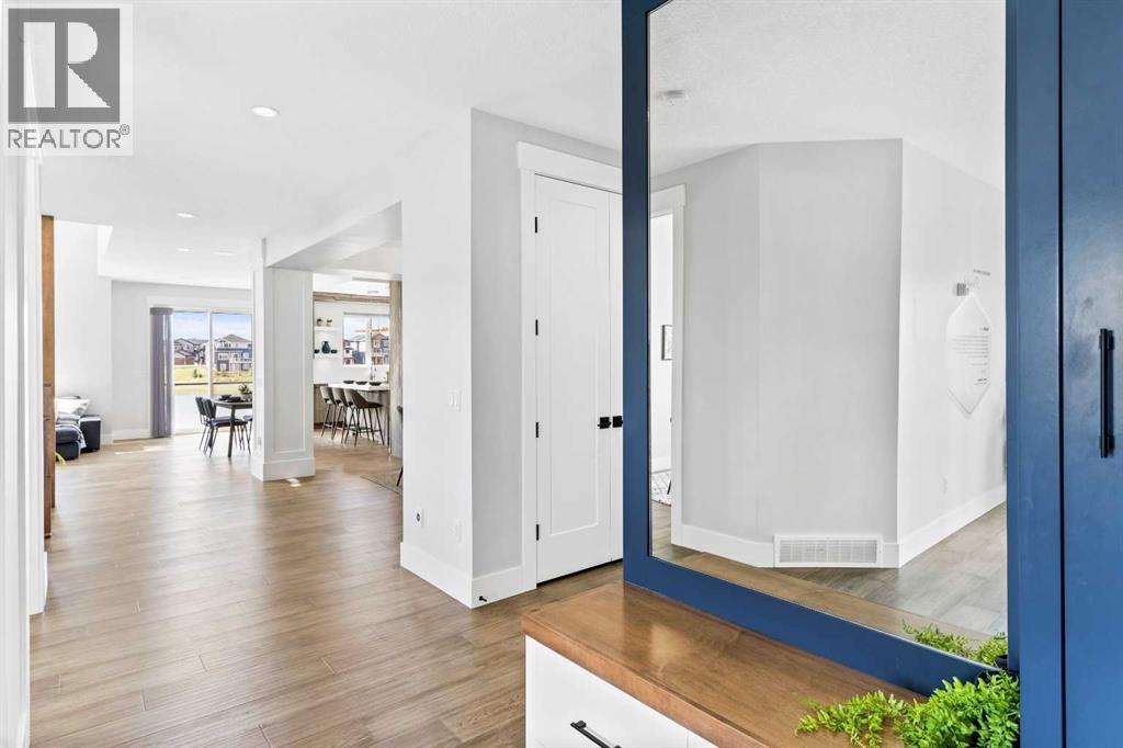 This home is currently under construction. Photos are for representation purposes only and are not of the actual property. Finishes, features, and specifications may vary.Welcome to a beautifully designed home that blends architectural drama with modern sophistication, featuring a triple car garage and a thoughtfully curated interior loaded with premium upgrades.The main and upper floors offer four bedrooms and three-and-a-half bathrooms, ideal for families seeking both space and functionality. The home impresses immediately with an open-to-below living room and an open-to-above bonus room, creating a striking sense of volume, light, and connection between levels. A cedar and oak upgrade package, paired with black and chrome hardware throughout, adds warmth and contemporary contrast, while an enhanced lighting package ensures the home feels bright and inviting at every turn.The main floor is finished with hardwood flooring and hardwood vents, complemented by 9-foot ceilings and 8-foot doors for a clean, upscale feel. The dream kitchen is a standout, featuring custom cabinetry, quartz countertops, a built-in wall oven and microwave, gas cooktop, oversized fridge/freezer, and dishwasher. A large island with eating bar is highlighted by a dramatic ceiling detail, while the walk-through pantry with MDF shelving and butler’s pantry add exceptional storage and functionality. The family room is anchored by a gas fireplace, creating a warm and welcoming gathering space. A mudroom with built-in bench and hooks completes the main level with everyday convenience.Upstairs, the layout is thoughtfully designed with four bedrooms, three bathrooms, a dedicated laundry room, and a spacious bonus room with tray ceiling. The primary suite offers a private retreat, featuring a tray ceiling, walk-in closet with MDF shelving, and a well-appointed ensuite with double vanity, soaker tub, and a fully tiled shower with bench and glass enclosure. Secondary bedrooms are generously size d, with convenient access to full bathrooms. Plush carpet throughout the bedrooms and upper-level living areas enhances comfort, while the laundry room with sink and base cabinetry adds practicality.The undeveloped basement provides a blank canvas for future customization—ideal for a recreation space, home gym, or additional living area tailored to your needs.Outside, the home is finished with a modern mix of fiber cement siding and smooth panel detailing, along with a rear deck perfect for enjoying the outdoors.Architecturally striking, thoughtfully upgraded, and designed for modern living—this home offers comfort, style, and long-term value in every detail. (id:51989)