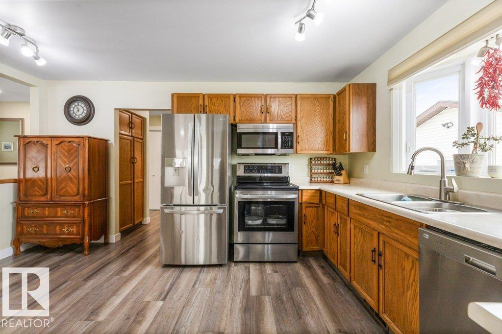 Spacious FIVE BEDROOM, THREE FULL BATH home located on a quiet street in Lorelei. This home has an spacious open concept living, dining & kitchen area. The living room has a tile faced W/B fireplace along with 2 large windows. The kitchen provides good work & storage space along with a window overlooking the back yard. The primary bedroom comes complete with a walk in closet & 3 piece en-suite bath. There are two more well sized bedrooms on the main floor along with a newer 4 piece bath servicing them. The modern basement offers 2 more spacious bedrooms both with egress windows, a large family room, 4 piece bath, laundry/mechanical room & a large storage room. The entire home has luxury vinyl plank throughout. Outside you will find a fully fenced yard with fruit trees, garden & a double detached garage. There are numerous updates including, triple pane windows throughout, multi point lock exterior doors, permitted basement development, 3 fully updated baths, new HWT, sump, back water valve & much more! (id:51989)