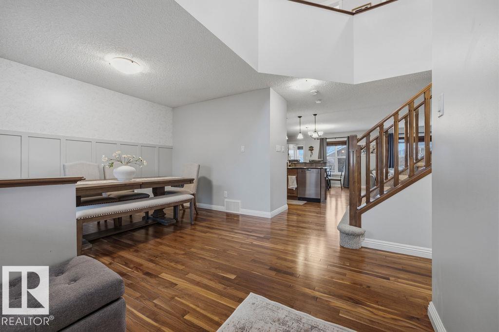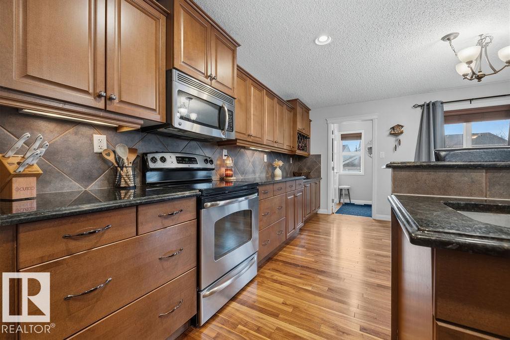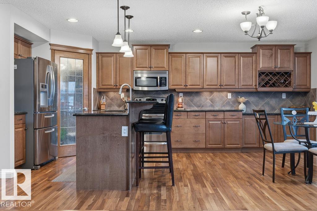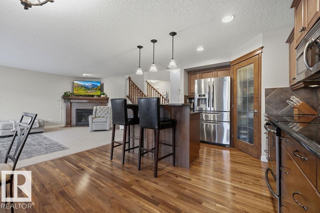 Welcome to the coveted community of Griesbach! This spacious 2-storey home offers 5 bedrooms and 4 full baths. Features include a dramatic vaulted foyer, front flex room, hardwood flooring, and a bright loft-style bonus room with dormer windows open to below. The main floor offers a large living room with gas fireplace, open dining area, and a modern kitchen with stainless steel appliances, granite countertops, island with eating bar, and corner pantry. Upstairs, the primary bedroom includes a 4-pc ensuite and walk-in closet. The fully finished basement provides 2 additional bedrooms, a large family room, and a 4-pc bath. Enjoy low-maintenance landscaping with an expansive brick patio. Double detached garage with lane access plus extra parking for a third vehicle or small RV. Recent upgrades ***include new shingles and central air conditioning. Excellent location near schools, shopping, parks, and quick access to Downtown and the Anthony Henday (id:51989)