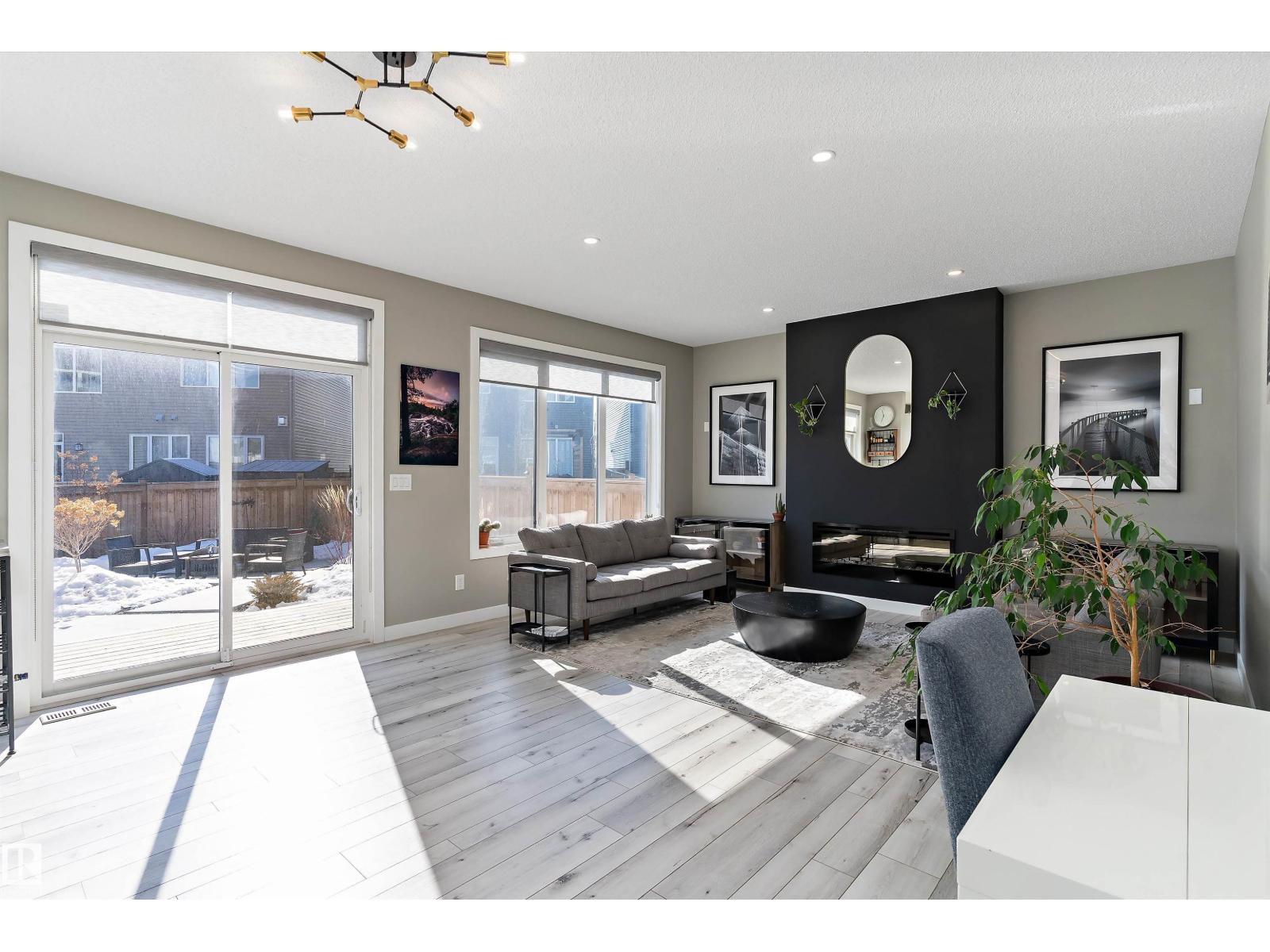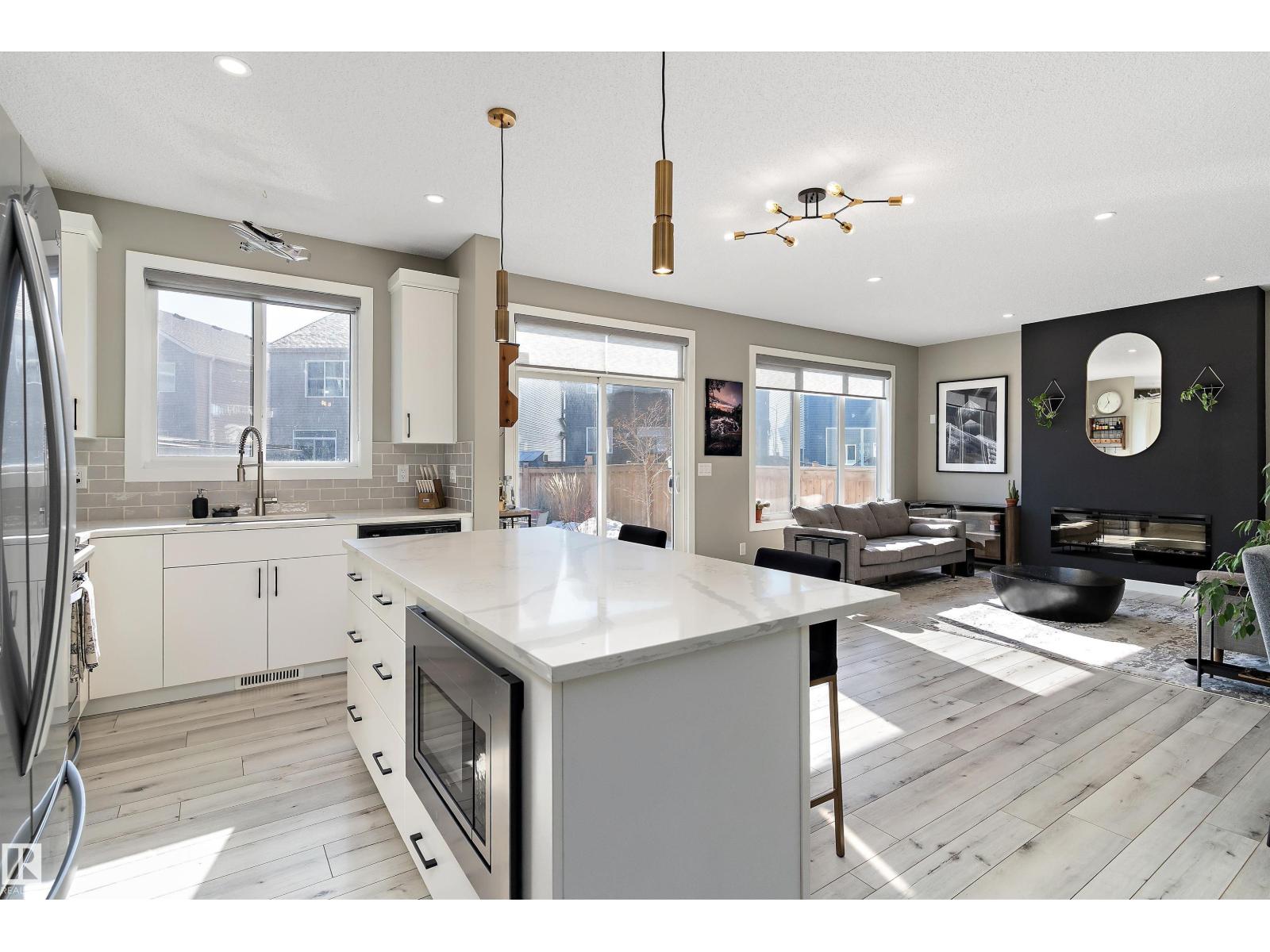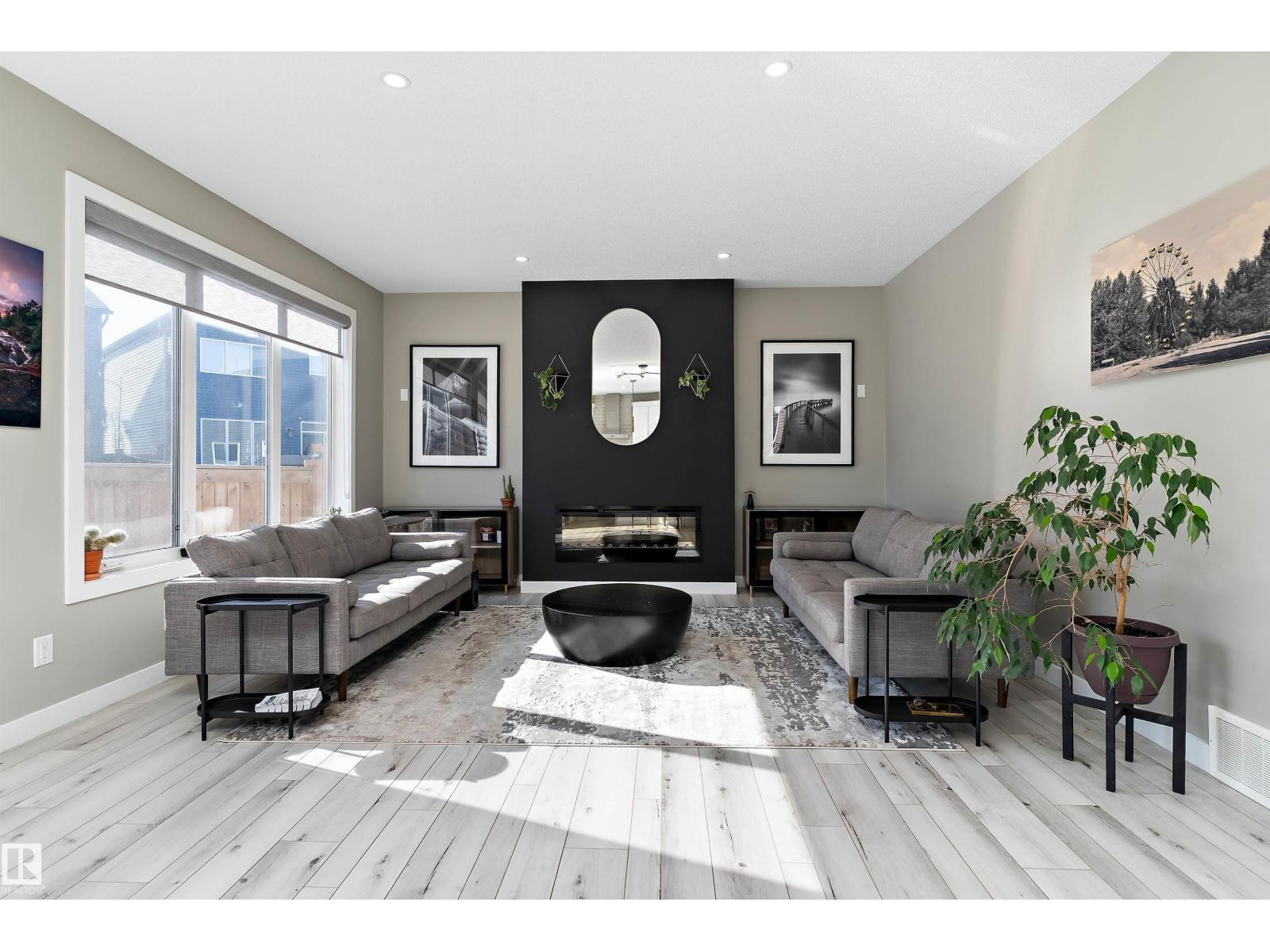 Welcome to this beautifully upgraded home in the family-friendly community of Stillwater! Located on a quiet cul-de-sac and situated on a desirable pie lot, this home offers the feel of a brand-new build with all the post move-in upgrades already complete. The bright, modern main floor features stylish vinyl plank flooring, pot lights, and an open-concept layout filled with natural light. The stunning white kitchen offers upgraded cabinetry, a modern sink, and plenty of space for entertaining, flowing into the dining and living area with a cozy electric fireplace. A convenient half bath and garage access complete the main level. Upstairs you’ll find a spacious bonus room, laundry, a full bath, and 3 bedrooms including a generous primary retreat with a walk-in closet and a luxurious ensuite featuring a full glass shower with dual shower heads and tile surround. Located just minutes from shopping, amenities, and Anthony Henday access, this move-in-ready home is the perfect for families. (id:51989)