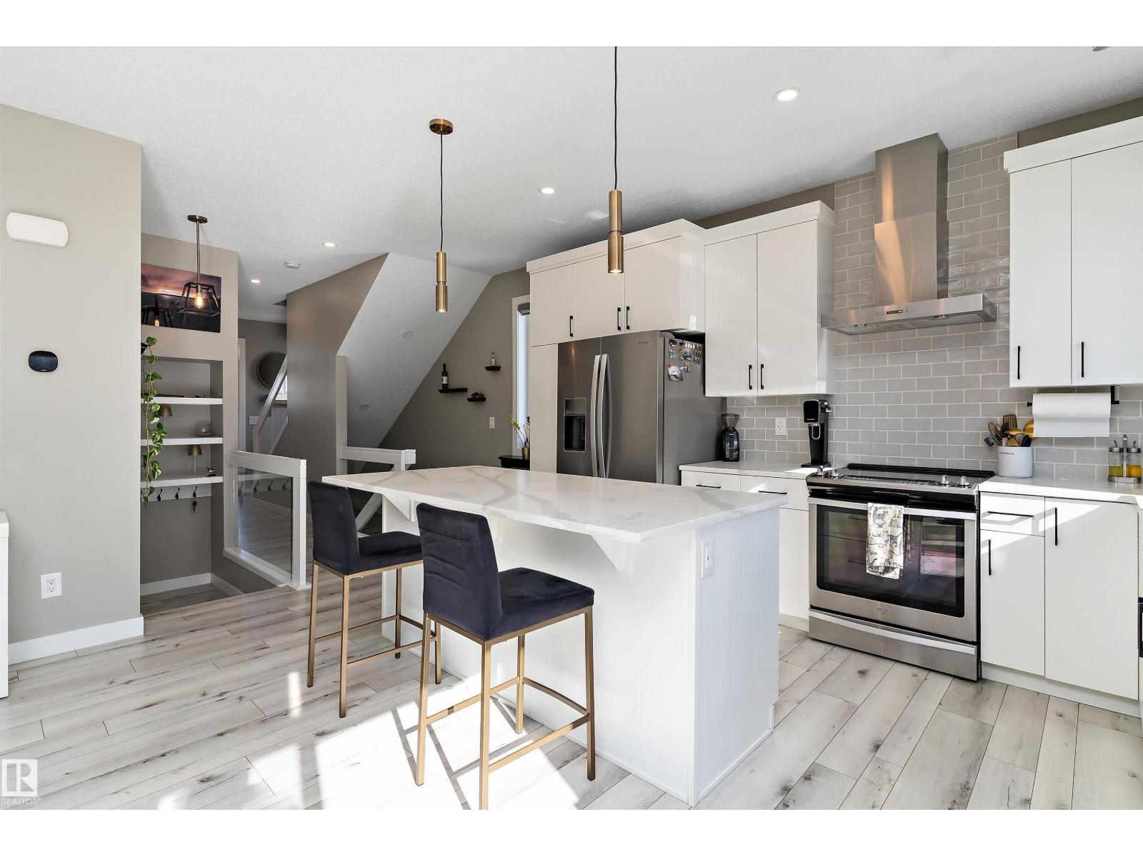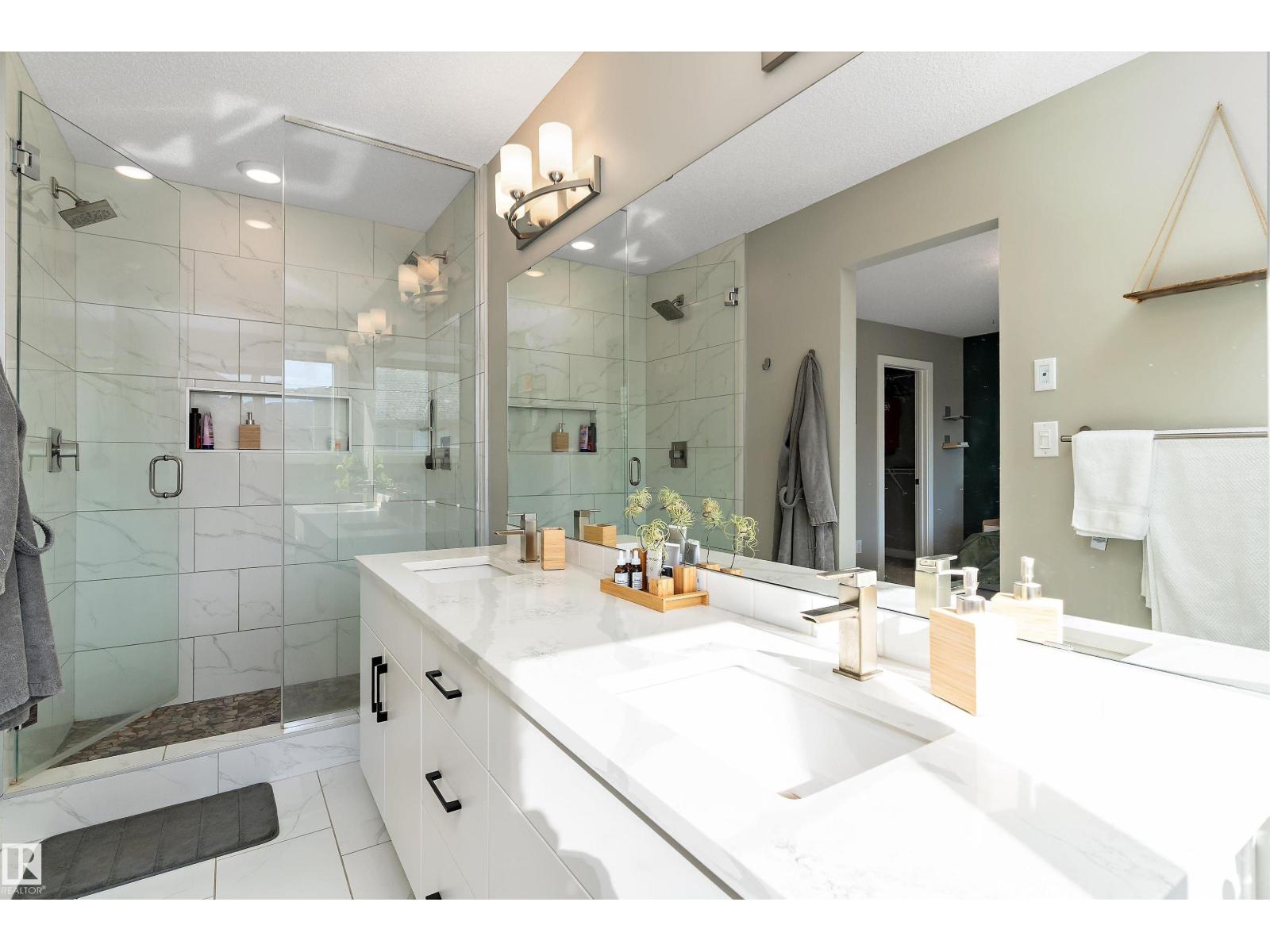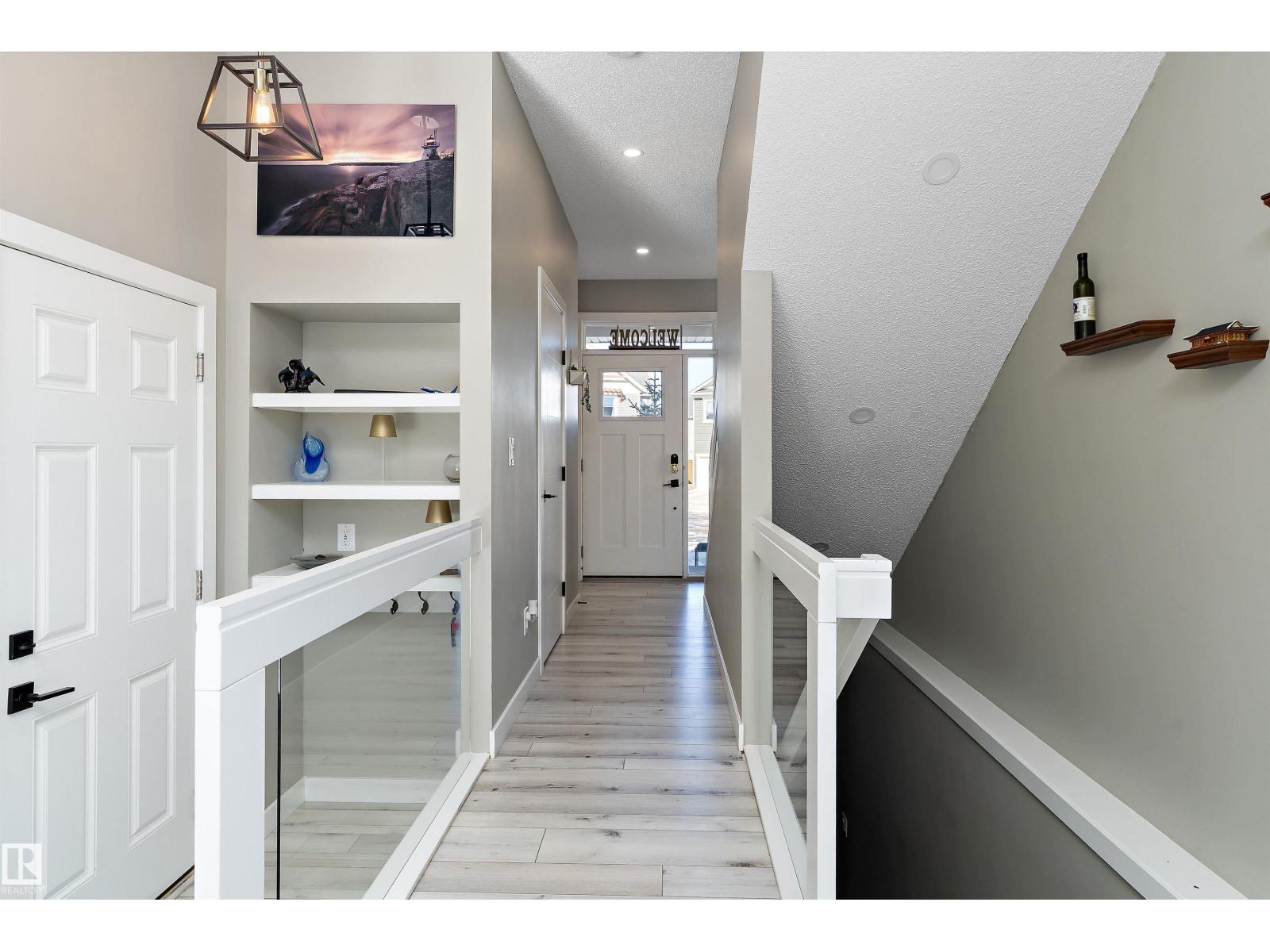 Welcome to this beautifully upgraded home in the family-friendly community of Stillwater! Located on a quiet cul-de-sac and situated on a desirable pie lot, this home offers the feel of a brand-new build with all the post move-in upgrades already complete. The bright, modern main floor features stylish vinyl plank flooring, pot lights, and an open-concept layout filled with natural light. The stunning white kitchen offers upgraded cabinetry, a modern sink, and plenty of space for entertaining, flowing into the dining and living area with a cozy electric fireplace. A convenient half bath and garage access complete the main level. Upstairs you’ll find a spacious bonus room, laundry, a full bath, and 3 bedrooms including a generous primary retreat with a walk-in closet and a luxurious ensuite featuring a full glass shower with dual shower heads and tile surround. Located just minutes from shopping, amenities, and Anthony Henday access, this move-in-ready home is the perfect for families. (id:51989)