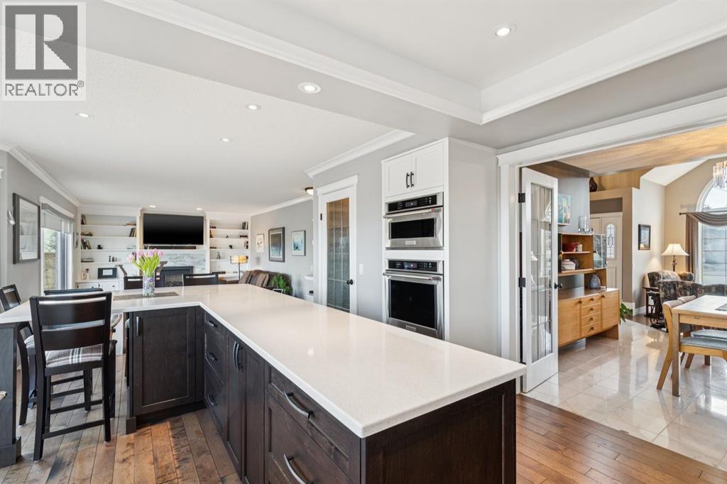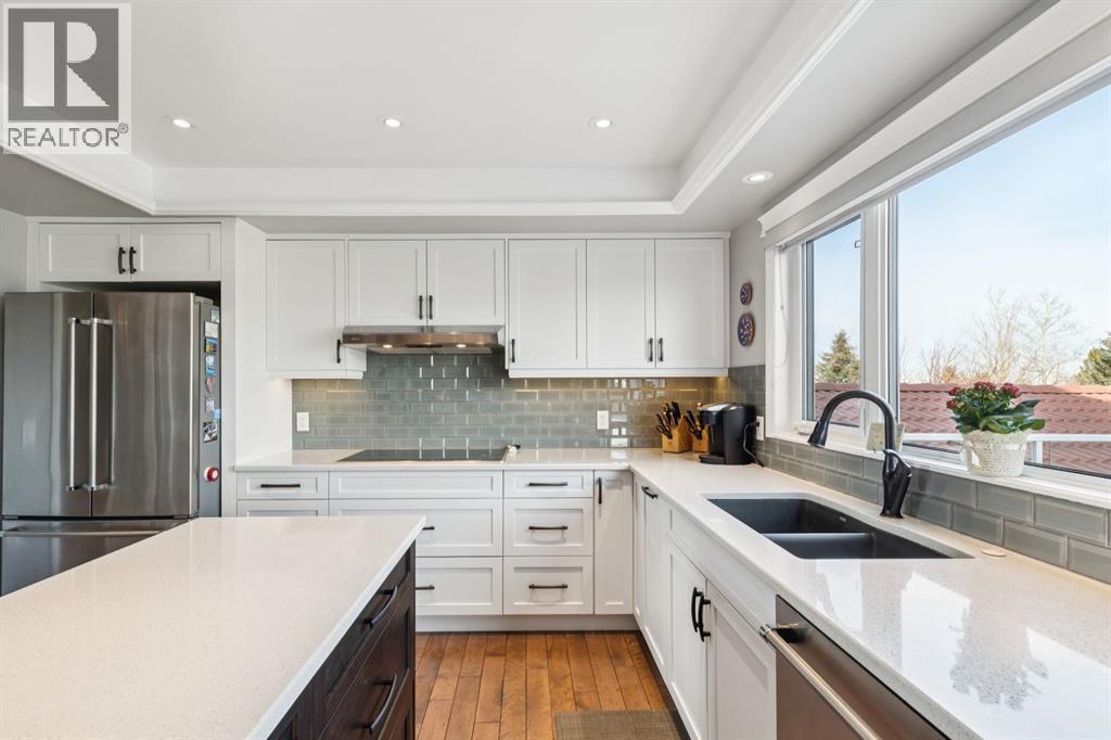 163 Edgebrook Close NW | EdgemontWelcome to one of Edgemont’s most coveted locations, set on a rare corner pie lot backing directly onto green space and just moments from Nose Hill Park. With stunning views, a walkout basement, and over 4,000 sq ft of total developed living space, homes like this seldom come to market.Proudly owned and meticulously maintained by the same owners since 1991, this fully renovated home reflects true pride of ownership throughout and delivers the perfect blend of luxury, functionality, and location.The main level is designed for both elevated entertaining and everyday comfort, featuring two spacious living rooms, one with a cozy fireplace, plus a formal dining room. The renovated chef’s kitchen is the heart of the home, showcasing high-end KitchenAid appliances, including a double wall oven, induction cooktop, premium dishwasher, and a generous pantry. Rich hardwood and tile flooring flow seamlessly throughout, highlighting the quality craftsmanship.A full bathroom and a large main floor office, easily used as a bedroom to add flexibility for guests, extended family, or work-from-home needs.Upstairs, the expansive primary retreat offers gorgeous views, a luxurious 5-piece ensuite, and a large walk-in closet. Three additional bedrooms and a full bathroom complete the upper level, creating an ideal layout for families.The fully developed walkout basement expands your living space even further with a massive rec room and second fireplace, a pool table, a built-in bar, dedicated gym, large laundry room, abundant storage, and an additional bathroom, perfect for entertaining or relaxing.Step outside to a meticulously landscaped yard that transforms into a private garden oasis in the summer, backing directly onto green space for added privacy and tranquility. A standout feature is the 514 sq ft working shed, a true workman’s dream, ideal for hobbyists, trades, or extra storage Complete with a double attached garage, breathtaking views, exceptional upkeep, and an unbeatable location in one of NW Calgary’s most prestigious communities, this is a rare opportunity.Homes in this pocket of Edgemont rarely come available. This one will not last long, book your showing today. (id:51989)