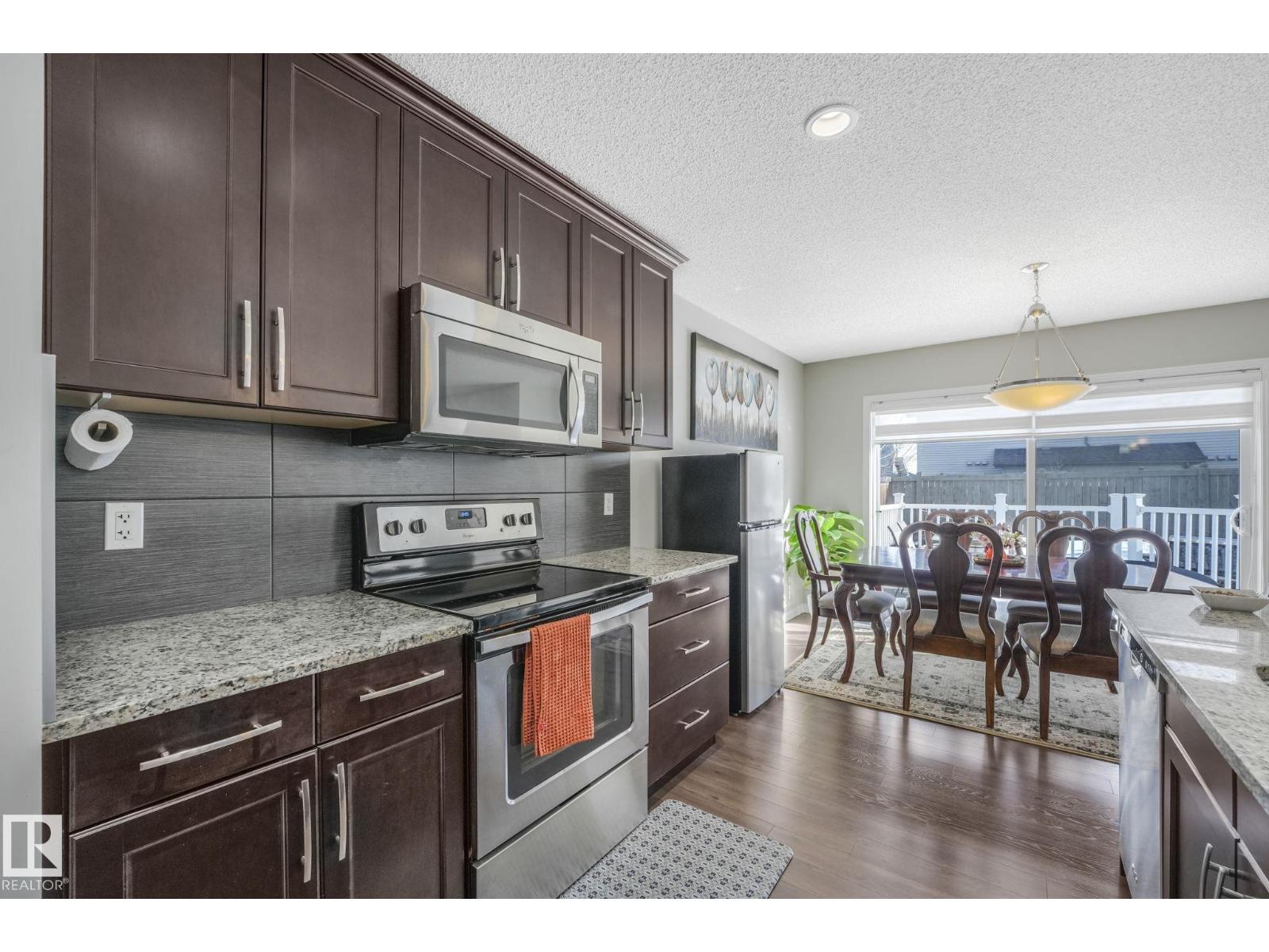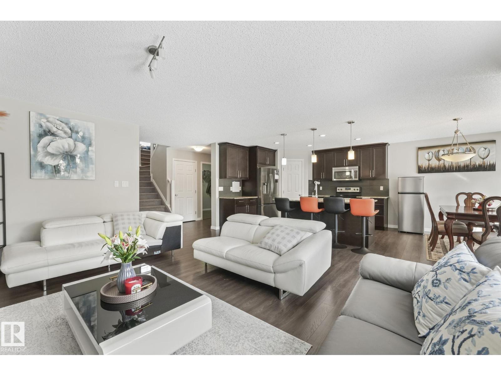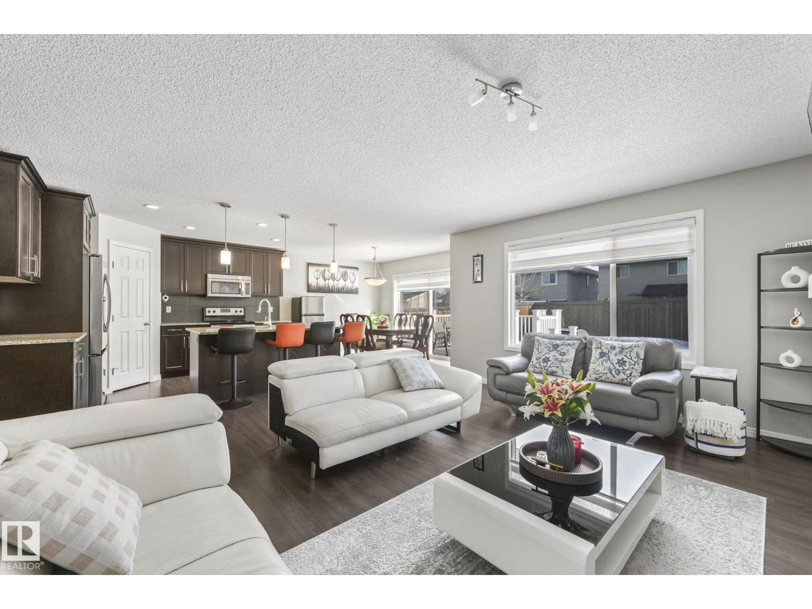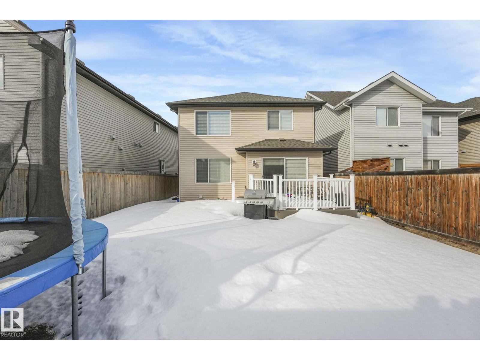 STUNNING FAMILY HOME IN CARLTON! Beautifully maintained by the original owners, this exceptional 2 storey offers a bright open design, A/C, elegant upgrades & large windows that fill the home with light. The main floor features a gorgeous chef’s kitchen, tall espresso cabinetry, quartz countertops, corner pantry, high-end s/s appliances & large eat-up island—perfect for entertaining. The dining area opens to the deck with maintenance-free railings & flows into the inviting living room with a modern fireplace. A 2-pc bath & convenient mudroom complete the main level. Upstairs you’ll find a huge vaulted bonus room with oversized windows, laundry, 3 beds & full bath. The spacious primary suite offers a w/i closet & luxurious 5-pc ensuite with corner soaker tub & separate glass shower. The unfinished basement provides excellent future potential. Outside has great curb appeal, fenced yard & insulated, drywalled d/attached garage. Ideally located near parks, schools & shopping—an incredible place to call home!! (id:51989)