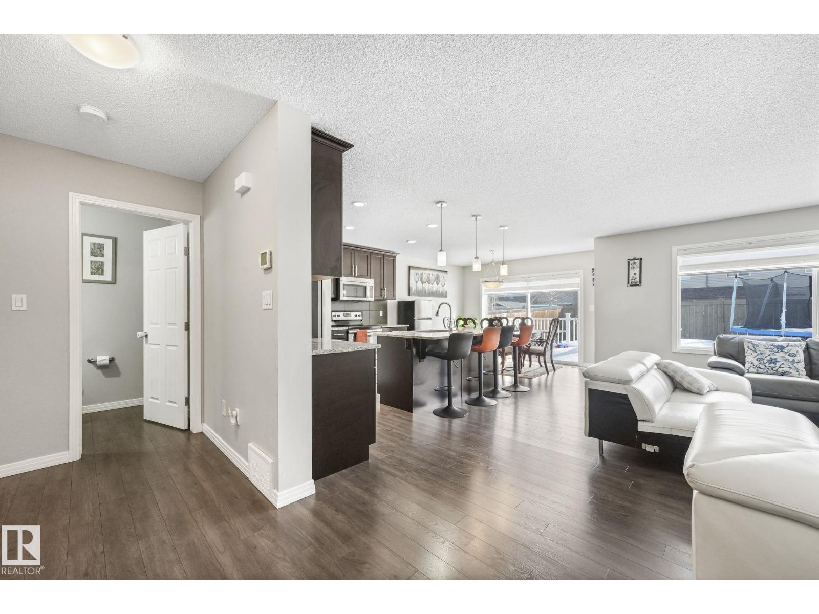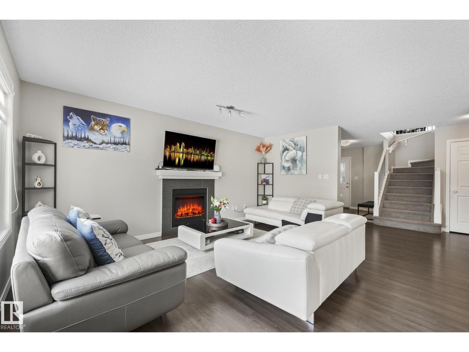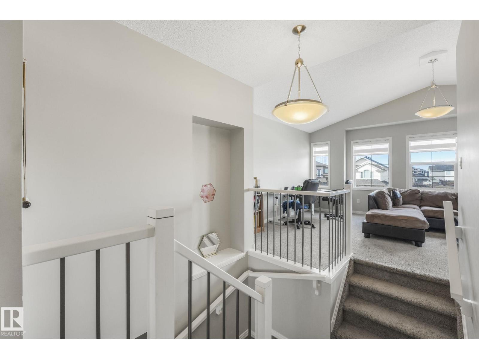 STUNNING FAMILY HOME IN CARLTON! Beautifully maintained by the original owners, this exceptional 2 storey offers a bright open design, A/C, elegant upgrades & large windows that fill the home with light. The main floor features a gorgeous chef’s kitchen, tall espresso cabinetry, quartz countertops, corner pantry, high-end s/s appliances & large eat-up island—perfect for entertaining. The dining area opens to the deck with maintenance-free railings & flows into the inviting living room with a modern fireplace. A 2-pc bath & convenient mudroom complete the main level. Upstairs you’ll find a huge vaulted bonus room with oversized windows, laundry, 3 beds & full bath. The spacious primary suite offers a w/i closet & luxurious 5-pc ensuite with corner soaker tub & separate glass shower. The unfinished basement provides excellent future potential. Outside has great curb appeal, fenced yard & insulated, drywalled d/attached garage. Ideally located near parks, schools & shopping—an incredible place to call home!! (id:51989)