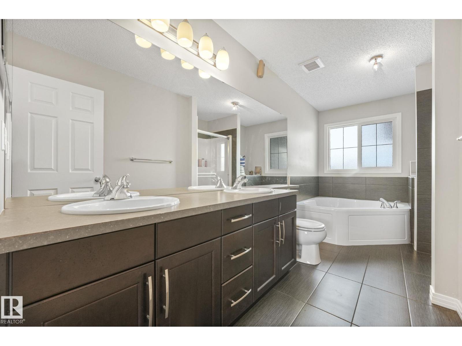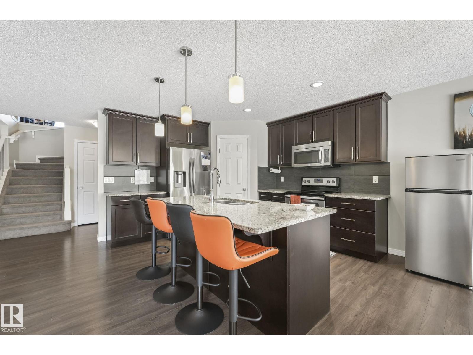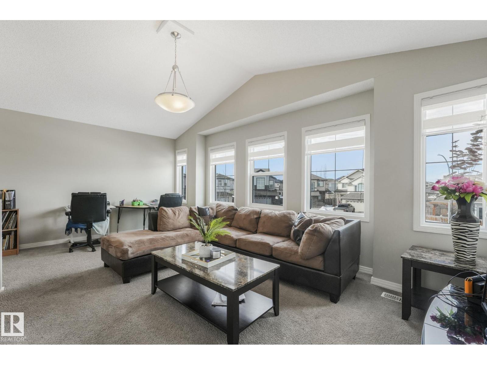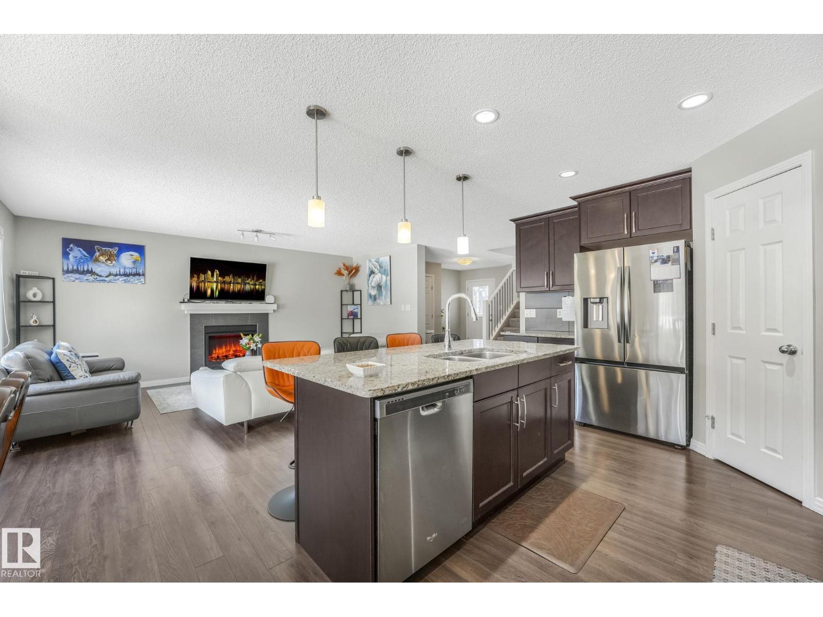 STUNNING FAMILY HOME IN CARLTON! Beautifully maintained by the original owners, this exceptional 2 storey offers a bright open design, A/C, elegant upgrades & large windows that fill the home with light. The main floor features a gorgeous chef’s kitchen, tall espresso cabinetry, quartz countertops, corner pantry, high-end s/s appliances & large eat-up island—perfect for entertaining. The dining area opens to the deck with maintenance-free railings & flows into the inviting living room with a modern fireplace. A 2-pc bath & convenient mudroom complete the main level. Upstairs you’ll find a huge vaulted bonus room with oversized windows, laundry, 3 beds & full bath. The spacious primary suite offers a w/i closet & luxurious 5-pc ensuite with corner soaker tub & separate glass shower. The unfinished basement provides excellent future potential. Outside has great curb appeal, fenced yard & insulated, drywalled d/attached garage. Ideally located near parks, schools & shopping—an incredible place to call home!! (id:51989)