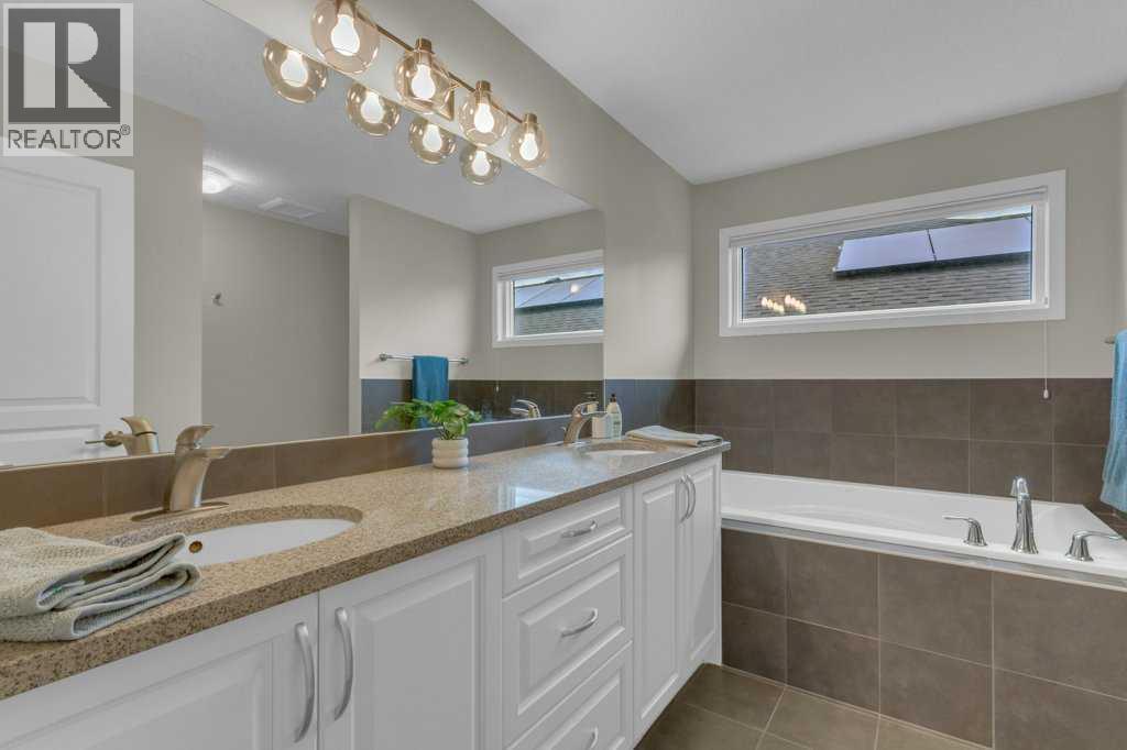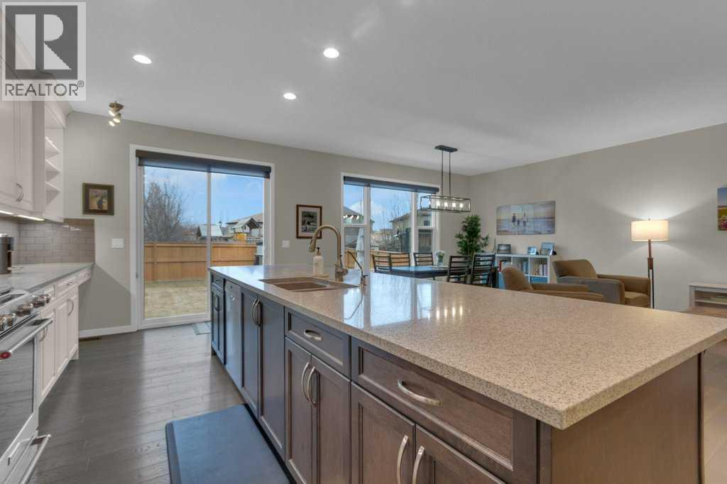 Welcome to The Cedarglen Huxley—offering over 2,000 sq ft of beautifully designed living space, full lake access, and a sunny south-facing backyard.Built by Cedarglen Homes, this property features 9’ ceilings and hardwood flooring throughout the main level. The stunning kitchen is the heart of the home, complete with an impressive 11’ quartz island, extended-height cabinetry, stainless steel appliances, and a convenient walk-through pantry. Kitchenaid dual fuel range (electric oven with natural gas stove top) with a high CFM range hood for a gas range with furnace interlock. The open-concept layout flows seamlessly into the dining area and cozy family room with fireplace, while a mudroom and 2-piece bath complete the main floor.Upstairs, you’ll find a spacious bonus room, laundry, and three bedrooms, including a generous primary retreat with a walk-in closet and spa-inspired ensuite featuring dual sinks, a soaker tub, and a frameless ensuite shower with upgraded bathroom ventilation.The unfinished basement offers excellent potential with a smart, open layout and utilities tucked away—ready for your custom development.This home has been thoughtfully upgraded and meticulously maintained over the years, including the addition of air conditioning and a built-in vacuum (2018), gemstone exterior architectural lighting (2020), and a beautifully finished stone patio with a plumbed gas line for a fire table along with backyard irrigation (2021). Recent improvements include fresh exterior paint (2023), a new Bradford & White hot water tank and professional radon mitigation system (2024), and Llumar UV privacy window film with a 10-year warranty (2024). In 2025, further enhancements were completed, improved attic airflow and insulation topped up to R60, plus garage updates including a new spring (2024) and bottom seal (2025). Additional features include and a front security camera system with local storage and convenient remote access.A perfect blend of style, comf ort, and long-term value in a sought-after lake community—this home is truly move-in ready. (id:51989)