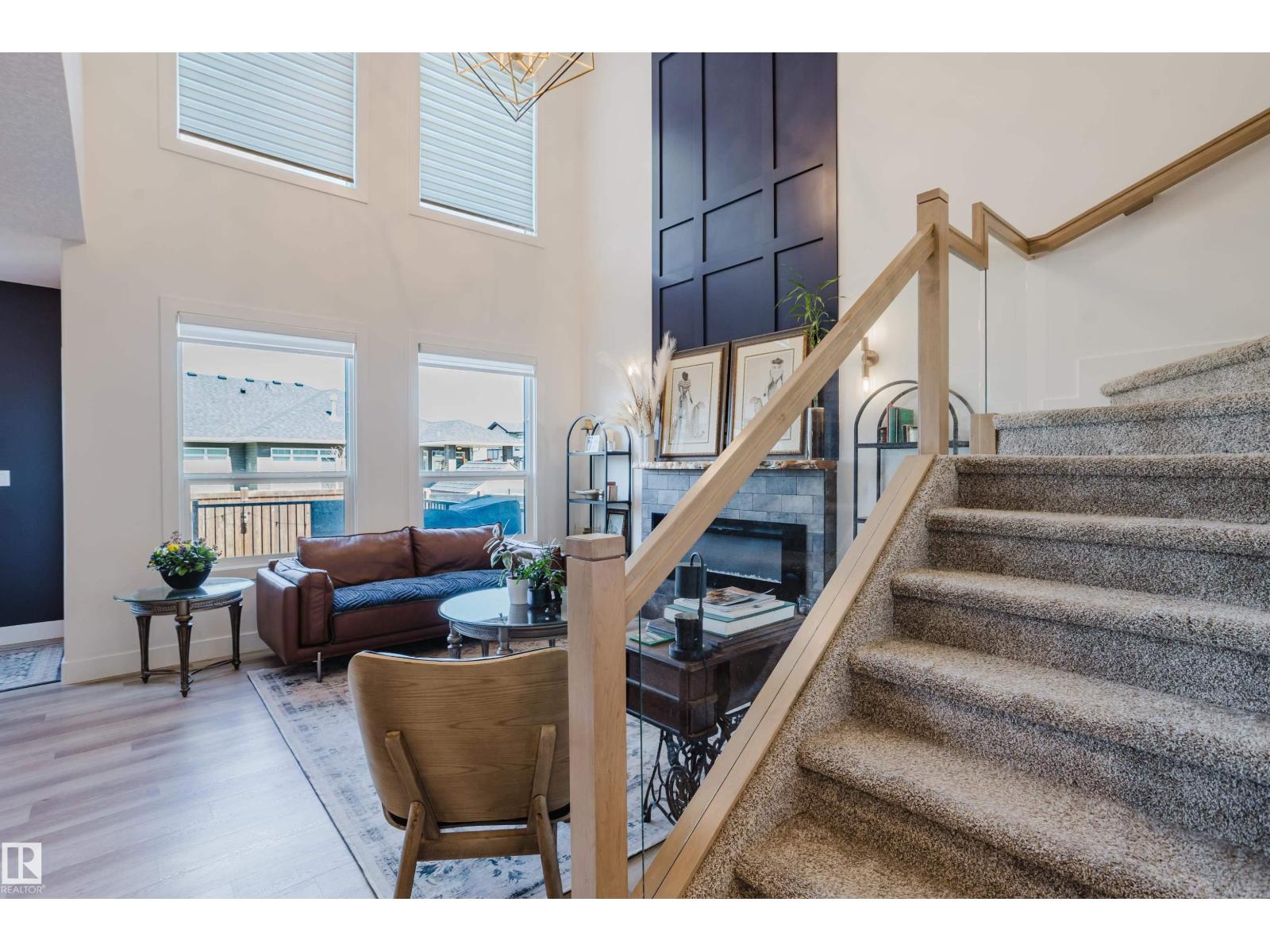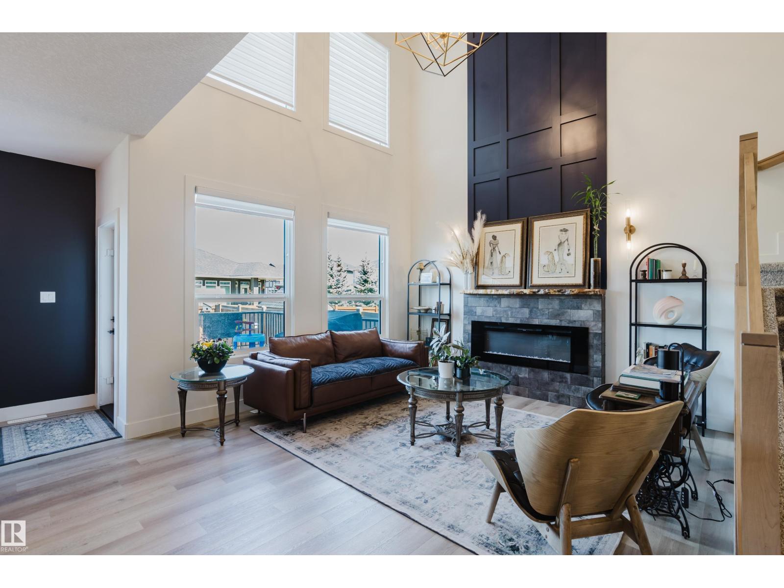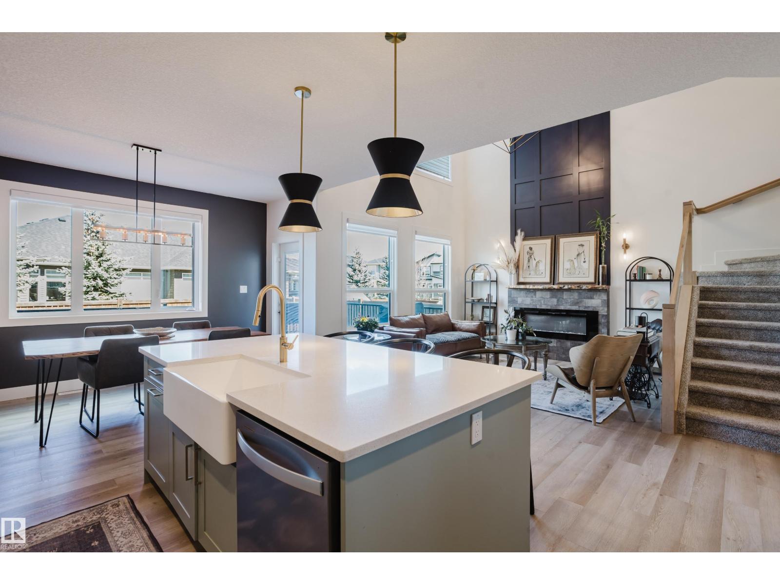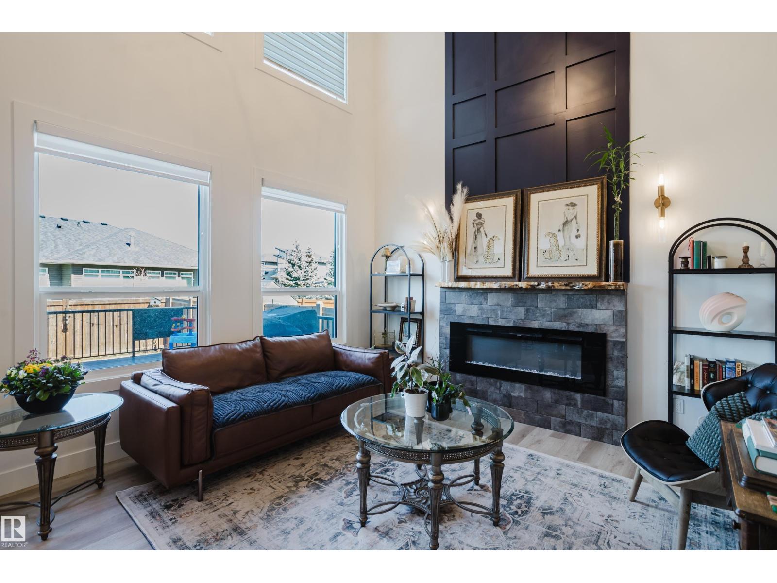 MODERN 2-STOREY with OPEN-TO-ABOVE DESIGN in a FAMILY-FRIENDLY LOCATION Welcome to this stunning home offering over 2,250 SQ. FT. with a bright OPEN-CONCEPT LAYOUT and a show-stopping OPEN-TO-ABOVE GREAT ROOM featuring a FLOOR-TO-CEILING FEATURE WALL with ELECTRIC FIREPLACE. Large windows fill the space with natural light. The main floor features 9’ CEILINGS, a versatile DEN/FLEX SPACE, and a CHEF-INSPIRED KITCHEN with QUARTZ COUNTERTOPS, FULL-HEIGHT CABINETRY, LARGE ISLAND, and a WALK-THROUGH PANTRY to the mudroom. The SEPARATE SIDE ENTRANCE offers added flexibility and FUTURE SUITE POTENTIAL. Upstairs offers a BONUS ROOM WITH TRAY CEILINGS, 3 BEDROOMS, and convenient laundry. The PRIMARY SUITE includes a SPA-STYLE ENSUITE with DUAL SINKS, FREESTANDING SOAKER TUB, and a WALK-IN TILED SHOWER. Enjoy the MASSIVE LOW-MAINTENANCE DECK and stay comfortable with CENTRAL A/C. Located near K-9 SCHOOLS, HIGH SCHOOL, PARKS, and AMENITIES, this home delivers STYLE, SPACE, and FUNCTION. (id:51989)