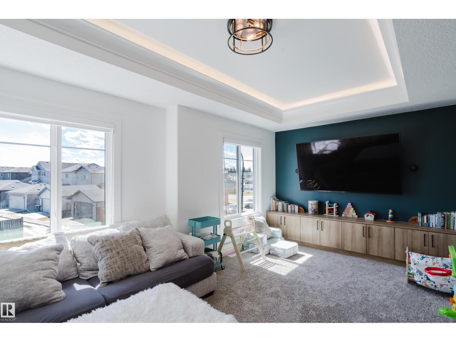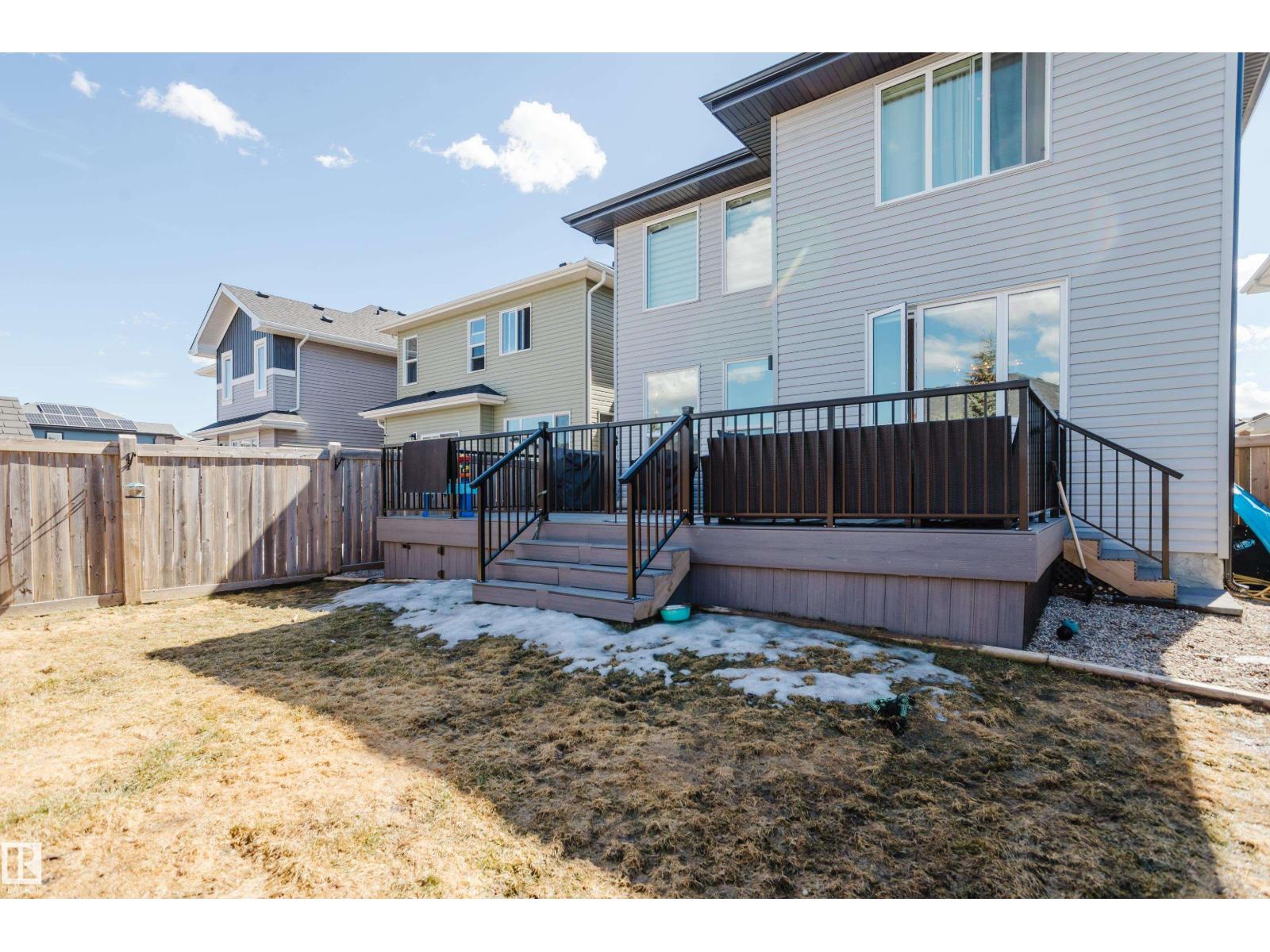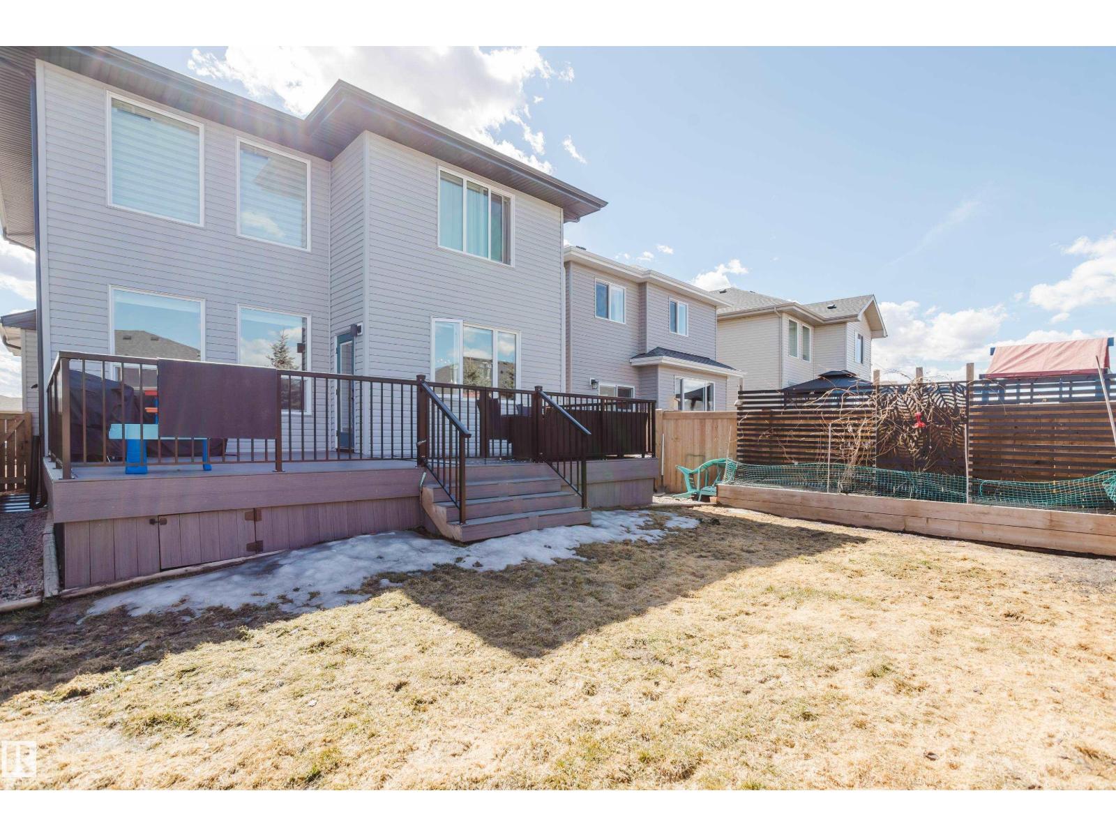 MODERN 2-STOREY with OPEN-TO-ABOVE DESIGN in a FAMILY-FRIENDLY LOCATION Welcome to this stunning home offering over 2,250 SQ. FT. with a bright OPEN-CONCEPT LAYOUT and a show-stopping OPEN-TO-ABOVE GREAT ROOM featuring a FLOOR-TO-CEILING FEATURE WALL with ELECTRIC FIREPLACE. Large windows fill the space with natural light. The main floor features 9’ CEILINGS, a versatile DEN/FLEX SPACE, and a CHEF-INSPIRED KITCHEN with QUARTZ COUNTERTOPS, FULL-HEIGHT CABINETRY, LARGE ISLAND, and a WALK-THROUGH PANTRY to the mudroom. The SEPARATE SIDE ENTRANCE offers added flexibility and FUTURE SUITE POTENTIAL. Upstairs offers a BONUS ROOM WITH TRAY CEILINGS, 3 BEDROOMS, and convenient laundry. The PRIMARY SUITE includes a SPA-STYLE ENSUITE with DUAL SINKS, FREESTANDING SOAKER TUB, and a WALK-IN TILED SHOWER. Enjoy the MASSIVE LOW-MAINTENANCE DECK and stay comfortable with CENTRAL A/C. Located near K-9 SCHOOLS, HIGH SCHOOL, PARKS, and AMENITIES, this home delivers STYLE, SPACE, and FUNCTION. (id:51989)