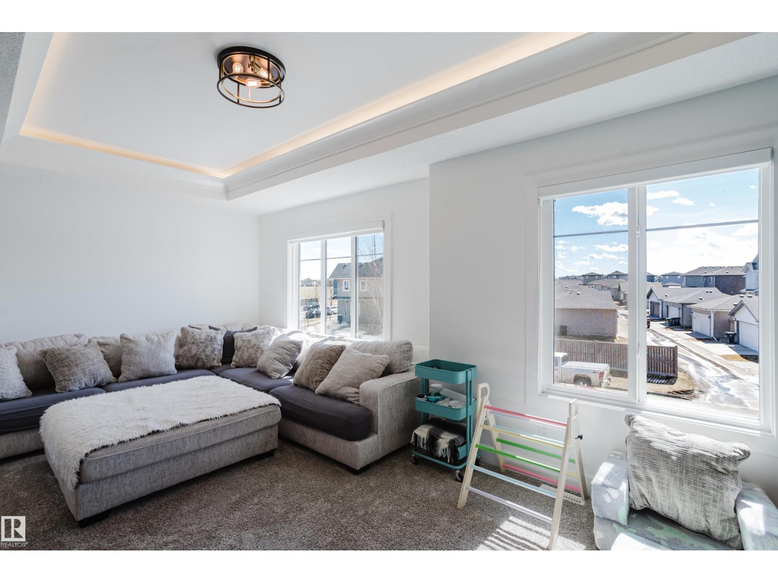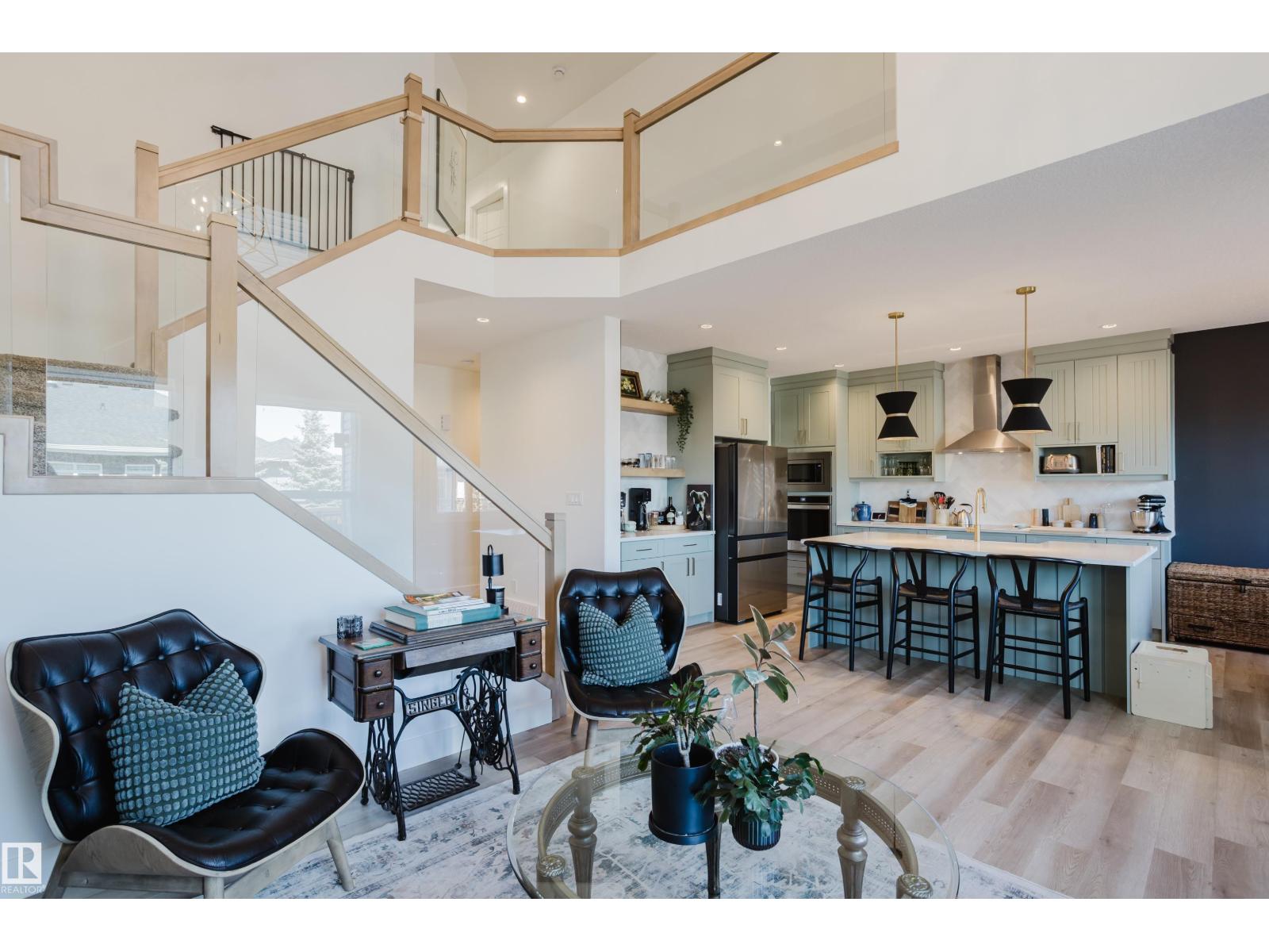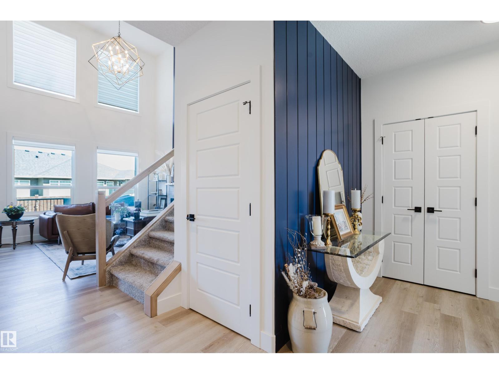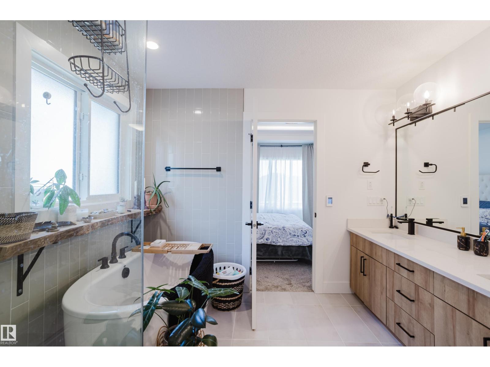 MODERN 2-STOREY with OPEN-TO-ABOVE DESIGN in a FAMILY-FRIENDLY LOCATION Welcome to this stunning home offering over 2,250 SQ. FT. with a bright OPEN-CONCEPT LAYOUT and a show-stopping OPEN-TO-ABOVE GREAT ROOM featuring a FLOOR-TO-CEILING FEATURE WALL with ELECTRIC FIREPLACE. Large windows fill the space with natural light. The main floor features 9’ CEILINGS, a versatile DEN/FLEX SPACE, and a CHEF-INSPIRED KITCHEN with QUARTZ COUNTERTOPS, FULL-HEIGHT CABINETRY, LARGE ISLAND, and a WALK-THROUGH PANTRY to the mudroom. The SEPARATE SIDE ENTRANCE offers added flexibility and FUTURE SUITE POTENTIAL. Upstairs offers a BONUS ROOM WITH TRAY CEILINGS, 3 BEDROOMS, and convenient laundry. The PRIMARY SUITE includes a SPA-STYLE ENSUITE with DUAL SINKS, FREESTANDING SOAKER TUB, and a WALK-IN TILED SHOWER. Enjoy the MASSIVE LOW-MAINTENANCE DECK and stay comfortable with CENTRAL A/C. Located near K-9 SCHOOLS, HIGH SCHOOL, PARKS, and AMENITIES, this home delivers STYLE, SPACE, and FUNCTION. (id:51989)