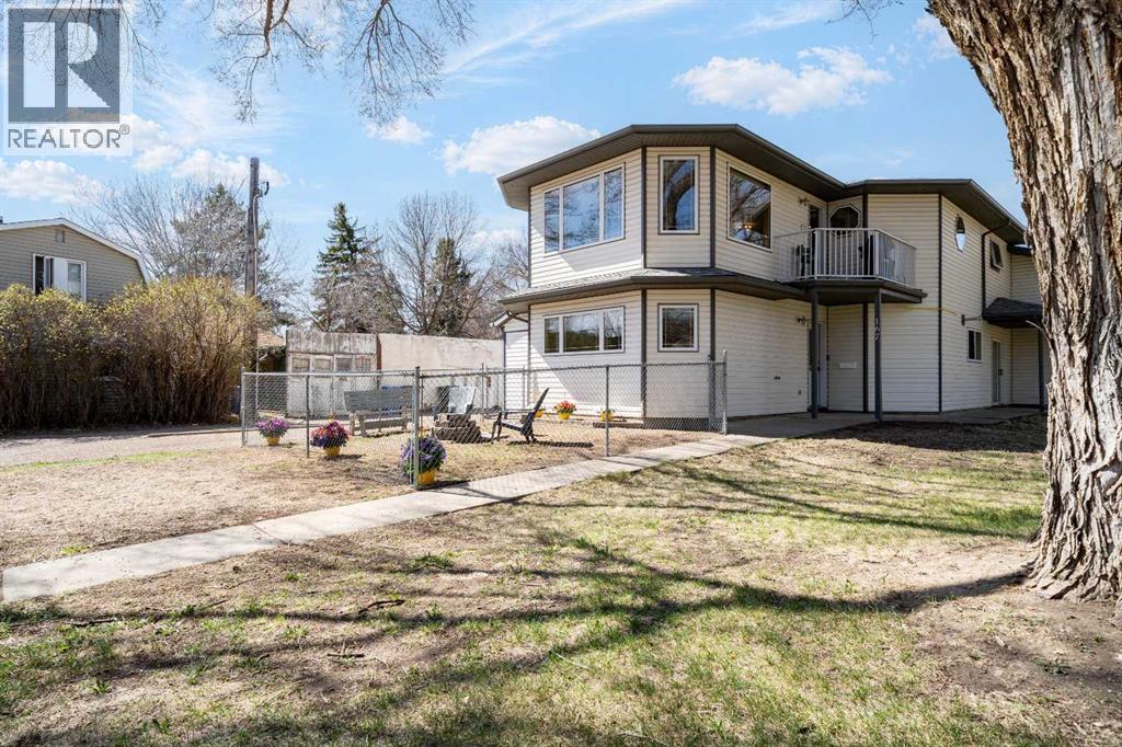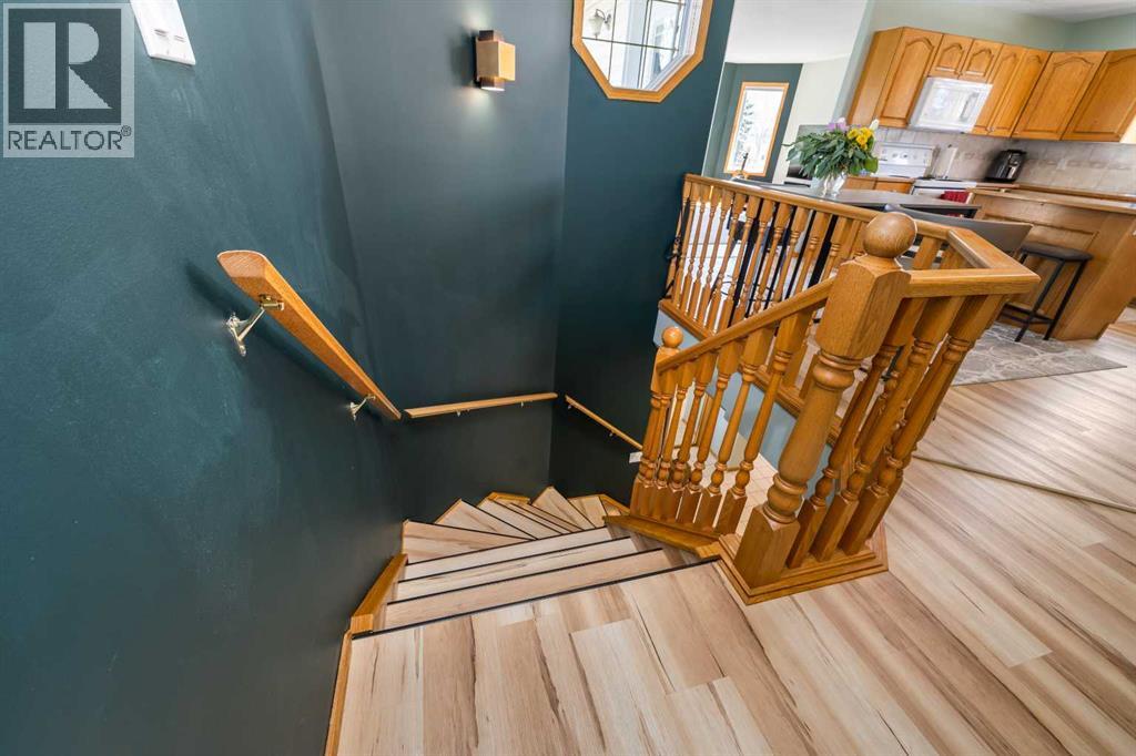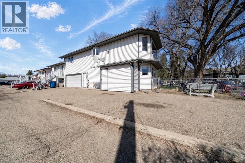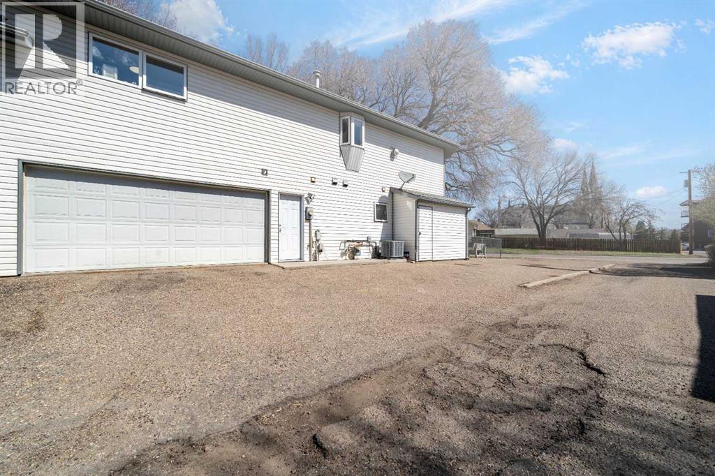 Welcome to your spacious, bright, affordable 3 bedroom home in Beautiful Riverside! Enjoy the convenient location in a park like setting with huge trees that you don't have to maintain as the city takes care of the park right out your front door! Soak up the Amazing abundance of Beautiful natural light that shines in from the skylight and huge windows on 3 sides of your living room! This 3 bedroom, 2 full bath, 2 storey half-duplex is clean, well kept and ready for its new owners to enjoy. Walk in to lower level home to an attached Double insulated heated garage, Large 3rd bedroom with large windows, full 4 pc bathroom, and laundry room. Up the stairs to the main level featuring 2 good sized bedrooms with double closets in both, full 4 piece bathroom, kitchen with island, and living room with all those glorious windows, gas fireplace for the cool winter nights and little patio facing the gorgeous trees and park to enjoy coffee and room for your BBQ, with natural gas hookup! Nice little fenced yard with firepit. Recent updates include: New vinyl plank flooring 3 years ago as well as fresh paint throughout. Singles 2015, A/C unit 2021, hot water tank 2017, garage heater 2024, new tap/faucet in tub/shower last week. Full appliance package included- Fridge, stove, dishwasher, washer/dryer, C/Air, C-Vac, U/G sprinklers. There are no monthly condo or maintenance fees here! Tons of parking for RV or extra vehicles, in the double garage plus super long driveway that can park 4 vehicles plus off street, great for entertaining! Easy access to city trails, river walks, and an easy walk or ride across Finley bridge to downtown! Owner is licensed REALTOR® in province of AB. Move in ready! Average utilities only $280/mo. Check it out today! (id:51989)