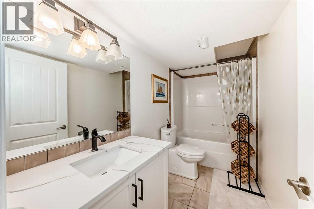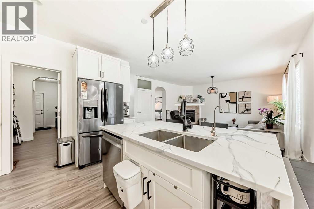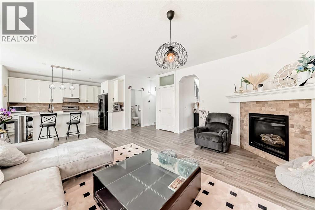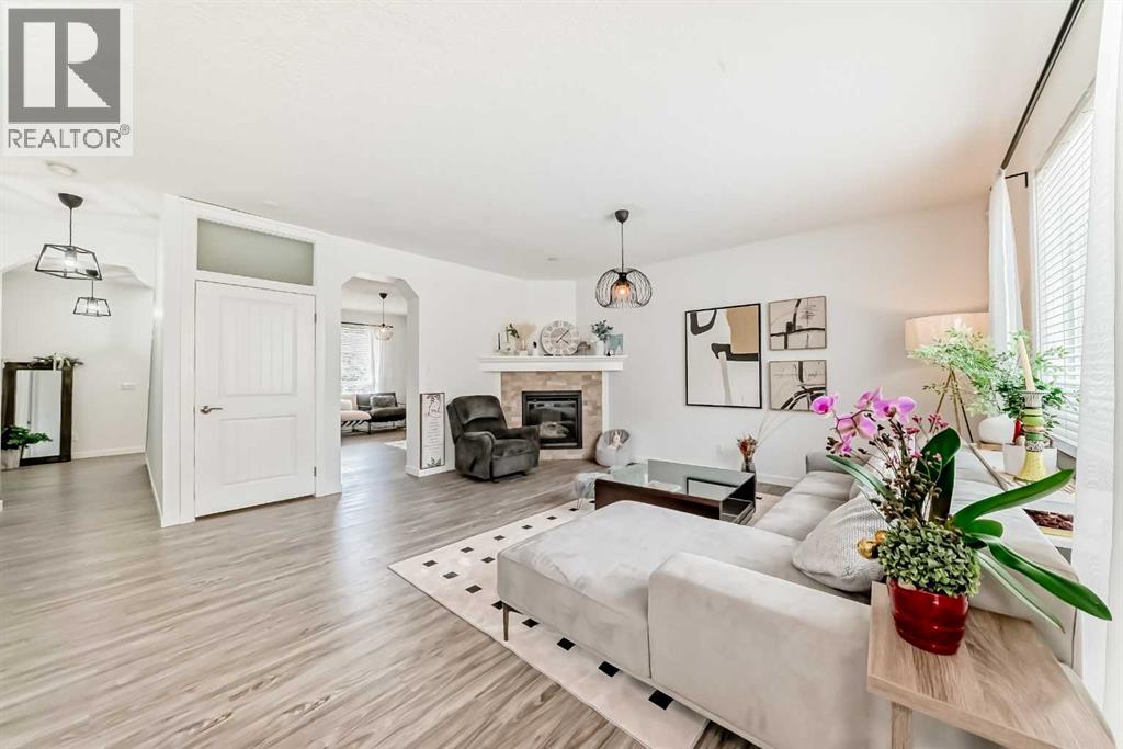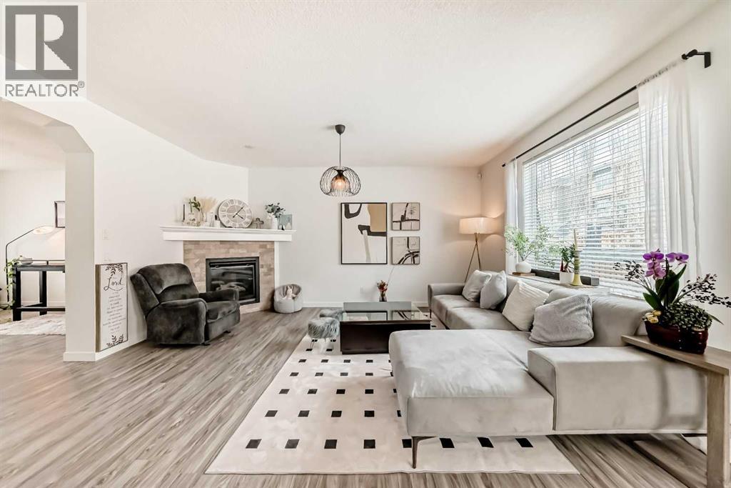 Welcome to this beautifully appointed family home in the highly desirable community of Aspen Woods. Thoughtfully designed, this two-storey residence offers a perfect blend of everyday comfort and stylish upgrades, ideal for modern family living. Situated in one of Calgary’s top school districts, the home also provides convenient access to the C-Train, major roadways, and is just minutes from Aspen Landing Shopping Centre, where you’ll find a variety of shops, dining options, and essential services. Natural light fills the home throughout the day. Enjoy sunny mornings on the south-facing front porch, while large rear windows bring in abundant light to the living spaces and backyard. The main floor features 9-foot ceilings and durable vinyl flooring throughout. The well-designed kitchen is equipped with quartz countertops, stainless steel appliances, a central island with an eating bar, and a generous walk-through pantry with built-in shelving. The dining area opens directly to the backyard, making it perfect for both everyday living and entertaining. The cozy living room is anchored by a corner gas fireplace, while a versatile den/flex room and a 2-piece bathroom complete this level. Upstairs, a bright south-facing bonus room offers additional living space for family use. The primary bedroom includes a walk-in closet and a 4-piece ensuite featuring a soaker tub and separate shower. Two additional bedrooms, a full bathroom, and a convenient upper-floor laundry room provide comfort and functionality for the whole family. The fully finished basement expands the living space with a large recreation room, an additional bedroom, a 4-piece bathroom, and a den—ideal for guests, a home office, or hobbies. Over the past few years, the home has seen numerous upgrades, including new main floor lighting, updated toilets, quartz countertops, range hood, water softener, furnace, air conditioning, and a radon mitigation system. Combining a prime location, thoughtful layout, and valu able updates, this home offers an exceptional opportunity to enjoy comfortable family living in Aspen Woods. (id:51989)