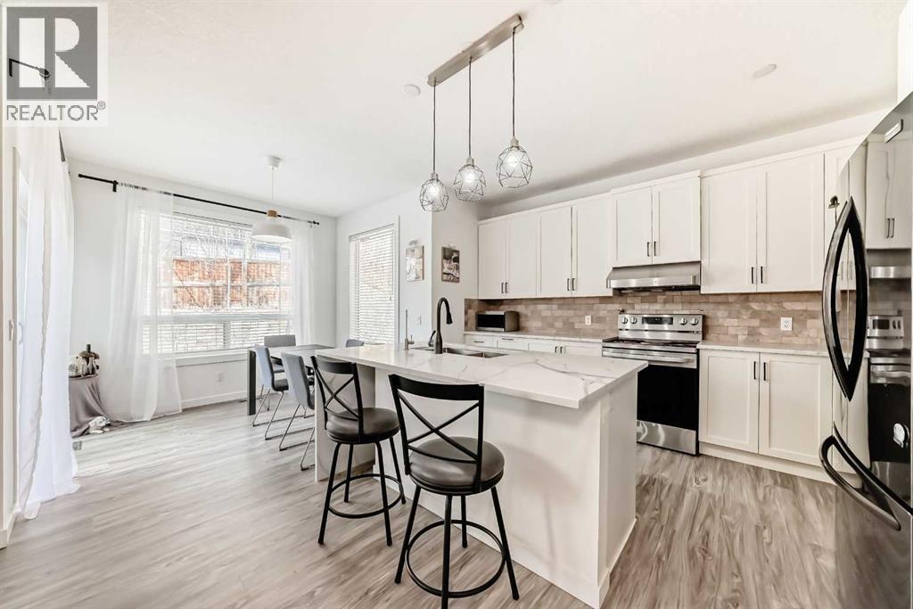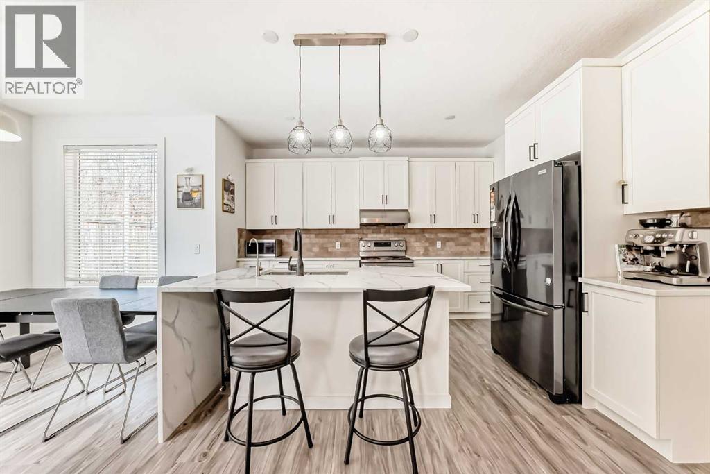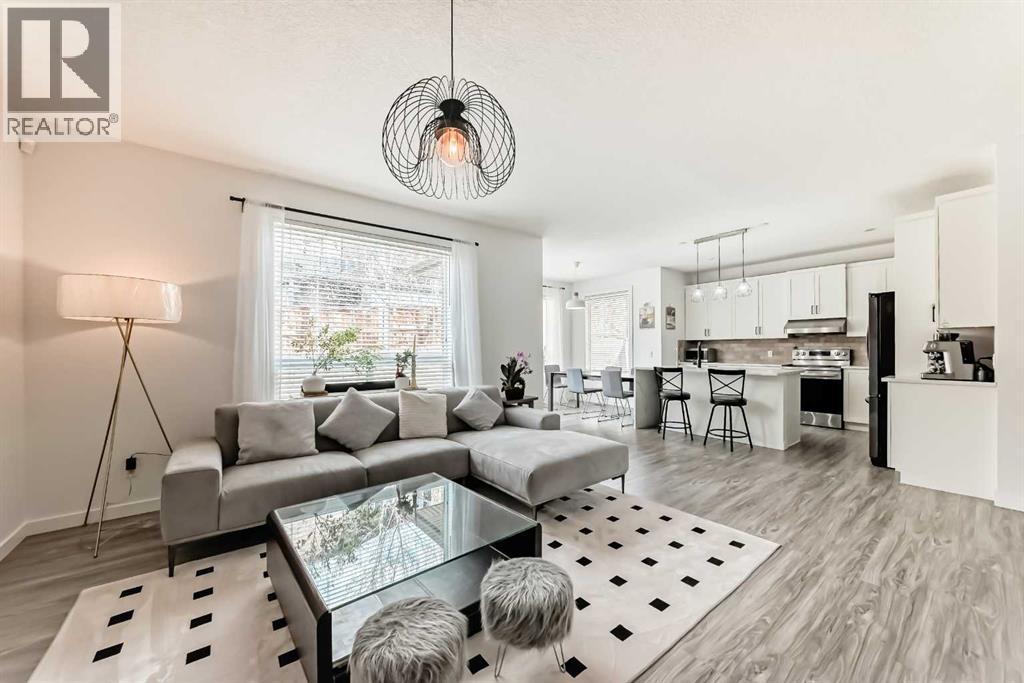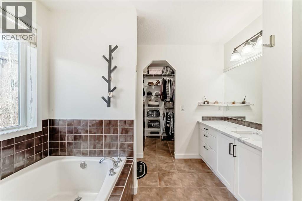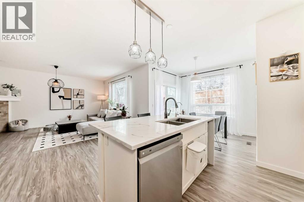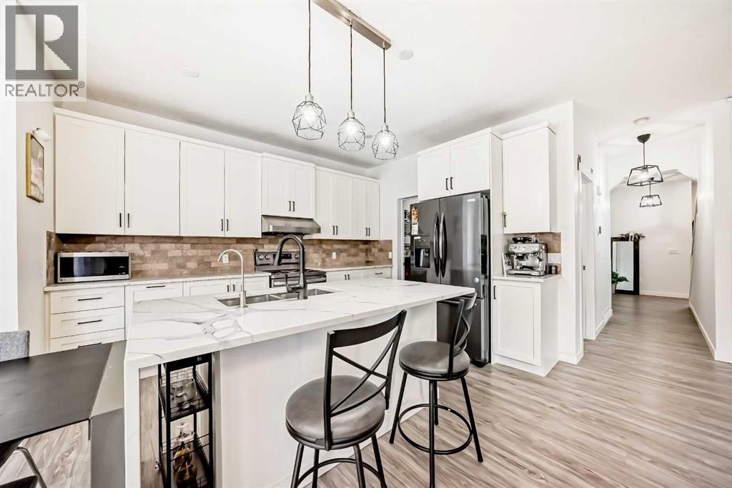 Welcome to this beautifully appointed family home in the highly desirable community of Aspen Woods. Thoughtfully designed, this two-storey residence offers a perfect blend of everyday comfort and stylish upgrades, ideal for modern family living. Situated in one of Calgary’s top school districts, the home also provides convenient access to the C-Train, major roadways, and is just minutes from Aspen Landing Shopping Centre, where you’ll find a variety of shops, dining options, and essential services. Natural light fills the home throughout the day. Enjoy sunny mornings on the south-facing front porch, while large rear windows bring in abundant light to the living spaces and backyard. The main floor features 9-foot ceilings and durable vinyl flooring throughout. The well-designed kitchen is equipped with quartz countertops, stainless steel appliances, a central island with an eating bar, and a generous walk-through pantry with built-in shelving. The dining area opens directly to the backyard, making it perfect for both everyday living and entertaining. The cozy living room is anchored by a corner gas fireplace, while a versatile den/flex room and a 2-piece bathroom complete this level. Upstairs, a bright south-facing bonus room offers additional living space for family use. The primary bedroom includes a walk-in closet and a 4-piece ensuite featuring a soaker tub and separate shower. Two additional bedrooms, a full bathroom, and a convenient upper-floor laundry room provide comfort and functionality for the whole family. The fully finished basement expands the living space with a large recreation room, an additional bedroom, a 4-piece bathroom, and a den—ideal for guests, a home office, or hobbies. Over the past few years, the home has seen numerous upgrades, including new main floor lighting, updated toilets, quartz countertops, range hood, water softener, furnace, air conditioning, and a radon mitigation system. Combining a prime location, thoughtful layout, and valu able updates, this home offers an exceptional opportunity to enjoy comfortable family living in Aspen Woods. (id:51989)