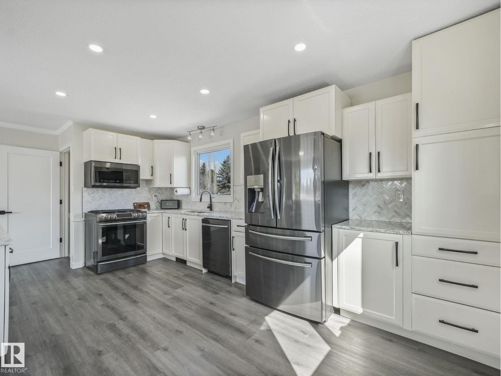 Centrally located in Broxton Park, this sensational, Substantially RENOVATED and UPDATED Bungalow with Double detached garage has 3 bedrooms upstairs ( one with a 2 piece ensuite ), 2 bedrooms downstairs, 2.5 bathrooms, AND a separate entrance into the basement where you have an in law suite with kitchen, 2 beds, a full bath, and wood fireplace! A total of 1948 Sq Ft ( 1087 UP+861 Basement ), you will love how spacious and open the main floor and basement feel thanks to incredible renovations, updated large vinyl windows, new light fixtures, and a light colour palette. Properties like this are incredibly rare as you have an enormous kitchen with updated Stainless Appliances, Granite Countertops, central island, and gorgeous tile backsplash. Other updates include vinyl siding, painted stucco, new doors and windows, updated electrical, furnace and hot water tank, new flooring, tile, tubs, showers, and more! Situated on a nearly 7000 Sq Ft LOT, you'll love the massive yard, patio, and HUGE Driveway! (id:51989)